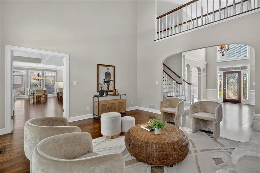 This is the one you've been waiting for in the sought after Polo Golf and Country Club. Located on the 8th fairway, this home offers a view of the golf course, but with added privacy from the trees. You will not find a more meticulously cared for home. Upon entering the home, you will notice a two story foyer with soaring ceilings, just straight ahead is the two story formal living room with elongated windows giving lots of natural light & the large dining room to your right. Located on the left side of the house is the expansive primary bedroom with access to the back deck, two walk in closets & a beautifully updated primary bathroom. On the right side of the home is the family room with vaulted ceilings, open to the breakfast area, an updated kitchen that checks all the boxes, laundry room & three car garage. The kitchen includes a built in sub-zero refrigerator, paneled dishwasher, double ovens, a walk in pantry and so much more. The kitchen pantry and all closets in the home have custom container store shelving. Off of the family room is the freshly painted back deck with stairs down to the backyard that includes a beautiful water feature & patio off the basement. Upstairs includes a loft area, walk-in attic space and 3 additional bedrooms all with their own attached bathrooms. You will not find any carpet in this home - beautifully refinished hardwoods are throughout the entire home, with tiled bathrooms. The cherry on top is the full unfinished basement with walk-out access, a fireplace, and already plumbed for an additional bathroom. If you are looking for move-in ready in West Forsyth County, this is it!