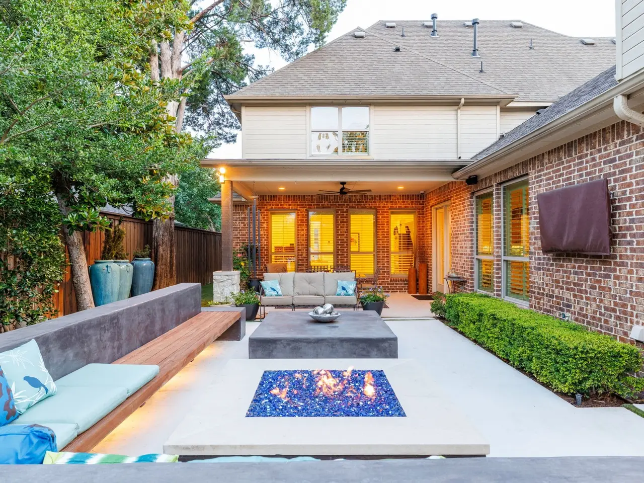 Outdoor entertainment area with fire pit