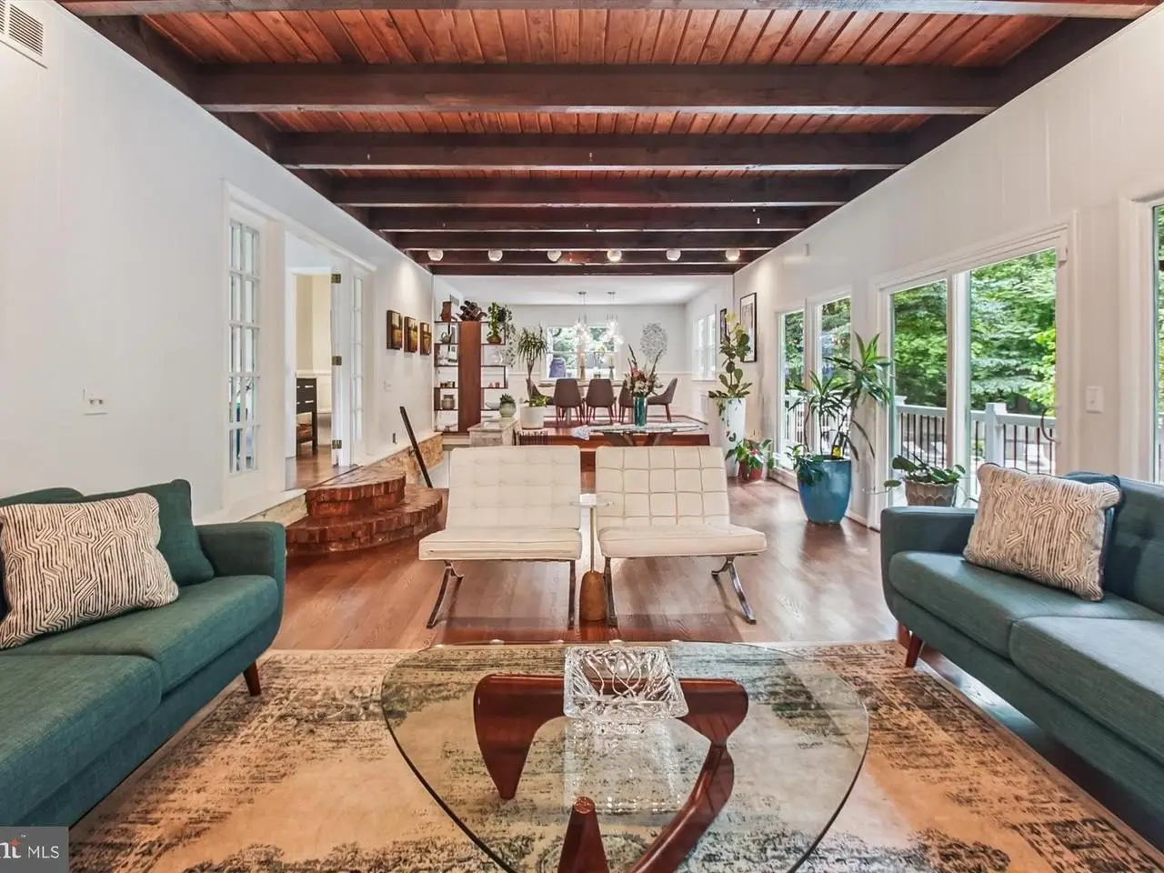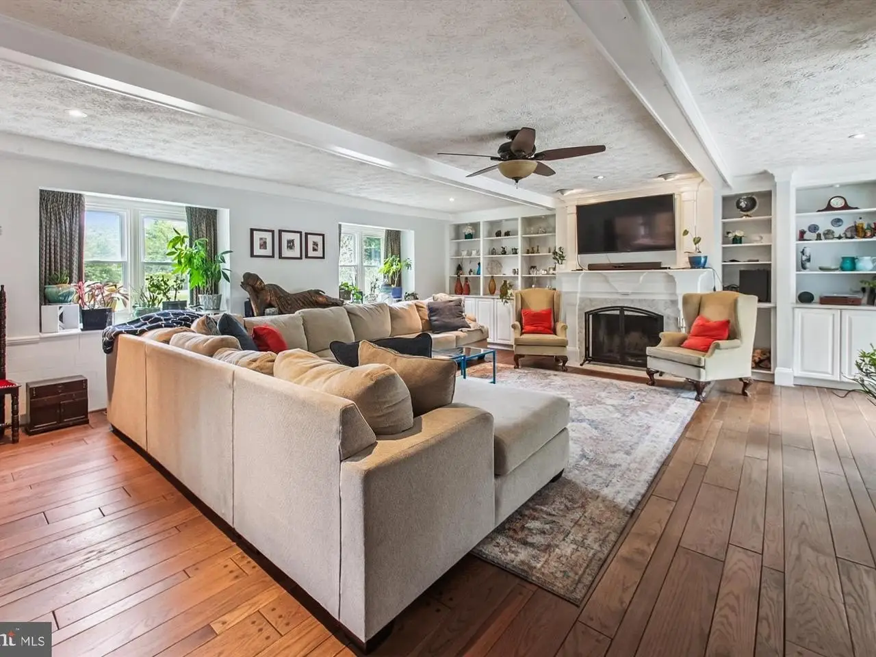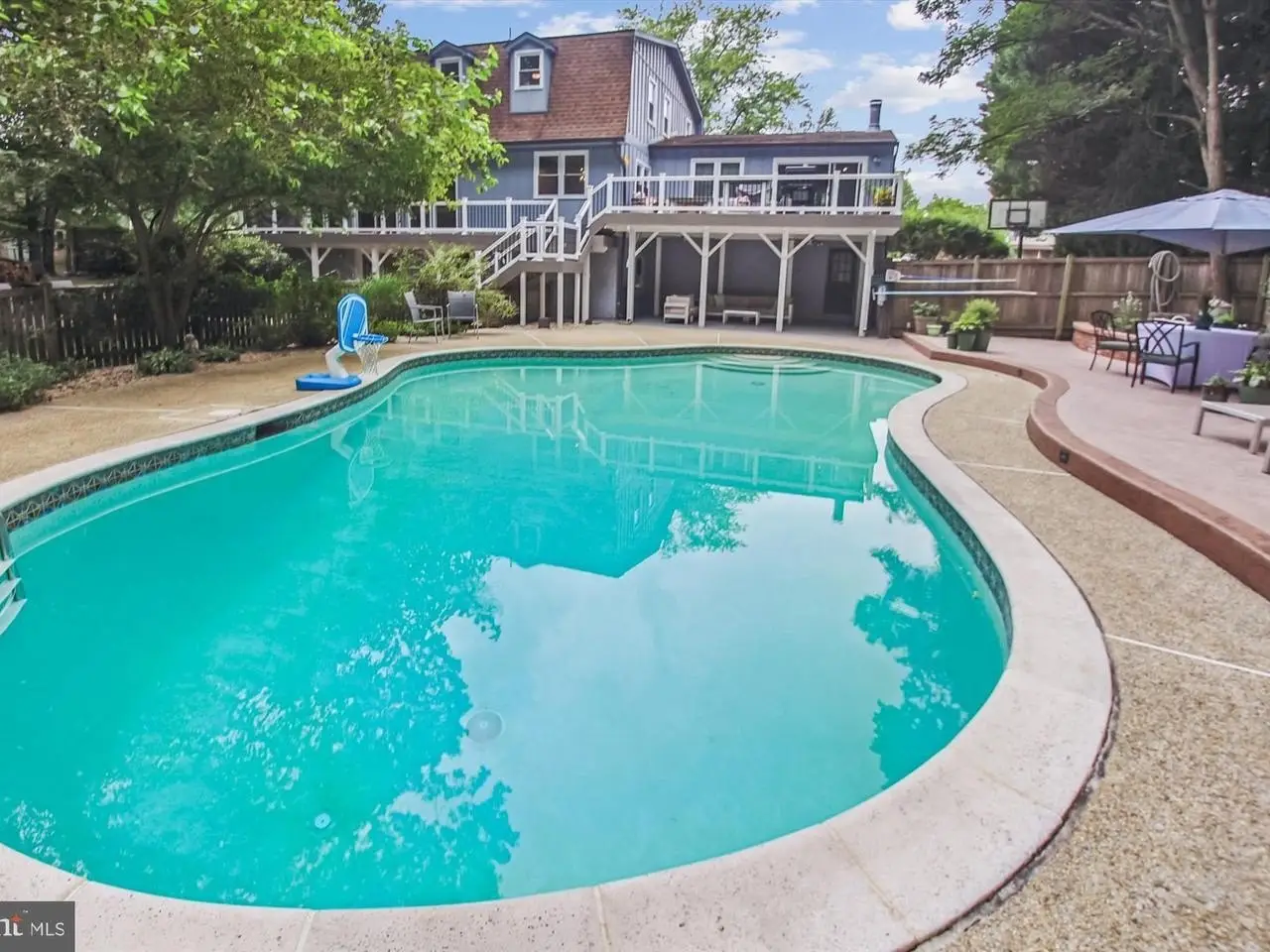 Welcome to your new home. Come check out this exceptional house that features over 5,500SF of living space with 5 large bedrooms, 4 ½ bathrooms, and 3 separate areas with travertine wood burning fireplaces to gather and entertain your friends and family. The main level has hardwood floors throughout, Living Room, Dining Room, newly renovated chef's kitchen with solid surface counters and ceramic backsplash, an eat in area, custom walk in pantry, welcoming family room and separate office that can double as a bedroom. The rear decks are accessible from both the family and living rooms. The walk out basement has plenty of space for entertaining, with a large gathering space, an additional room (currently being used as a guest room with attached full bathroom), a built-in wet bar, and a substantial wine storage area under the stairs. As you head upstairs you will find 2 spacious bedrooms with ensuite bathrooms, 2 additional bedrooms, and a third bathroom. The primary bedroom has a spa-like bathroom with a huge shower area and soaking tub and the spacious walk-in closet is a must see. The laundry room is located on this level for convenience and features upper and lower cabinets, a sink, and marble counters. Once outside, step into multiple outdoor areas. Off the main level family room you will find an inviting entertaining area with ample room for seating and grilling. As you venture down the stairs, you are greeted with a concrete patio space and separate fire pit area. Which then brings you to the large kidney shaped in ground gunite pool surrounded by areas for seating, tables, chairs, and loungers. There is also a large lounge area located under the upper deck. The house has a half circular driveway and garage that can hold up to three cars. This beautiful home is a must see. Pool Closed on 10/3/25.