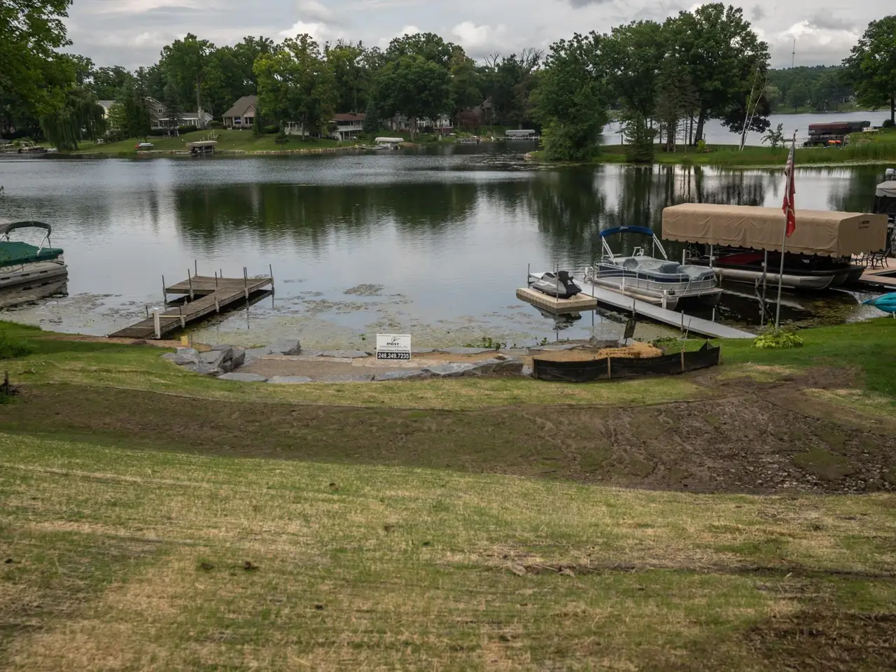 **Stunning Lakefront Lot- Your Dream Oasis Awaits!** New Construction on Dixie Lake, to start upon sale! Discover the ultimate opportunity to build your dream home on this magnificent lot situated on an all-sports Dixie lake, within highly sought Award winning Clarkston School District, one of the only remaining vacant lots on All Sports Lake Front within Clarkston School District. This beautiful piece of land is proudly owned by a reputable builder, Post Construction, LLC, currently boasts over $100k in recent enhancements ensuring a premier waterfront experience. Imagine waking up to serene lake views and enjoying fun-filled days on the water, whether it's boating, fishing, or swimming. The expansive lot features a newly developed beach area complete with a luxurious limestone. Gather around the custom-built fire pit on the beach front, Builder Owned lot has been developed and is ready to build your dream home. This home is to be built, renderings for illustrative purposes only. Contact builder for additional building plans, the Zoldos Cottage is a preliminary rendering proposed by builder for this lot, however extensive high end custom home construction experience, and Builder will work with Buyer to build their own custom dream home. Lower level, 1600 sqft unfinished basement is not detailed in renderings, but is included in sale of New Construction, with walk-out to lake. The lower level, and upper deck overlooking the lake with beautiful custom outdoor fireplace, are the ideal spot for cozy evenings under the stars with family, friends and wonderful space to entertain. This is more than just a place to build; it's a lifestyle waiting for you to embrace! With ample space to design a stunning home tailored to your vision, this property also offers convenient access to local amenities for dining, shopping, and entertainment.