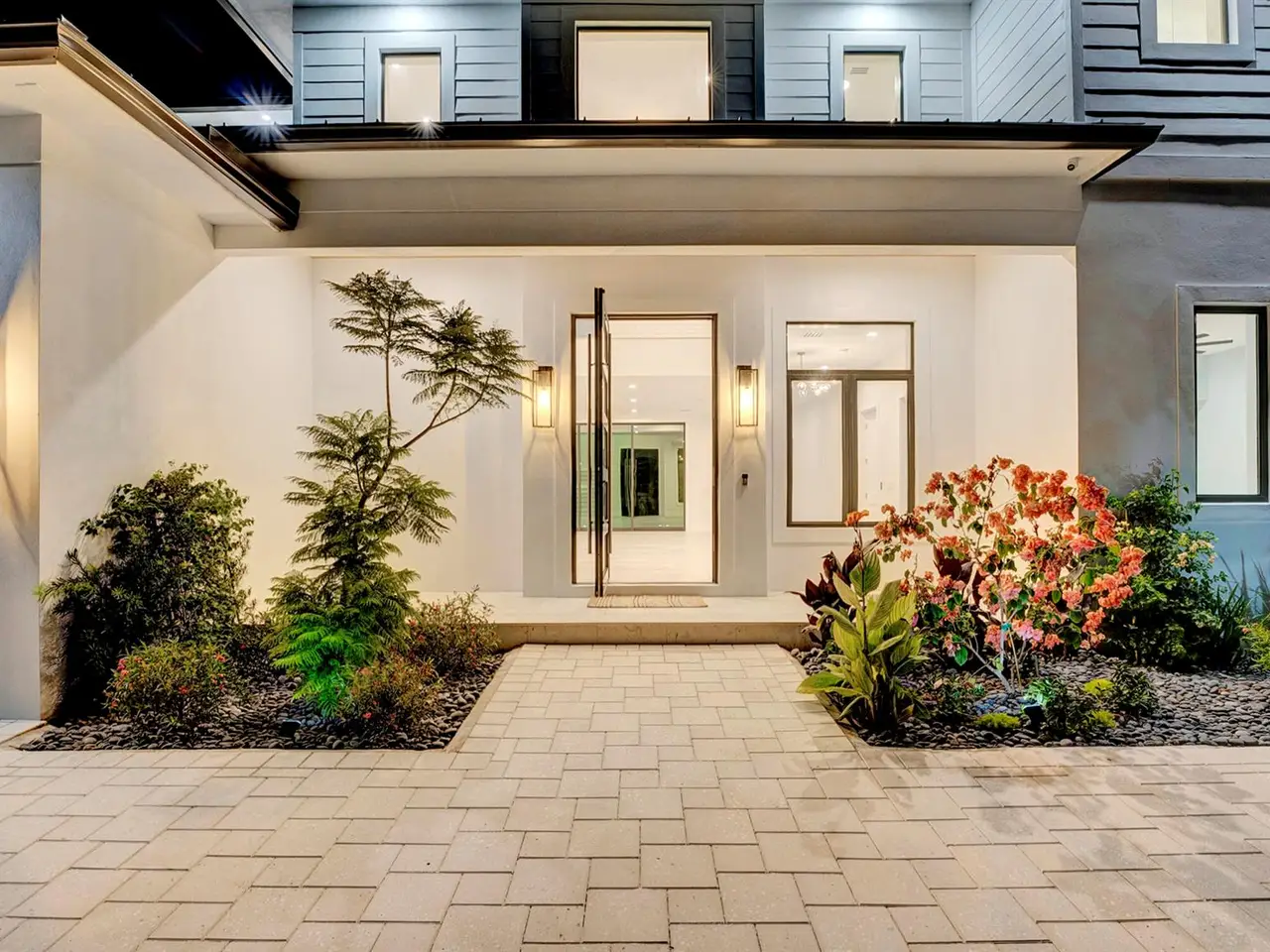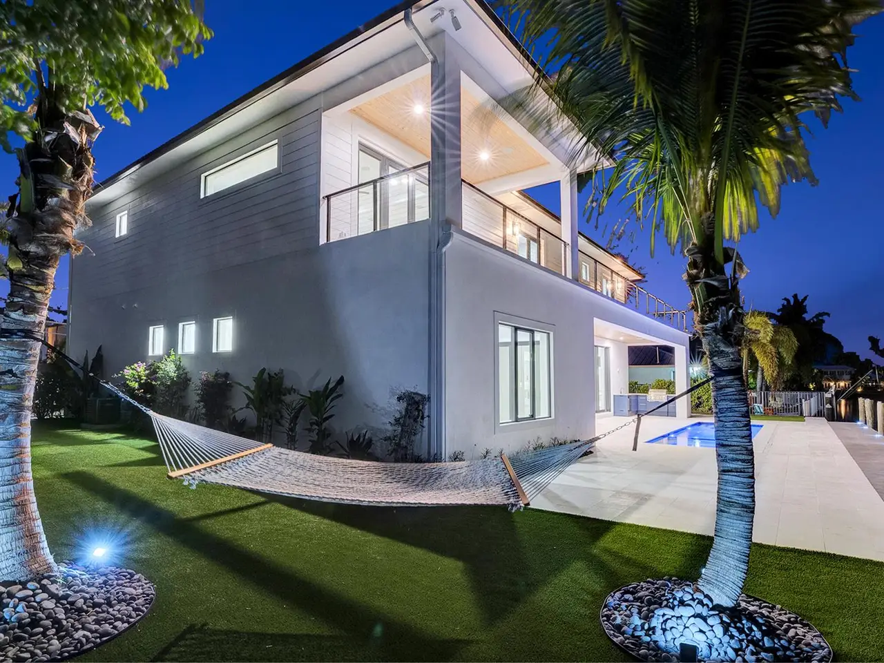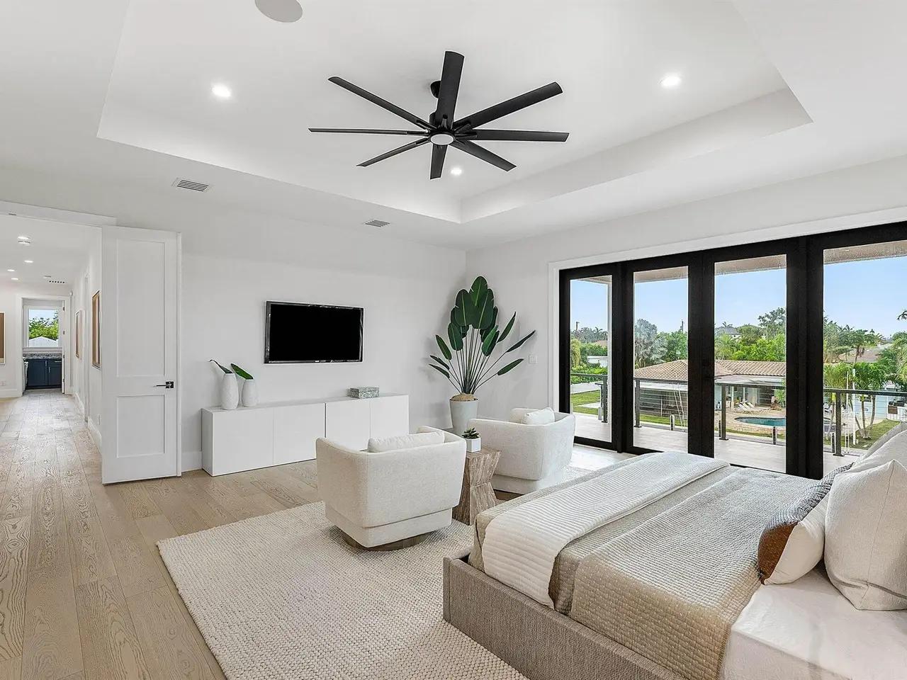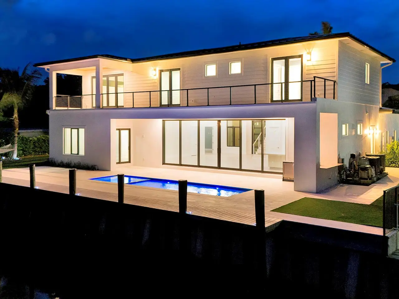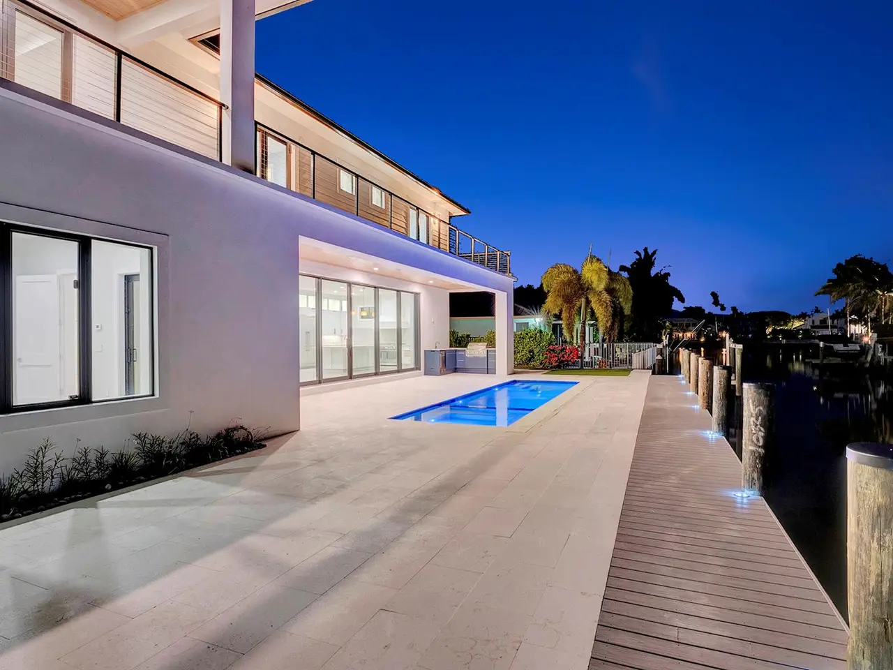 Welcome to 101 feet of direct waterfront on a private road in unincorporated Delray Beach's coveted 33483. This brand new residence offers a new seawall and dock, 5 bedrooms, 7 bathrooms and 5644 total sqft (4621 under air) with thoughtful spaces for work, play, and relaxation.Beautifully designed kitchen featuring a full Thermador appliance suite--6-burner dual fuel range with griddle, double oven, and sleek finishes flowing effortlessly into the expansive living and entertaining space where natural light pours in from every angle.Giant pocket sliders disappear like a curtain of glass blending indoor comfort with outdoor living. Step onto the covered loggia with a full summer kitchen, built-in grill, bar seating, cabana bath and outdoor shower--perfect for entertaining.
