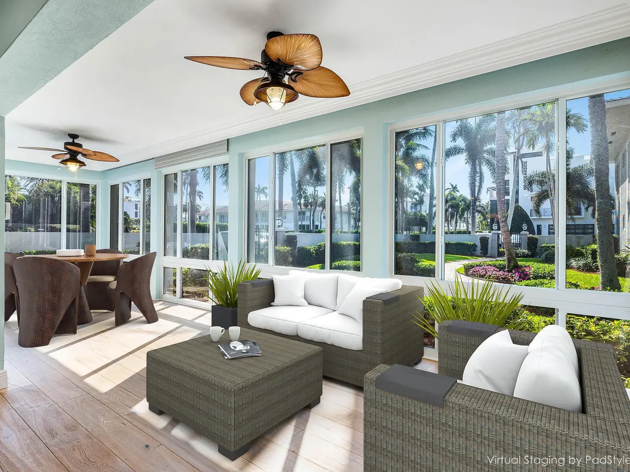 Welcome to the epitome of modern coastal living. Nestled in Delray's coveted beach area only 2 blocks from famous Atlantic Ave & its trendy shops and restaurants & steps to the award winning beach is the meticulously manicured boutique condominium of Lyndon Arms. Step inside this beauty featuring a stunning custom kitchen with stylish breakfast island, wine cooler, gas range & gorgeous quartzite counters providing the perfect blend of traditional coastal charm with modern sophistication. The open concept layout is highlighted by lovely white oak wood flooring and an expansive glassed-in sunroom