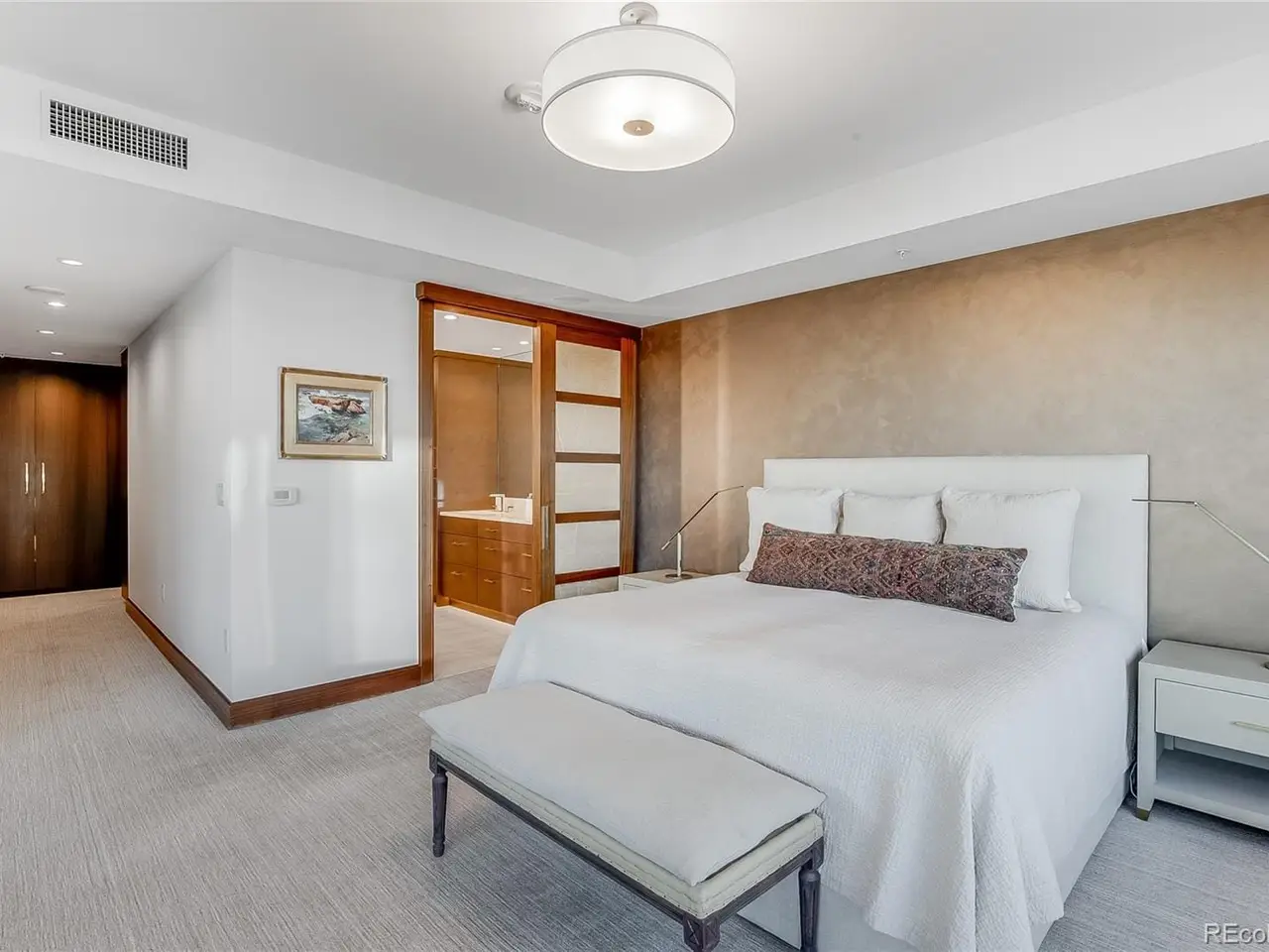 Elevated luxury awaits in this sophisticated, updated residence on the 33rd floor of the iconic Four Seasons Private Residences in the heart of downtown Denver. Occupying a full quarter of the floor, this expansive condo blends modern elegance with breathtaking views of the city skyline. Inside, sleek lines and exquisite finishes define the open-concept living space, offering seamless flow and endless possibilities for personalization. The gourmet kitchen is a showstopper, featuring high-end appliances, custom cabinetry, wine refrigerator, and a spacious walk-through pantry that also houses full-sized laundry and generous storage. Designed for both comfort and entertaining, the home includes an integrated entertainment system and a private balcony outfitted with heaters, perfect for enjoying the cityscape in any season. The serene primary suite offers spectacular views, a luxurious en-suite bath with double vanity and built-in cabinetry, and thoughtful privacy from the rest of the home. Two additional en-suite bedrooms are ideally separated for guests or office space. Enjoy the ease of two deeded parking spaces in a secure garage and indulge in world-class Four Seasons amenities, including 24-hour concierge, room service menu, valet, access to the pool, fitness center and spa and so much more. This is city living at its most refined - welcome to a life of everyday luxury.