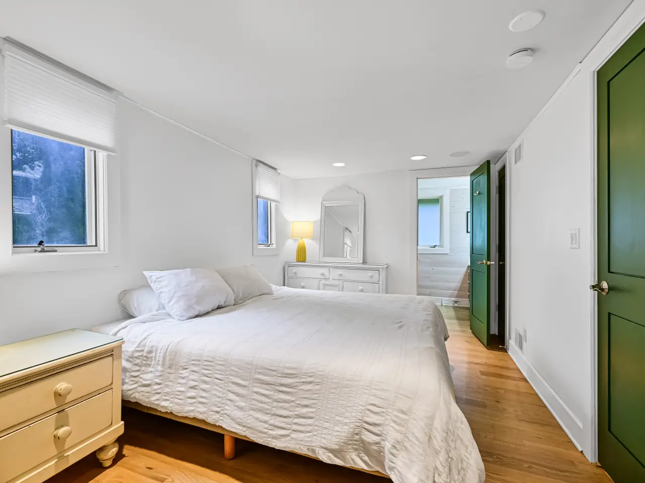 Imagine beginning your day with the breathtaking views of Eagle Lake, presenting a remarkable lakeside living experience. You can enjoy the final days of summer on your 87-foot flat lot, which offers stunning water views from a spacious, modern deck and a newly constructed pier with an expanded platform. Inside, you will find an inviting layout with a kitchen that features a large island, granite countertops, a tiled backsplash, stainless steel appliances, and attractive hardwood flooring. Enjoy the abundance of natural light from the numerous windows and new patio doors that showcase the beautiful lake perspectives from every angle. Two primary bedroom suites, situated on different levels, provide a wonderful sense of privacy for residents. The upstairs suite boasts a private balcony, a gas fireplace, and vaulted ceilings that enhance your appreciation of the peaceful lake views.