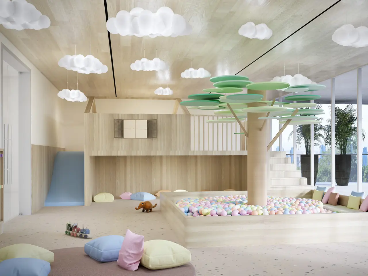 - Children's play area and dedicated pet zones