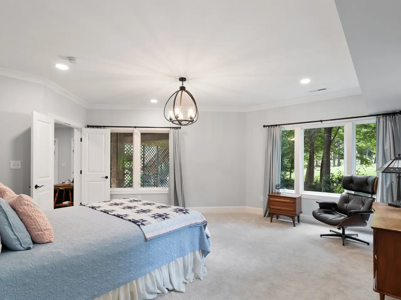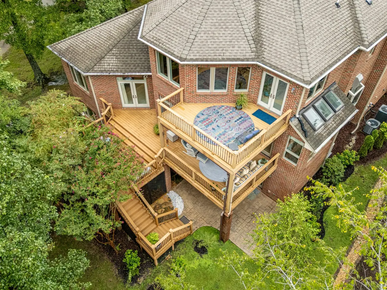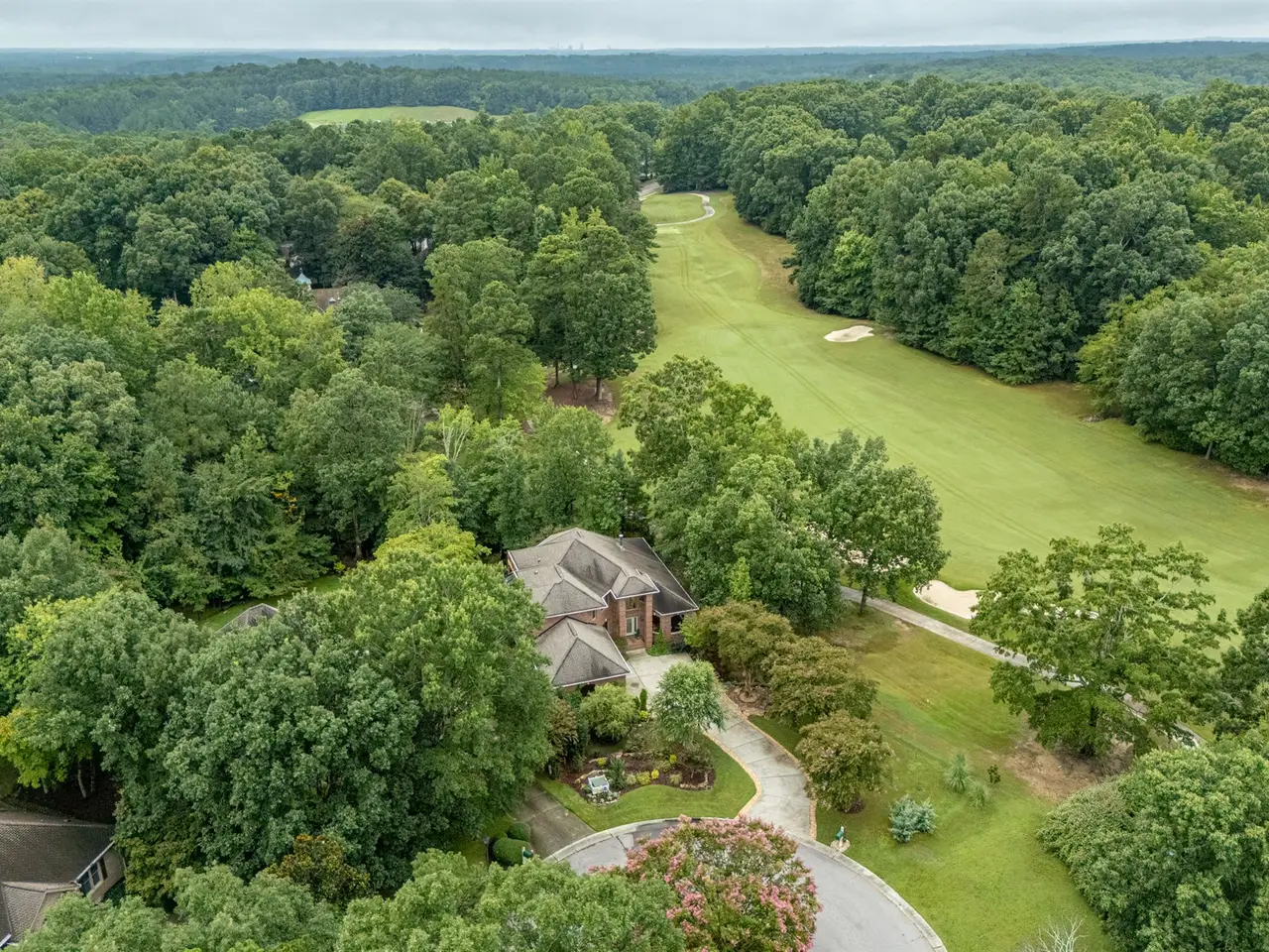 Nestled on a quiet cul-de-sac overlooking the Tom Fazio-designed course at Treyburn Country Club, 3426 Fairway Lane offers three levels of exceptional living bathed in natural light. Hardwood floors grace the main level, where a gourmet kitchen with high-end appliances flows seamlessly into the two-story great room anchored by a stunning stone fireplace perfect for entertaining. The generous main-floor primary suite features a spa-like bath for ultimate relaxation. A finished basement adds flexible living space with a guest bedroom, full bath, and plumbing in place for a wet bar, plus tremendous storage and workshop space with potential for a second kitchen, art studio, or nanny suite. Expansive decks on two levels totaling 676 sq. ft. offer sweeping golf course views and a natural gas connection for outdoor cooking. Surrounded by 10 acres of open space, this superbly maintained all-brick home sits on a .44-acre lot and combines craftsmanship, comfort, and an unbeatable setting in one of Durham's premier communities.