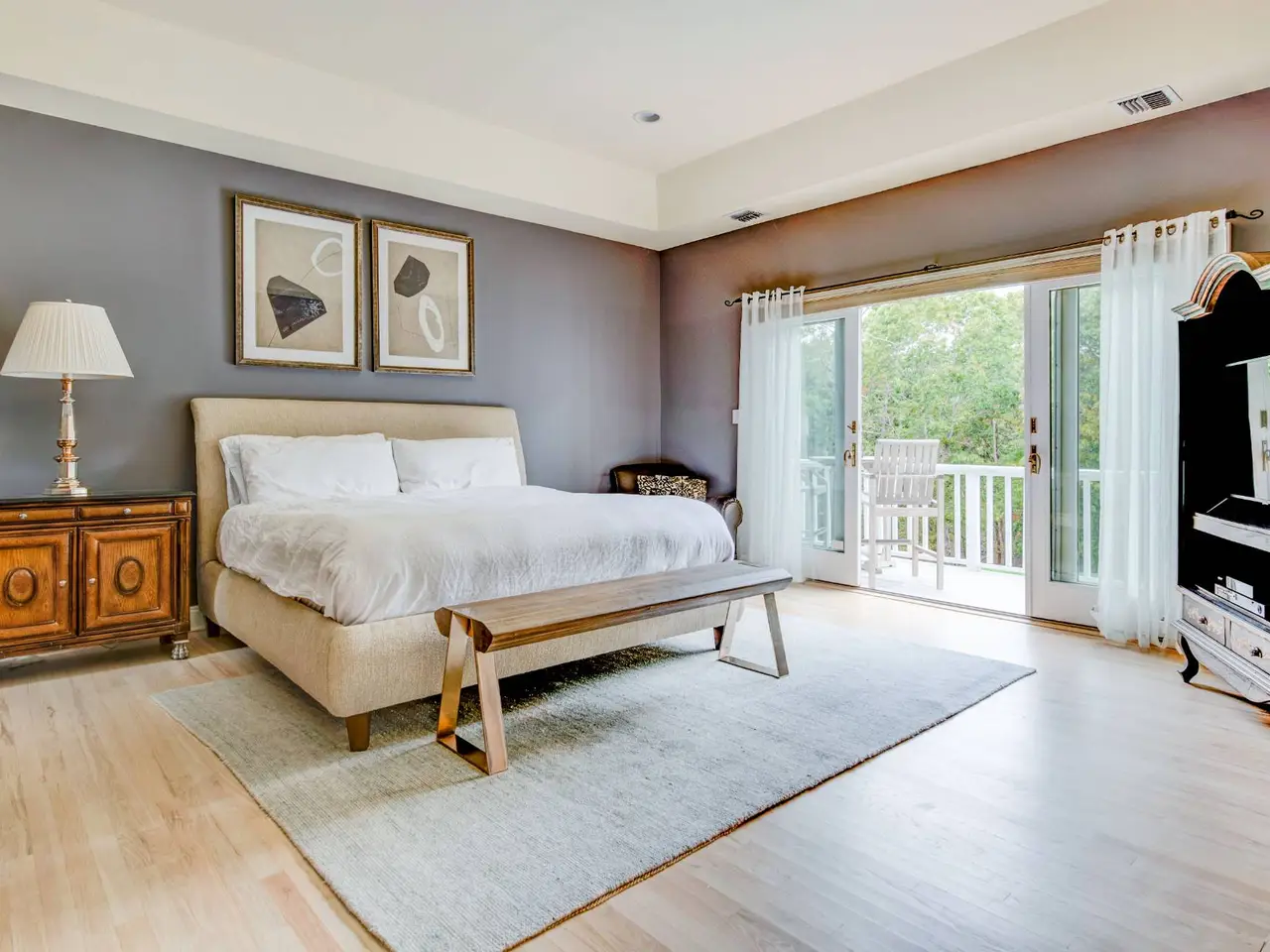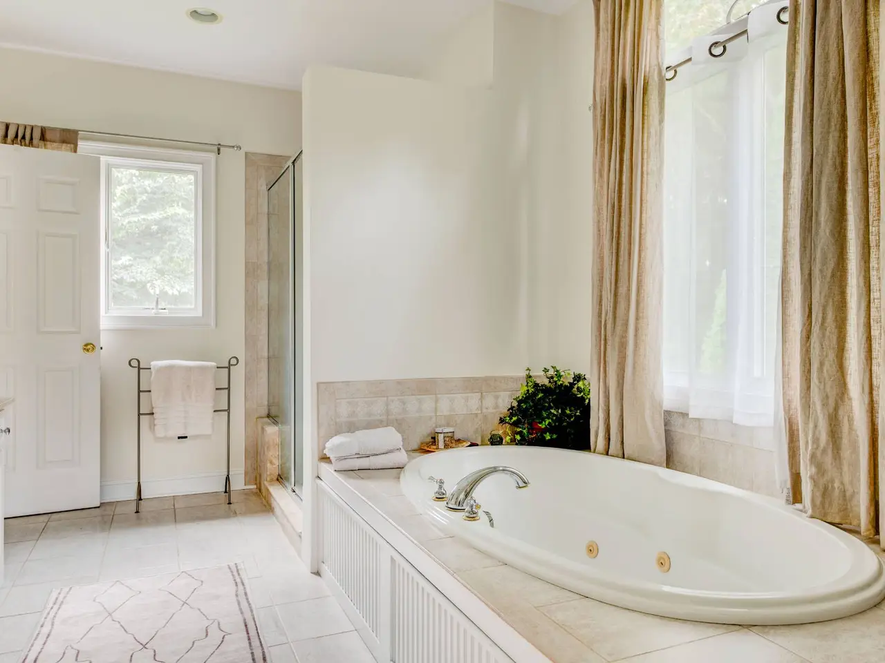 Rental Registration #: 22 - 0,834 - Two-story traditional situated in a lovely woodland setting offers four en-suite bedrooms (including master with a fireplace) plus a sleeping loft and four and one-half baths. The living room has a fireplace, a formal dining room, and a well-appointed kitchen. Comfort is a priority with three-zone heat and air-conditioning. The private 1.47 +/- acre property borders a 21 +/- acre reserve and is one-half mile from the beach. 20'x 40' heated vinyl pool with bluestone trim, an outdoor shower and extensive decks round out this offering. Listing ID: 735593