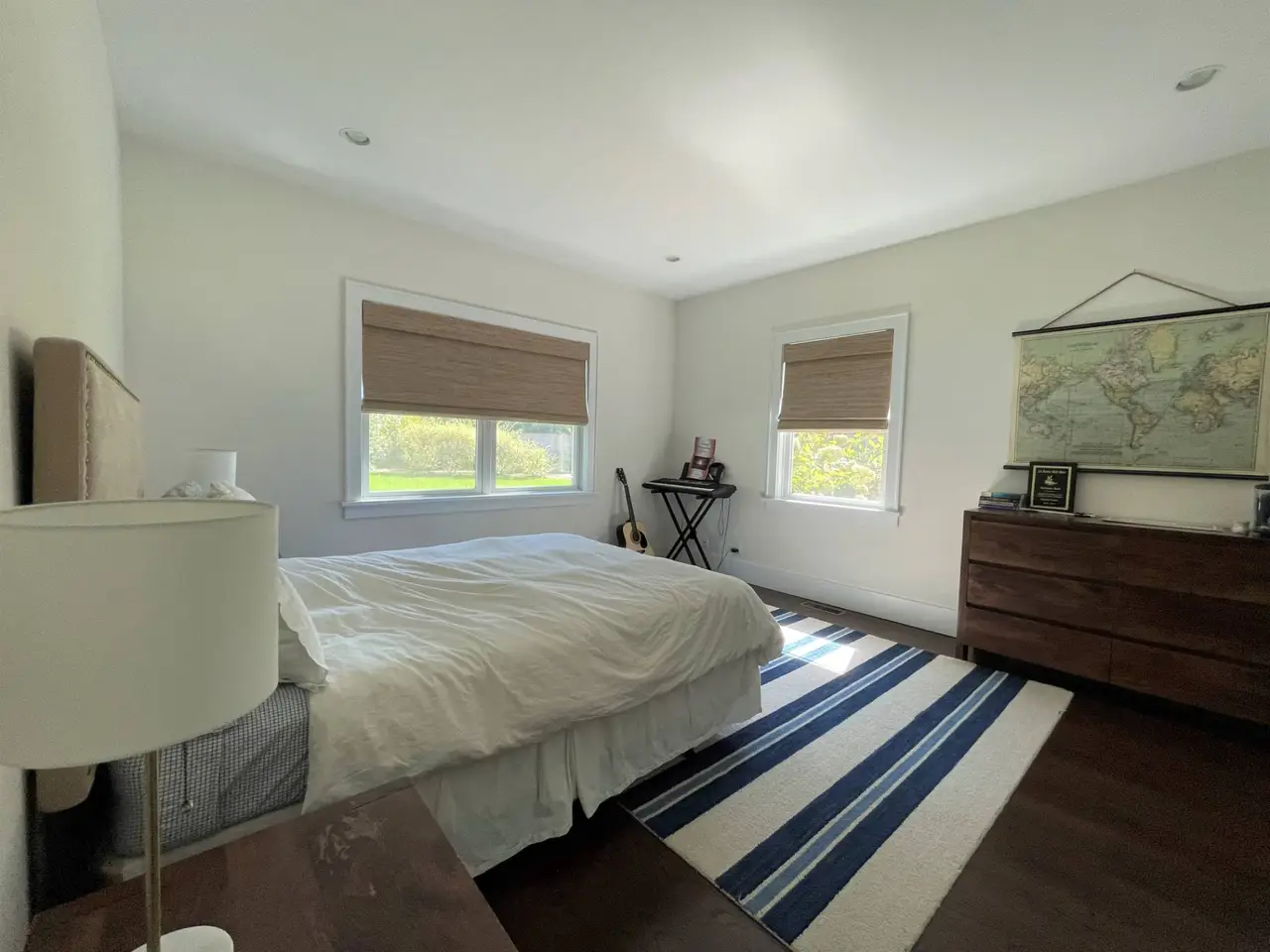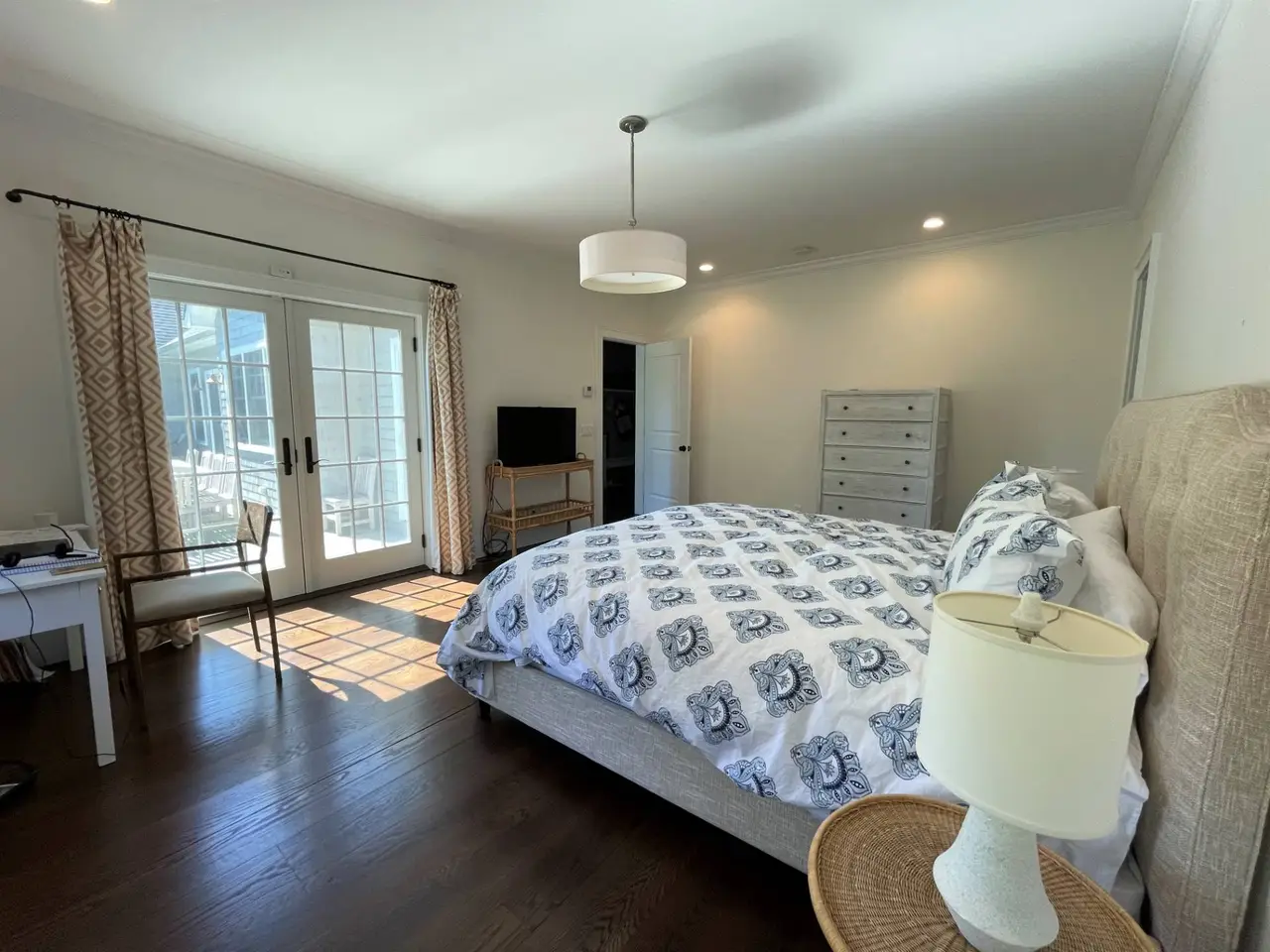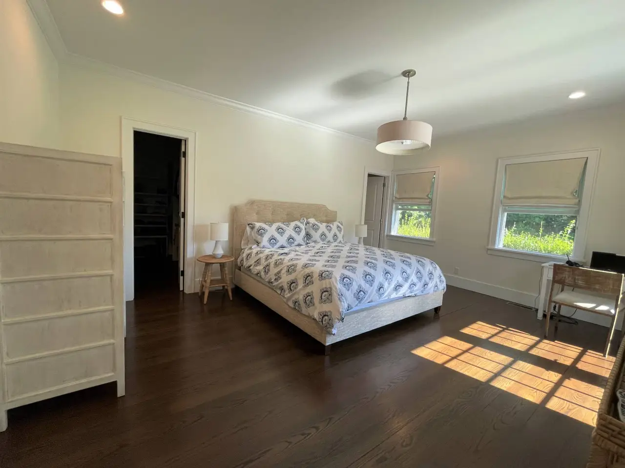 Rental Registration # 21-1,189 - Located within short distance to East Hampton village is this well-kept postmodern home. The home was built in 2013 by a Hampton top notch builder and offers five bedrooms and three and one half bathrooms on just about 3,000 square feet of living space. Upon arrival at the property, you are welcomed by a classic front porch that leads to the entry hall where the high ceiling living room with fireplace overlooks the heated salt water pool and manicured grounds. Additionally, the main floor includes a gourmet kitchen with marble countertops, stainless steel appliances, island, and breakfast nook, formal dining room with paneled wainscoting, den/TV room, powder room, two guest bedrooms, and a Jack-n-Jill bathroom. On the opposite side is the primary suite with walk-in-closet and bath with double stone vanity. The 12-foot lower level is finished with two additional bedrooms, a full bath and rec room. Additional amenities include an outdoor shower, central air-conditioning, a heated pool, and a two-car garage. Come experience the summer of a lifetime.