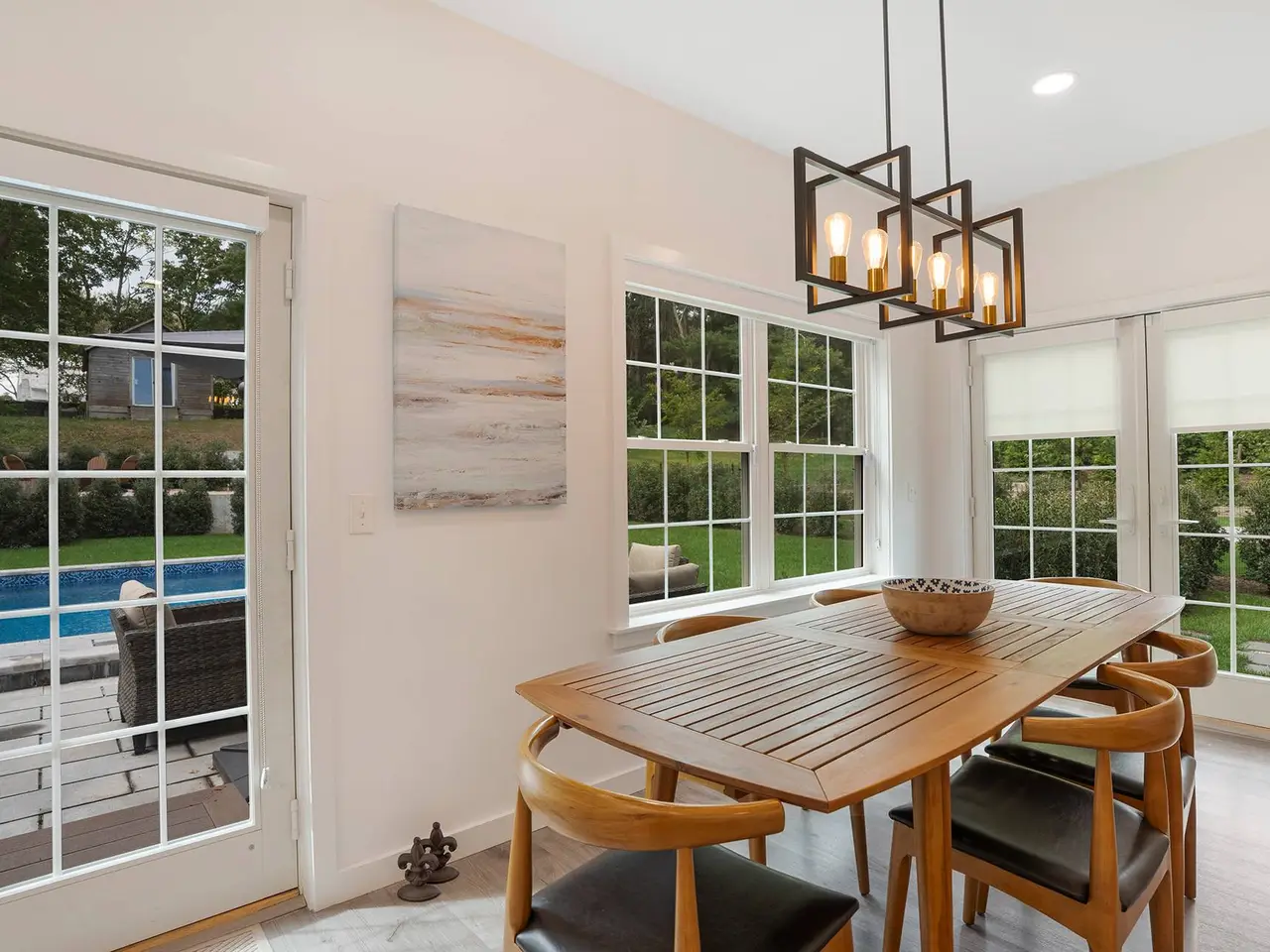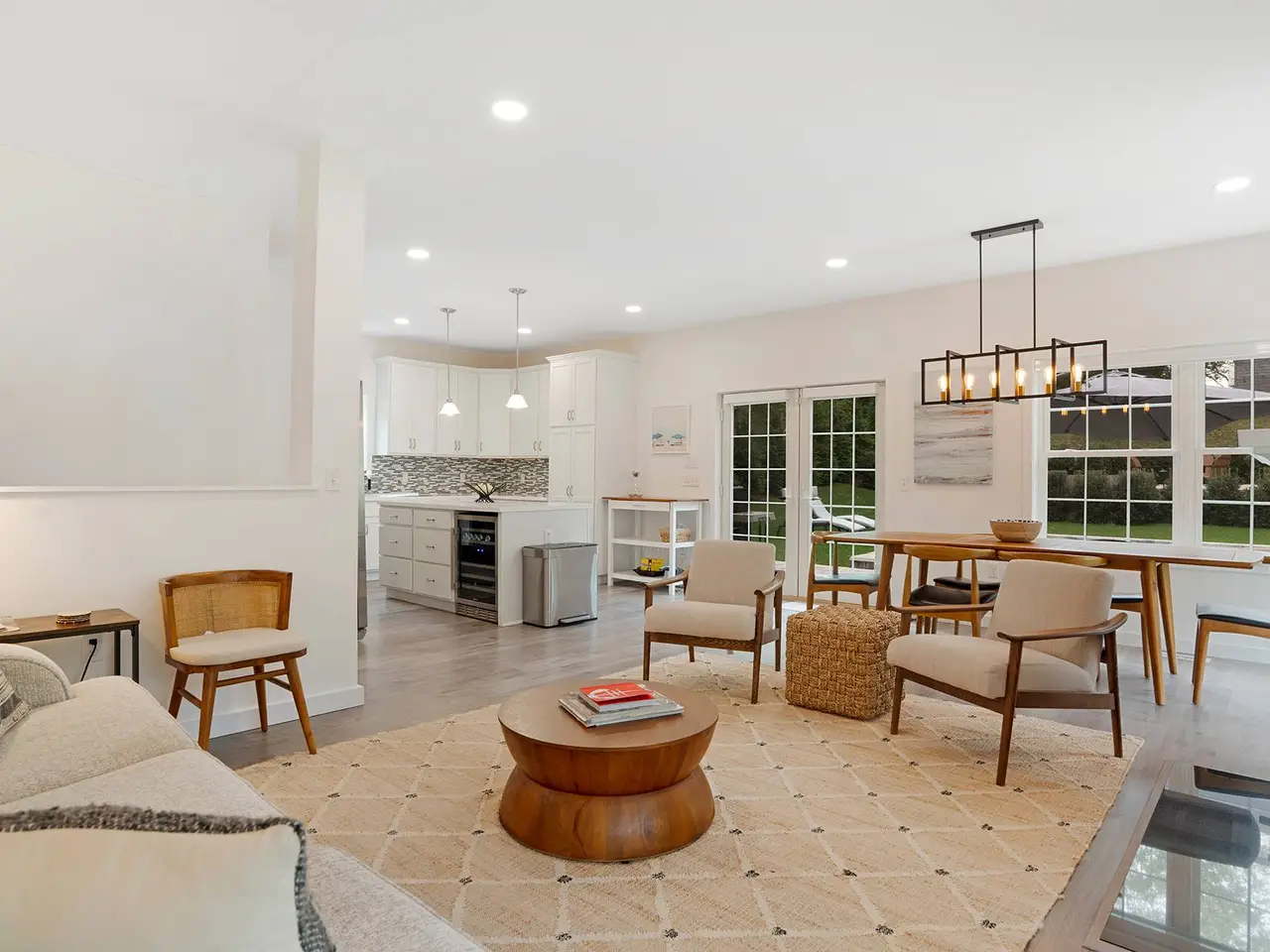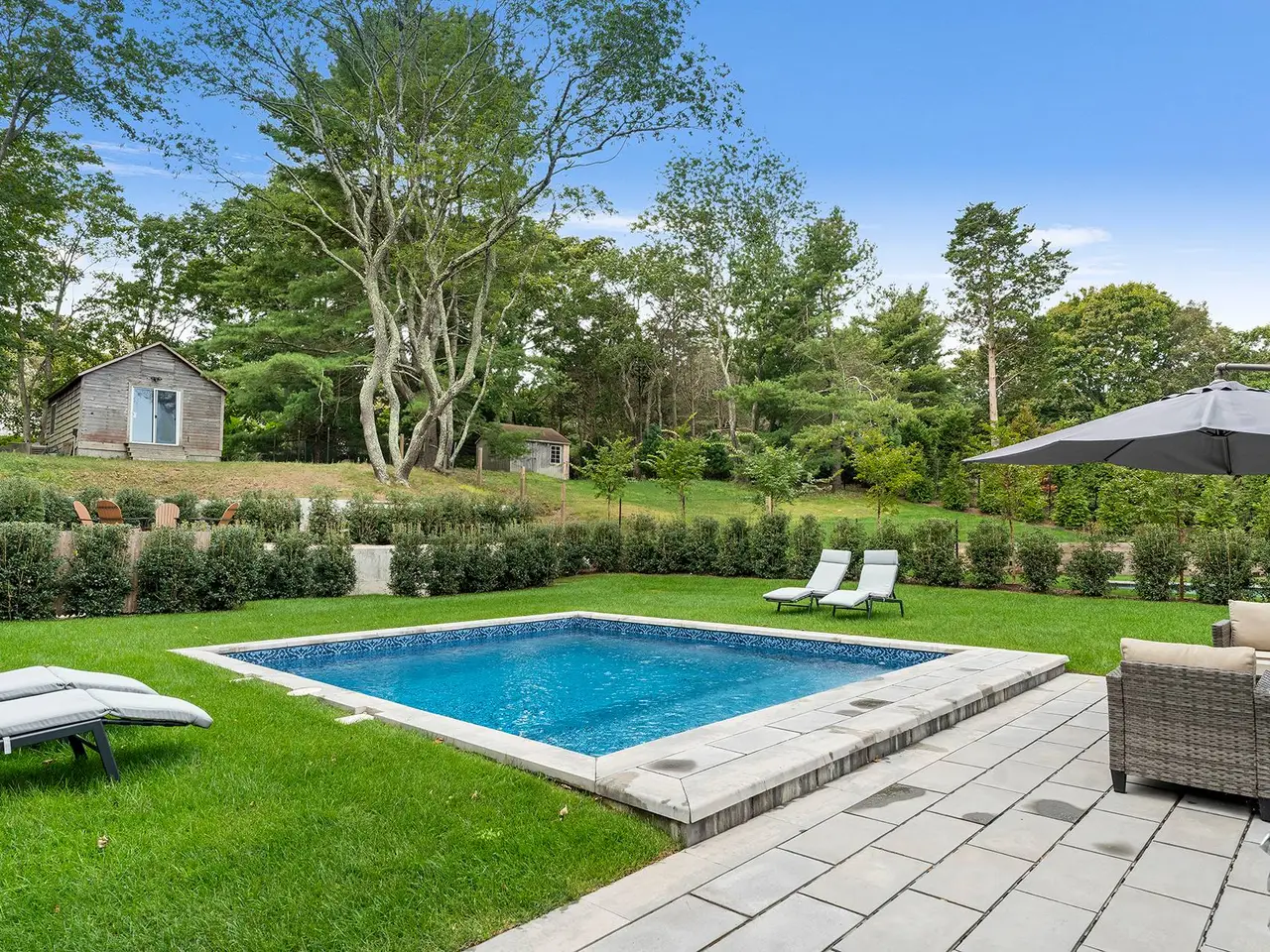 RR# 25-1074 Available for rent, this 2024 custom modular home offers four bedrooms and 3.5 baths across 2,100+- square feet of thoughtfully designed living space in the heart of East Hampton. This single-level residence combines modern design, high-end finishes, and an ideal location close to East Hampton Grill, Nick & Toni's, and Serafina. The open-concept living, dining, and chef's kitchen areas are filled with natural light, creating a welcoming flow for entertaining and relaxation. The living room is centered around a sleek custom gas fireplace. At the same time, the designer kitchen features a cultured white marble statement island, custom cabinetry, stainless-steel appliances, an integrated double sink, a wine cooler, and a professional-grade gas stove. Every room is equipped with a high-definition flat-screen television, and Wi-Fi extends throughout the property to meet both indoor and outdoor needs. Stylishly curated furnishings, contemporary artwork, and elevated fixtures add sophistication throughout the home. A sparkling heated 20X20 pool with stone patio and a custom outdoor shower, together with illuminated perennial gardens, provide ample outdoor space for relaxing or entertaining. This home offers both convenience and luxury in one of the most desirable East Hampton locations. Ready for occupancy January 2026 Annual or Seasonal Listing ID: 926181