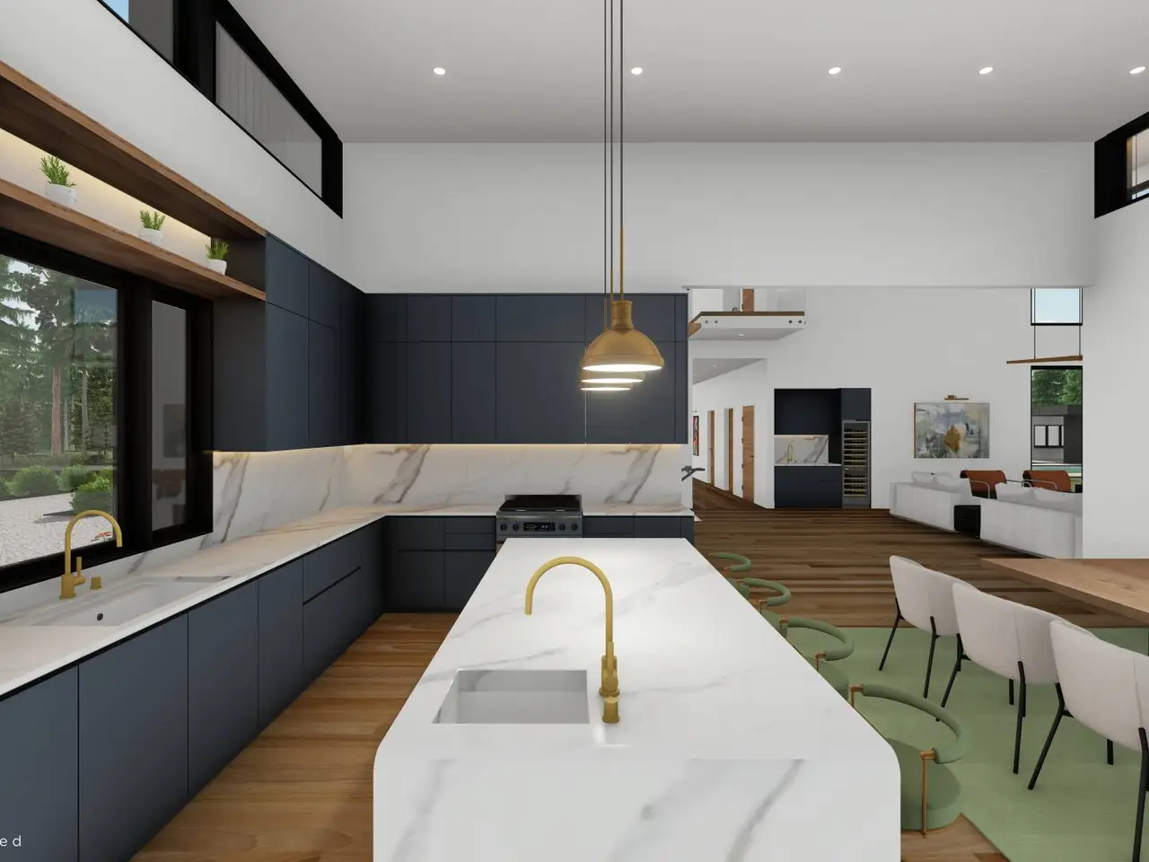 • Sub-Zero refrigerator and Wolf stove in modern kitchen