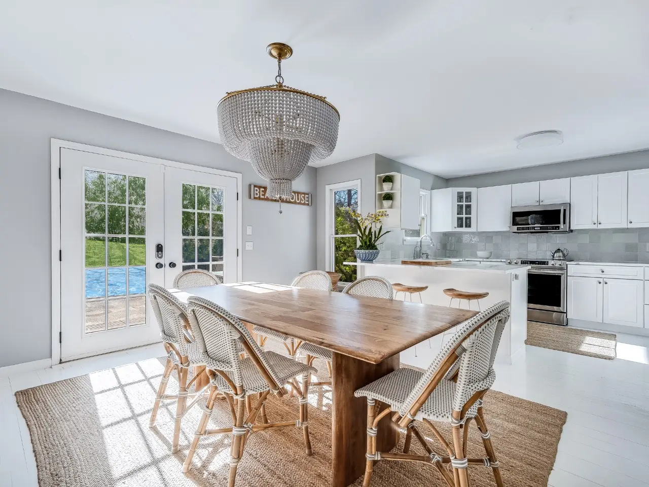 Wonderful designer farmhouse featuring approximately 2,200 square feet of stylishly renovated living space across two levels. The main floor includes a custom kitchen with island bar seating that opens to the dining area leading directly out to the back deck. A beautifully furnished living room with fireplace, full bath and a den/office complete the first floor. The second floor features an extra-large en suite primary with three additional guest bedrooms and a full bath. Outside, the heated pool is surrounded by a lush lawn and hedges providing the perfect place to relax. Moments away from Maidstone Beach, waterfront restaurants, marinas, art galleries and farm stands, 65 Lincoln Ave is the perfect summer getaway.