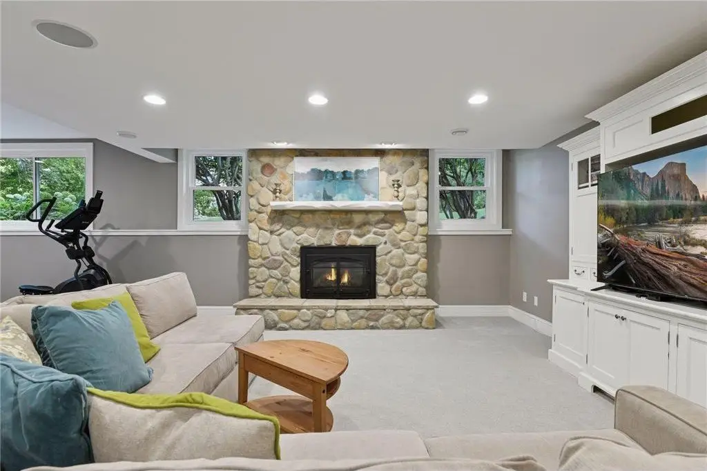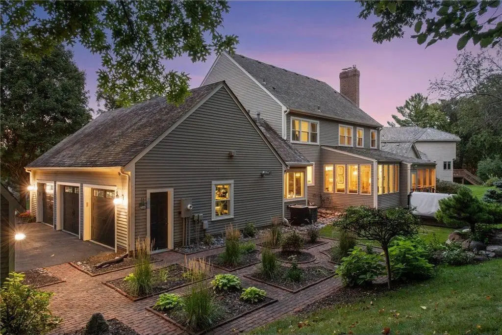 Welcome to this exceptional custom-built New England style masterpiece, tucked within the coveted Olympic Hills Golf Course community. Perfectly situated on a premier lot, this home offers breathtaking panoramic views of Purgatory Creek and an unparalleled blend of elegance, comfort, and timeless charm. From the moment you step inside, you’ll be captivated by the architectural detail, sun-drenched spaces, and warm yet sophisticated design. The gourmet chef's kitchen showcases high-end appliances, including a six-burner Viking cooktop, dual Thermador oven, and a Sub-Zero refrigerator/freezer, offering professional-grade performance with refined, elegant design. Custom white enameled cabinetry, and a large center island, perfect for gatherings and culinary creativity. Adjacent to the gourmet kitchen, this space features a thoughtfully designed butler’s pantry and a planning center—perfect for entertaining, organizing, and everyday convenience. Step inside and feel the inviting coziness and charm throughout this lovely home. Features include: ALL NEW WINDOWS throughout (July 2025 w/ a lifetime warranty). Formal living room highlighted by custom built-ins and a beautifully detailed decorative ceiling, creating an elegant space for both relaxation and entertaining. Spacious main floor family room with rich millwork and custom built-ins accenting the classic brick wood-burning fireplace, offering warmth and character to the heart of the home. Formal dining room boasts gleaming hardwood floors and striking reclaimed wooden beams on the ceiling, combining timeless elegance with a warm, inviting atmosphere—perfect for entertaining and special gatherings. A bright and inviting sunroom, bathed in natural light from an array of windows, featuring a custom planning desk and a decorative see-through gas fireplace, bringing both warmth and charm to this welcoming space. The room you’ll never want to leave, a beautifully appointed 3-season porch featuring low-maintenance decking, a decorative see-through gas fireplace, stylish shiplap on walls and ceiling, and framed views of nature, creating the perfect harmony of comfort, charm, and tranquility. Spacious mudroom featuring a custom-built coat center complete with bench seating—designed for both organization and everyday functionality. Generous main-floor home office boasting custom-built cabinetry and serene views of the surrounding woods, offering a peaceful workspace immersed in nature. The main floor features a generous laundry room complete with custom cabinetry, a utility sink, and a dedicated folding area... The upper level showcases a spa-inspired primary ensuite, complete with a separate soaking tub and walk-in shower, dual-sink vanity, spacious walk-in closet, trayed ceiling, and a classic decorative brick W/B fireplace, elegance and comfort seamlessly combined. The upper level is completed with three additional generously sized bedrooms, a full bathroom featuring a dual-sink vanity, and a loft area equipped with a custom built-in study desk. The lower level features a spacious media room and game area, a wet bar, a fifth bedroom with an adjoining 3/4 bath, and abundant storage, thoughtfully crafted to combine entertainment, comfort, and everyday practicality. Updates include: NEW CARPET throughout the home(June 2025), 3 NEW garage doors(Dec 2024), NEW washer/dryer(2022), NEW dishwasher(2021), additional Features: oversized heated/insulated garage, garden shed, zoned heat/air, garden shed, outdoor jacuzzi/hot tub, Radon mitigation system, lawn irrigation. Located in one of the Twin Cities’ most sought-after communities, this residence combines classic architecture with modern luxury, All of this, just minutes from award-winning schools, abundant shopping, fine dining, and countless parks, trails, and recreational opportunities, everything you need right at your doorstep... Truly a standout property!