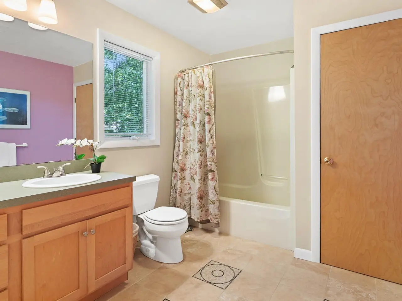 Nestled in a tranquil residential neighborhood, at the top of a curved drive through beautiful trees, this well-maintained home in move-in condition offers an idyllic Martha's Vineyard lifestyle. Custom-built for quality and convenience by a prestigious Island builder, every detail was thoughtfully planned for exclusive use by the family as a cherished year-round vacation home. The open floor plan centers around the bright second-floor great room illuminated by skylights in the cathedral ceiling, and a wall of sliding doors leading to a large deck overlooking lush green treetops with grill and dining areas for al fresco entertaining. A third-floor loft provides overflow for guests or a lounge area with its own balcony for sunbathing or stargazing. The entry level includes a large primary bedroom with an en-suite bath, a convenient laundry alcove, and two additional bedrooms with a shared bath and soundproof insulation. New mahogany outdoor shower and shingles, recent carpet, roof and skylights are just a few of the improvements. A generous .92-acre lot offers peace and privacy, and the walk-out basement allows for future expansion within the existing footprint to take full advantage of the 7-bedroom capacity with permitting and a tie-in to the available sewer connection. Cycle easily to Edgartown Village or up-island on the nearby bike paths including the Meetinghouse Way bike path leading to South Beach. A detached Salt Spray car barn and a beautiful landscape with lawns, giant blue Hydrangea and a trellis with flowering Clematis vine complete the property.