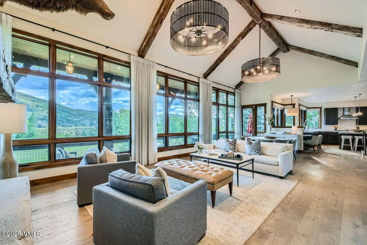 Elegantes Golfhaus mit weitem Bergblick Direkt am Sonnenalp Golfplatz in Singletree gelegen, bietet dieses elegante Berghaus einen atemberaubenden 180-Grad-Südblick auf die Skipisten und die umliegenden Berge. Die Lage in einer ruhigen Sackgasse bietet Privatsphäre und Komfort, nur 15 Minuten von Vail und Beaver Creek entfernt und in der Nähe der Geschäfte und Restaurants des Edwards Riverwalk. Das offene Design bietet drei separate Wohnbereiche, ideal für den Alltag und die Freizeitgestaltung. Im Erdgeschoss befindet sich eine geräumige Master-Suite mit eigenem Büro. Im Obergeschoss teilen sich zwei Schlafzimmer mit eigenem Bad einen separaten Wohnbereich. Die untere Ebene mit Ausgang bietet ein Schlafzimmer mit eigenem Bad, ein Familienzimmer, einen Fitnessraum, ein Dampfbad und ein Bonuszimmer – alle mit direktem Zugang zum Golfplatz. Mit vier Schlafzimmern mit eigenem Bad und mehreren flexiblen Bereichen bietet dieses Haus eine komfortable und funktionale Raumaufteilung. Eine große, umlaufende Terrasse nutzt die Südlage des Grundstücks optimal und liegt direkt am malerischen sechsten Loch. Im Winter verwandelt sich der Golfplatz in ein präpariertes Wegenetz zum Wandern und Schneeschuhwandern. Zu den weiteren Highlights gehören ein an die Küche angrenzender Schmutzschleusen- und Waschraum sowie eine beheizte Dreifachgarage mit strapazierfähigem Epoxidharzboden. Das 2014 erbaute und voll möblierte Haus ist bezugsfertig. Singletree ist ein begehrtes Viertel in Edwards, Colorado, das aufgrund seines wärmeren Klimas und der langen Sonnenstunden oft als „Sunbelt des Vail Valley“ bezeichnet wird. Die Bewohner genießen direkten Zugang zu Wander- und Radwegen, Parks und dem gemeinschaftlichen Fitnesscenter. Der Sonnenalp Club bietet neben dem 18-Loch-Meisterschaftsgolfplatz auch Mitgliedschaften für Tennis, Pickleball, Schwimmen und Fitness an.