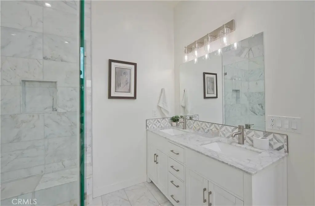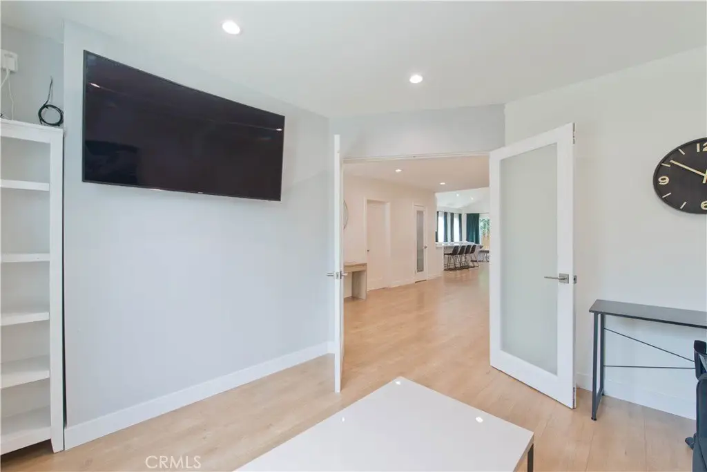 Stunning Remodeled Encino Park Home with Modern Upgrades and Energy Efficiency. Welcome to this beautifully remodeled and expanded 5-bedroom Encino Park gem, offering a seamless open floor plan flooded with natural light and highlighted by a striking exposed wood beam ceiling. From the moment you enter, you’ll be captivated by the expansive great room featuring wall-to-wall glass doors that open to a serene outdoor space. The chef’s kitchen is a showstopper — designed with quartz countertops, a spacious eat-in island with ample storage, soft-close white cabinetry, premium Thor stainless steel appliances, and a massive walk-in pantry for ultimate convenience. This home includes three generously sized bedrooms near the front of the house, accompanied by a large shared bathroom with double vanity. The luxurious primary suite is a private retreat with a walk-in closet, spa-like bathroom featuring an oversized shower, soaking tub, and dual sinks. An additional en-suite bedroom with its own walk-in closet and full bath adds flexibility for guests or extended family. Step outside to your private backyard oasis, complete with low-maintenance turf, a durable Trex deck perfect for entertaining, and lush landscaping. Enjoy energy efficiency year-round with fully owned solar panels and Tesla Powerwall batteries, keeping your electric bills low and your home powered even during outages. This move-in ready home blends comfort, luxury, and sustainability — don’t miss this rare opportunity in Encino Park!