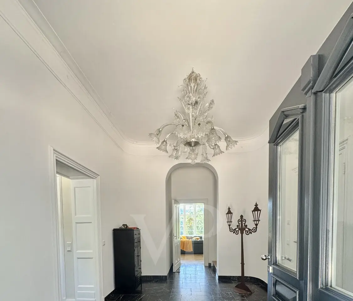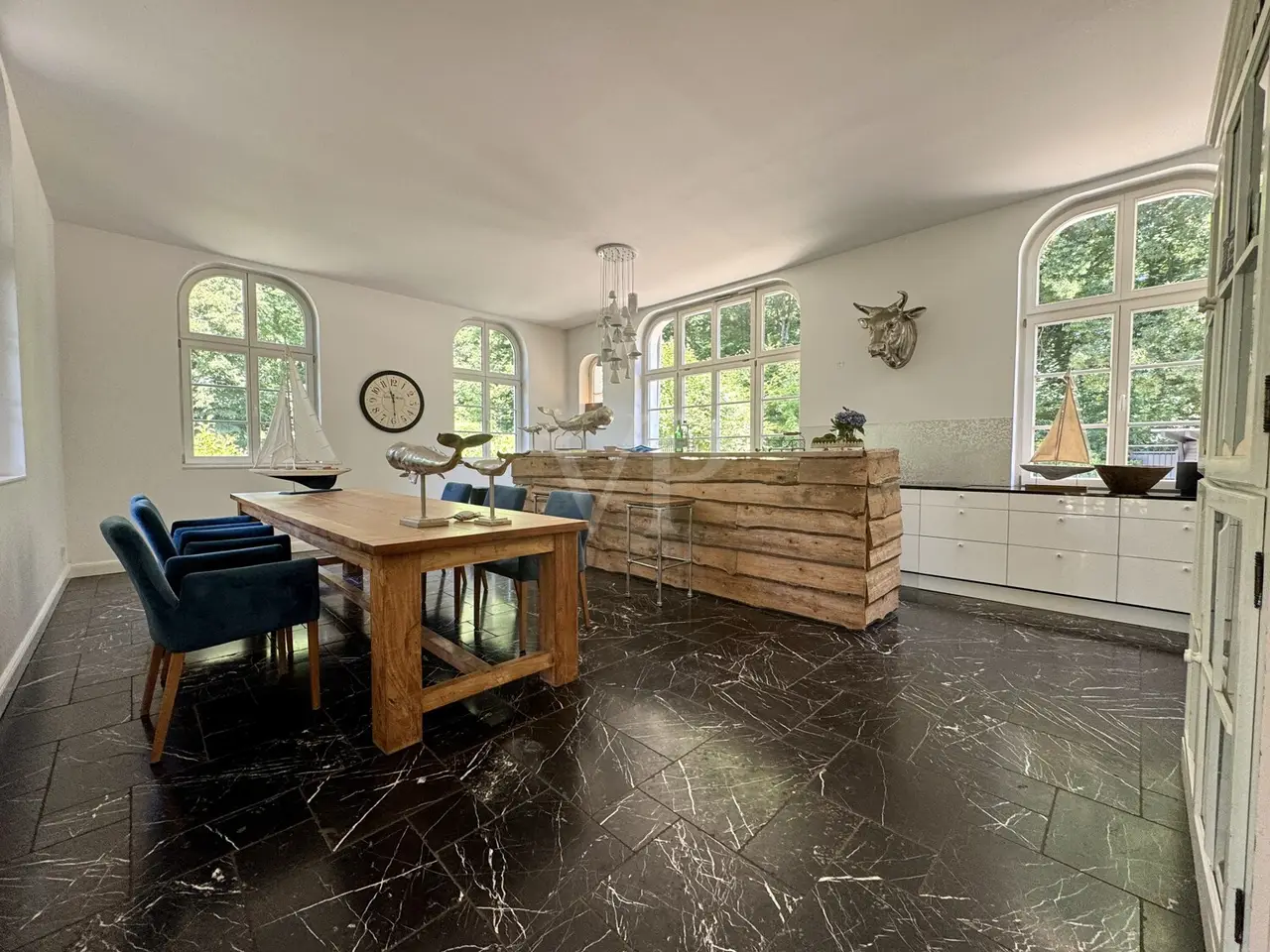 A unique offer is for sale: a historic industrial villa with impressive architecture and history. This property offers many possibilities. The villa was built in the early 20th century and once served as the summer residence of the prestigious Dörrenberg dynasty. Today, it is an imposing property that combines the charm of times gone by with the potential of modern use. The spacious villa extends over a living area of approx. 560 m² and is situated on an extensive plot of around 10,000 m². The property is located on the outskirts of the village, embedded in a quiet, mature environment with good connections to the city center and the surrounding nature. The room layout is versatile and well thought out: There are thirteen rooms in total, including four bright bedrooms, three large lounges, a representative entrance hall, as well as several adjoining rooms. The magnificent staircase emphasizes the historic ambience, as do the original wooden floors, high coffered doors and ornate stucco ceilings, which have been preserved in many areas. Features include a fully equipped kitchen, a dining room with period fittings, four modern bathrooms with bath and shower and a guest toilet. The villa is largely furnished; antique furnishings reflect the original character and are complemented by contemporary technology in the areas of heating and electrics. This industrial villa offers numerous possibilities for use and development: it could become an exclusive residence for a family - ideal for living and working under one roof. It could also be used as a bed and breakfast with historical flair or to host events and exhibitions. Due to the special architecture and history, filmmakers have already been interested in the villa, as the setting is unique and offers a wide range of possibilities for filming and photo shoots. The property itself impresses with its size and flexibility. There is ample space for prestigious gardens as well as spacious terraces and numerous parking options. The land is even suitable for keeping horses, which makes the offer particularly interesting for lovers of country life. Land can also be purchased individually. The combination of a building steeped in history, an exceptional room layout and a wide range of potential uses makes this property a rare opportunity. Come and see the special advantages of this unique property for yourself during a personal viewing. Please do not hesitate to contact us for further information or an appointment.