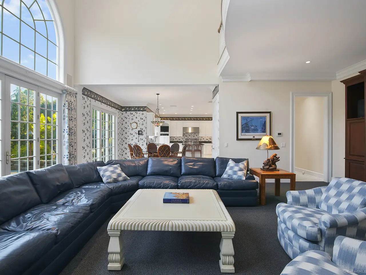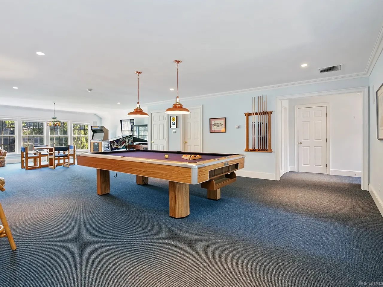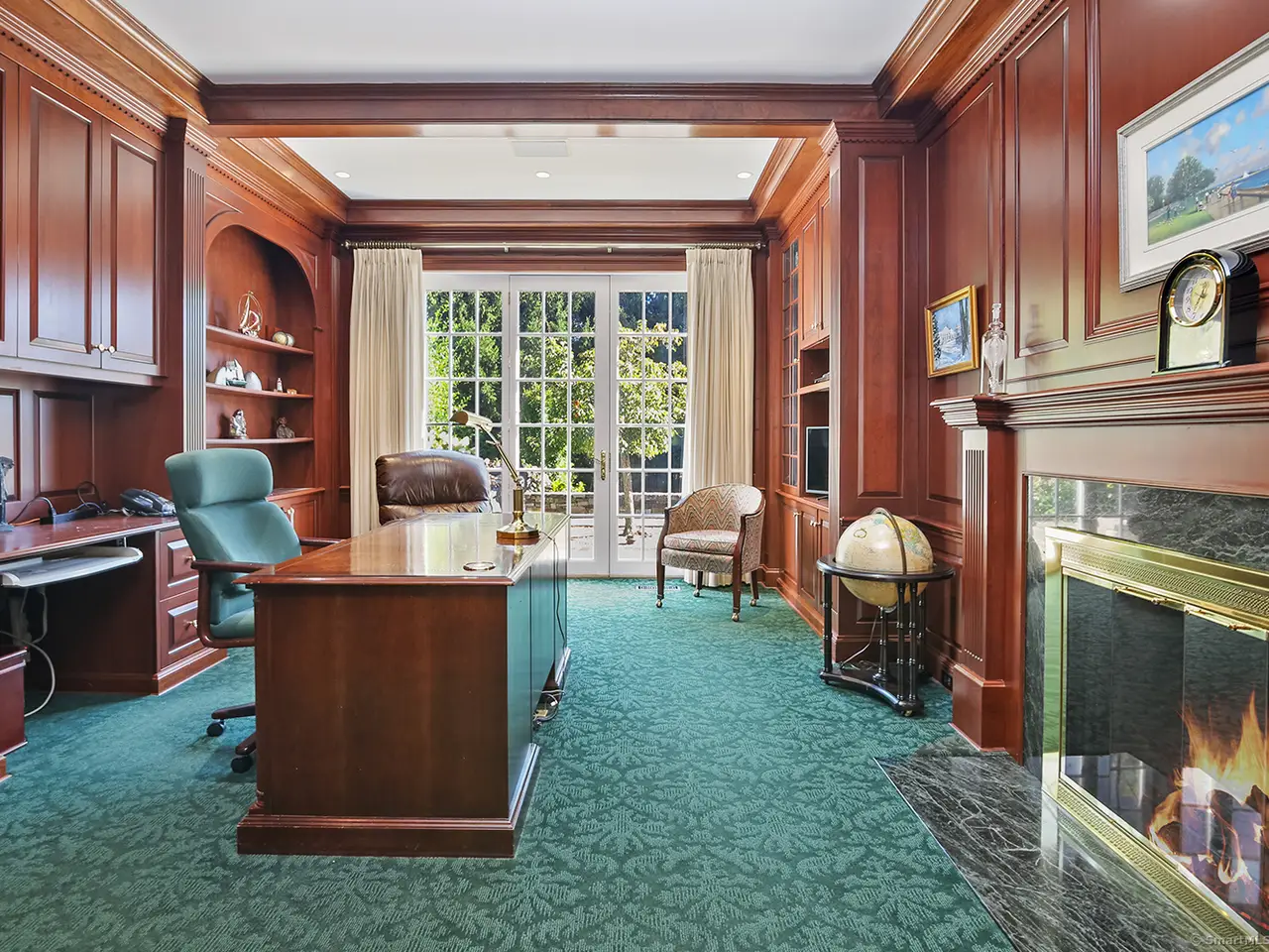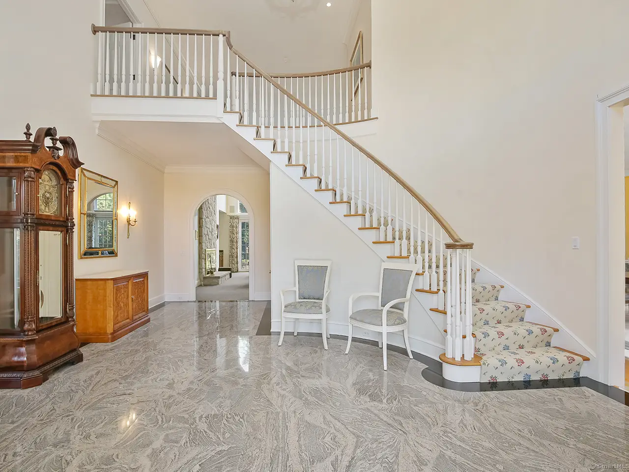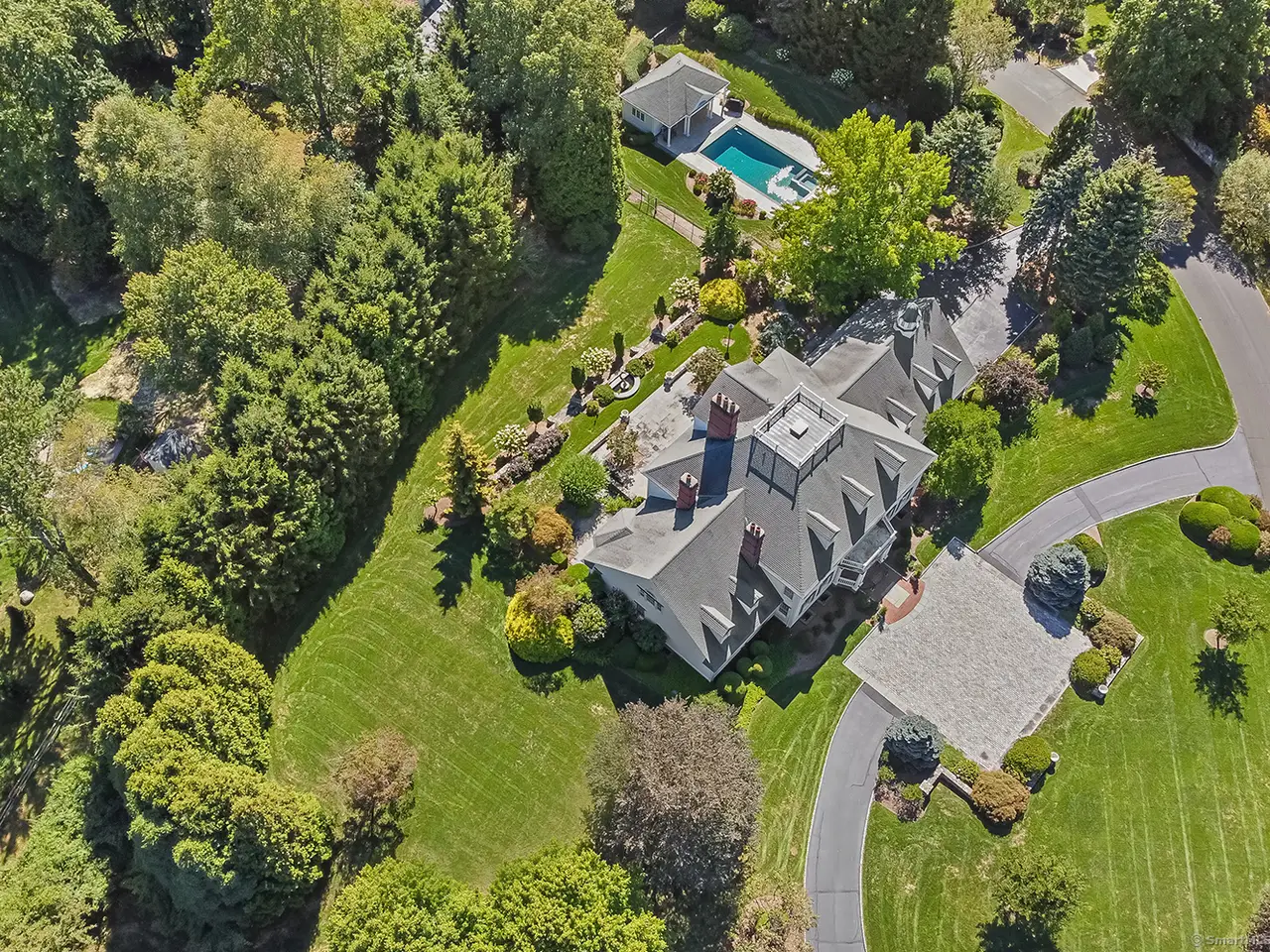 There are houses you tour, and then there are estates that capture your imagination. This extraordinary Greenfield Hill Colonial is the latter-a 9,700+ sq. ft. residence set on a pristine 2-acre corner lot in one of Fairfield's most prestigious neighborhoods. A paver-stone drive winds past manicured gardens to a grand two-story entry with a sweeping staircase, setting the tone for elegant living. Meticulously landscaped grounds, fountain, serene stone pathways, and a tranquil koi pond create a private oasis for quiet reflection or outdoor enjoyment. Inside, elegant formal living and dining rooms provide a perfect backdrop for entertaining, while the sun-filled family room, with vaulted ceilings, floor-to-ceiling windows, and a dramatic stone fireplace, serves as the heart of the home. The luxurious primary suite boasts tray ceilings, dual walk-ins, and a marble spa bath. Upstairs, five spacious bedrooms-many ensuite-welcome guests, and the third floor features a game and billiards lounge. A bespoke English pub, thoughtfully designed and versatile, can serve as a lounge, home office, entertainment room, or hobby space. Outdoors, a gated saltwater pool and hot tub with a fully equipped poolhouse create an inviting retreat for summer gatherings. This remarkable estate blends sophistication, comfort, and timeless appeal-a sanctuary for grand occasions and quiet moments alike.