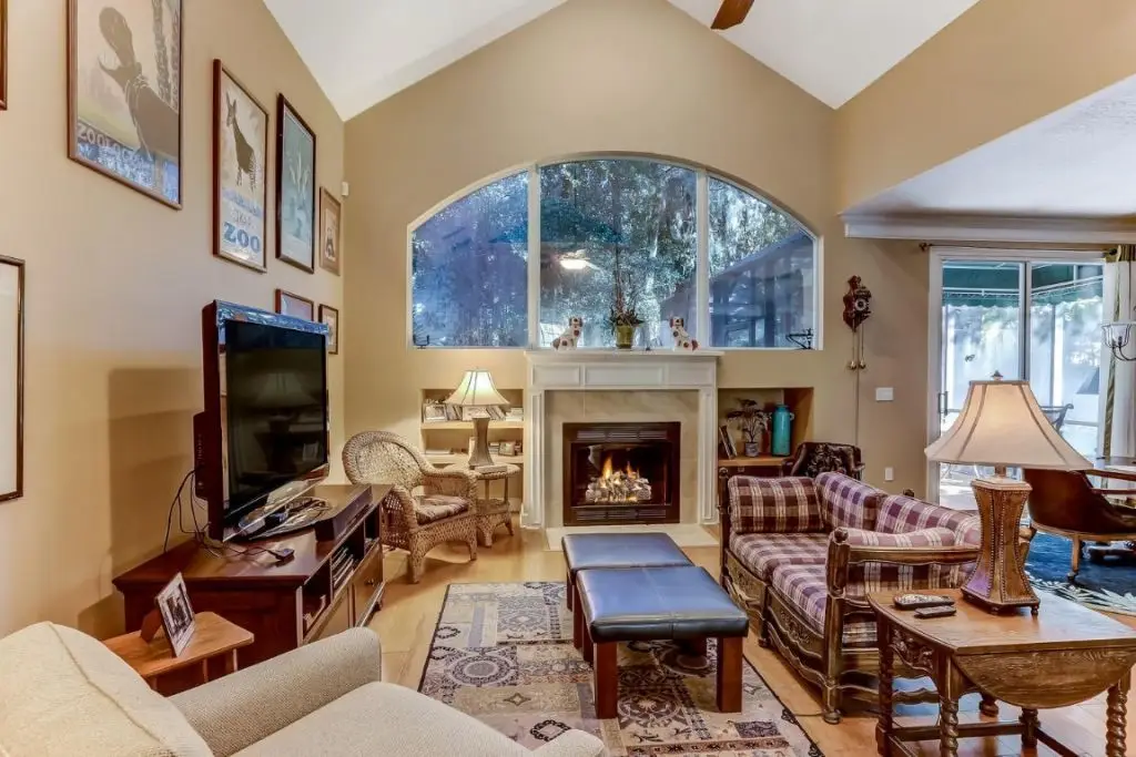 AFFORDABLE SOUTH ISLAND LIVING.......ATTRACTIVE AMELIA ISLAND HOME at 95184 Mackinas Circle with SOUGHT AFTER FEATURES: WOOD FLOORING, FIREPLACE, vaulted ceiling, tranquil backyard space.....GATED COMMUNITY located between Ritz-Carlton and Amelia Island Plantation....Original owner home in EXCELLENT CONDITION......four Bedrooms, two and a half baths, DOWNSTAIRS PRIMARY SUITE, dining room, living room plus GREAT ROOM....OPEN KITCHEN with light wood cabinetry, breakfast bar and breakfast area....SCREENED BACK PATIO to expand your living space....5 MINUTES to: BEACH ACCESS, golf, tennis, miles of walking/biking paths, multiple south end restaurants, Harris Teeter grocery/pharmacy/gas station....Located in smaller comfortable Summer Beach neighborhood with tree canopied streets.