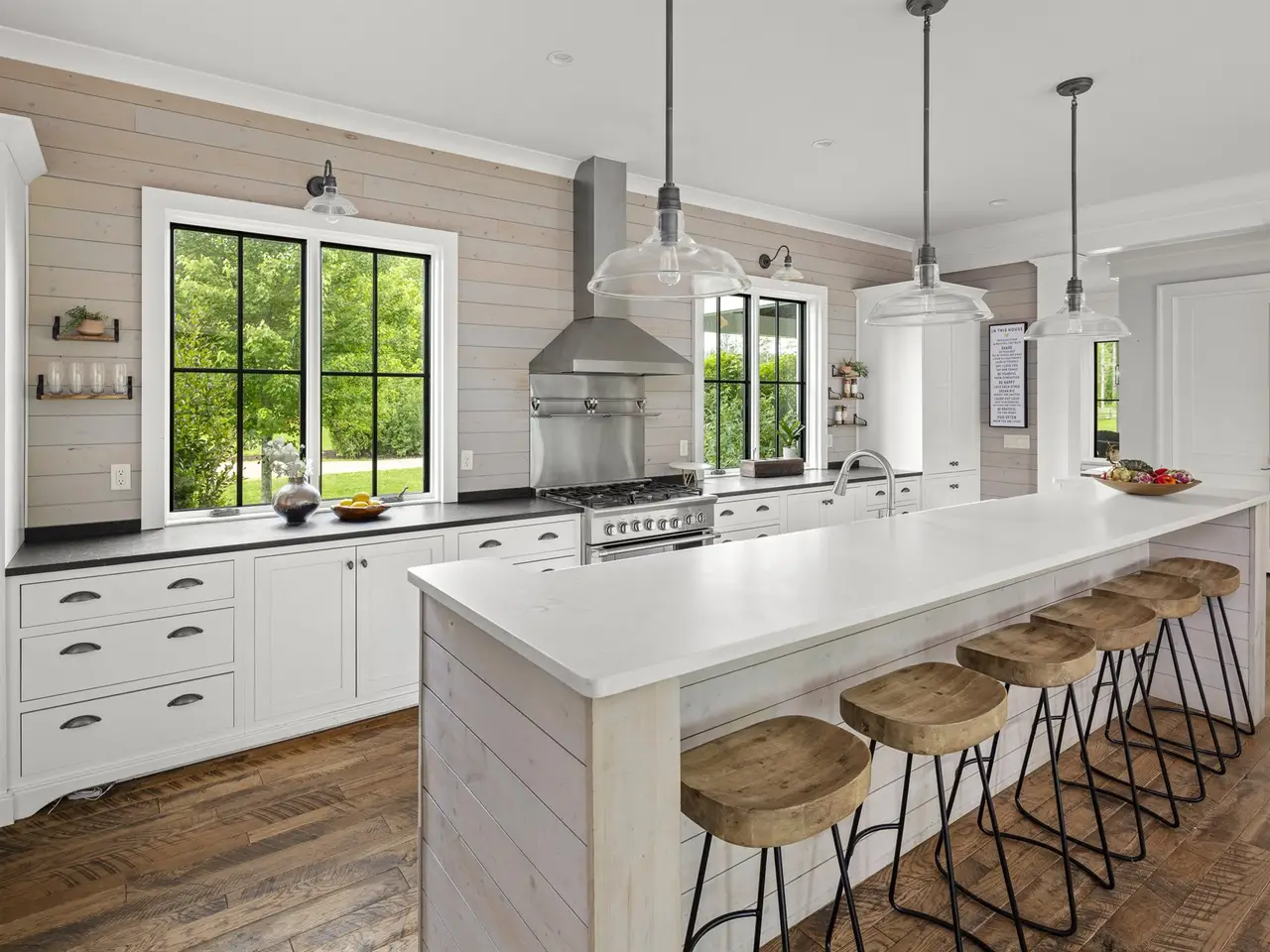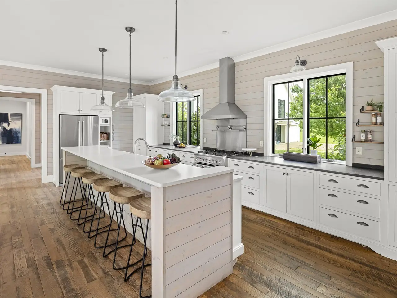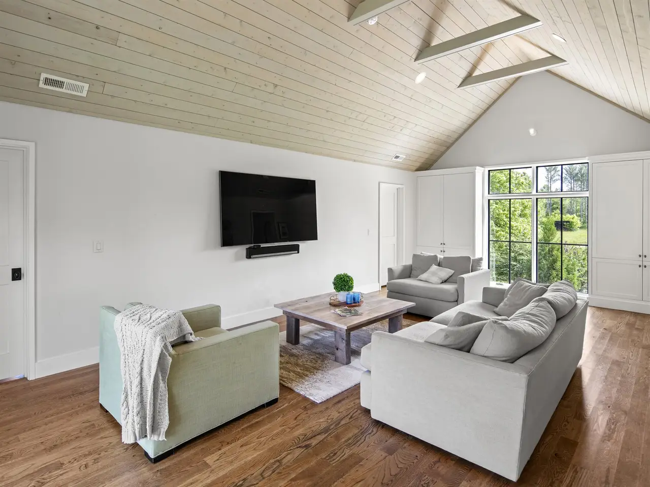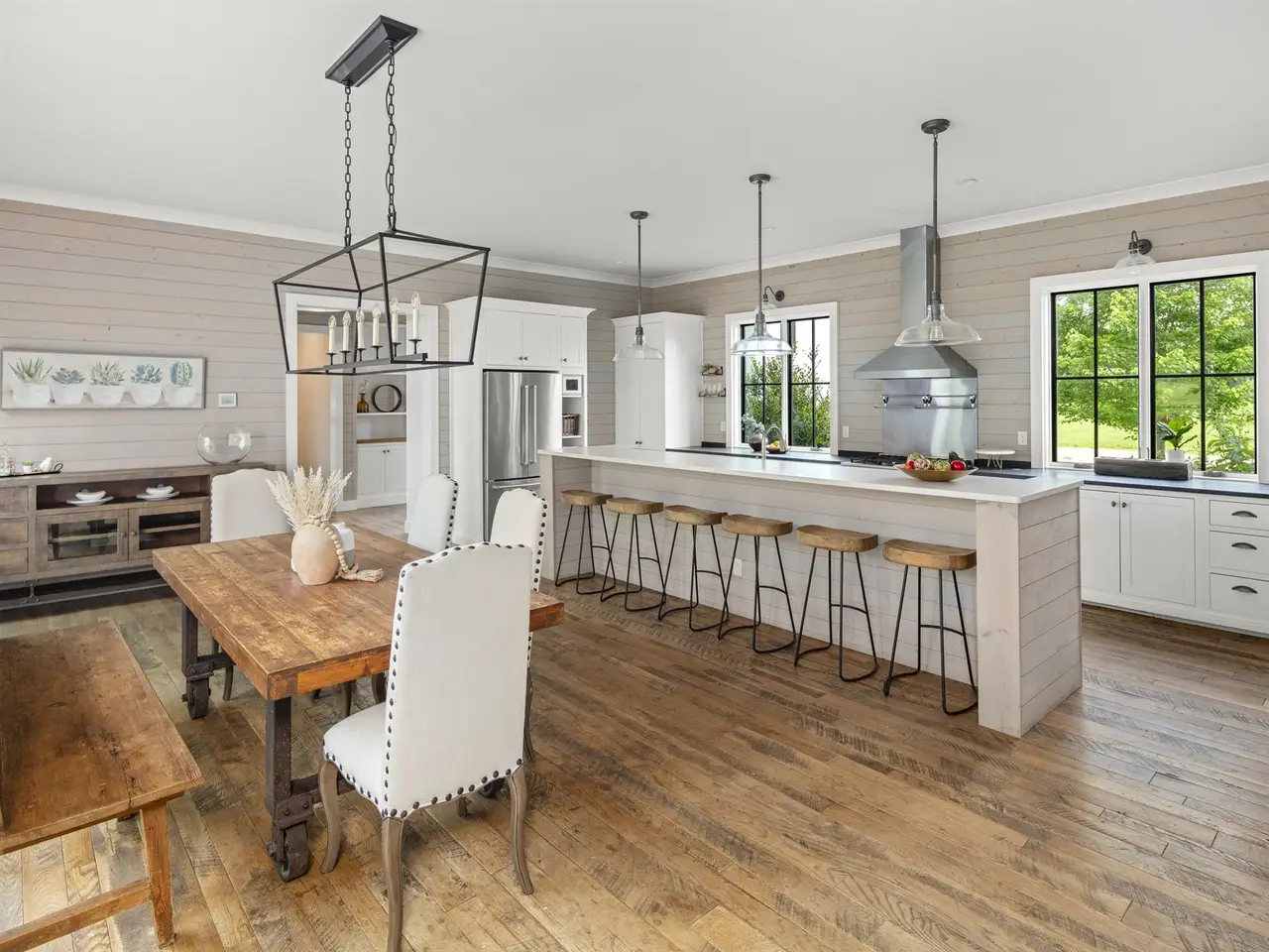 Nestled in the serene mountains of Western North Carolina, this modern farmhouse sits on over 10 private acres along a stocked trout stream. The estate features a spacious 4-bedroom main house, each bedroom with its own en suite bath, complemented by a cozy 2-bedroom guest house. You'll also find a barn with a stable, a charming chicken coop, and pens for other farm animals, all surrounded by ample pasture space perfect for livestock or gardening. A detached garage houses a home gym and sauna, supporting a healthy, whole-body lifestyle. This inviting retreat offers the perfect blend of privacy and simplicity, ideal for those seeking a peaceful mountain lifestyle with plenty of room for animals and outdoor living?all just 6 miles from Whole Foods, 7.5 miles to Fresh Market, 7.5 miles to the entrance to the Blue Ridge Parkway, 13.7 miles to Beautiful Biltmore Estate, and all the fabulous shopping and dining in between!