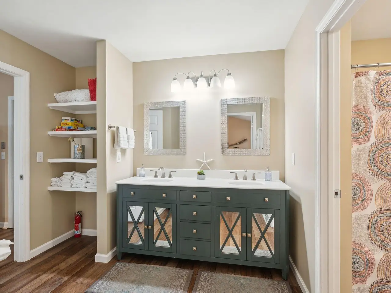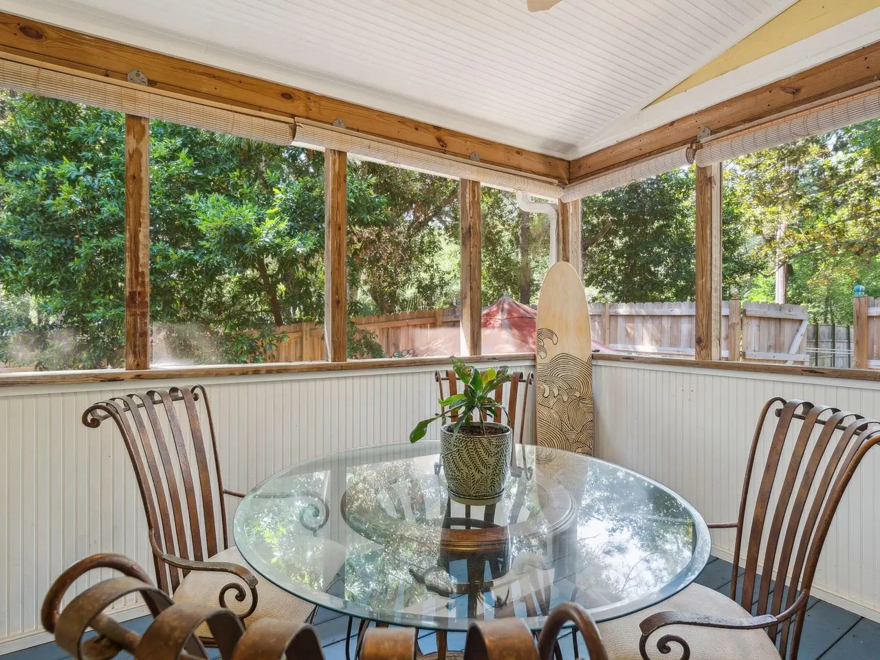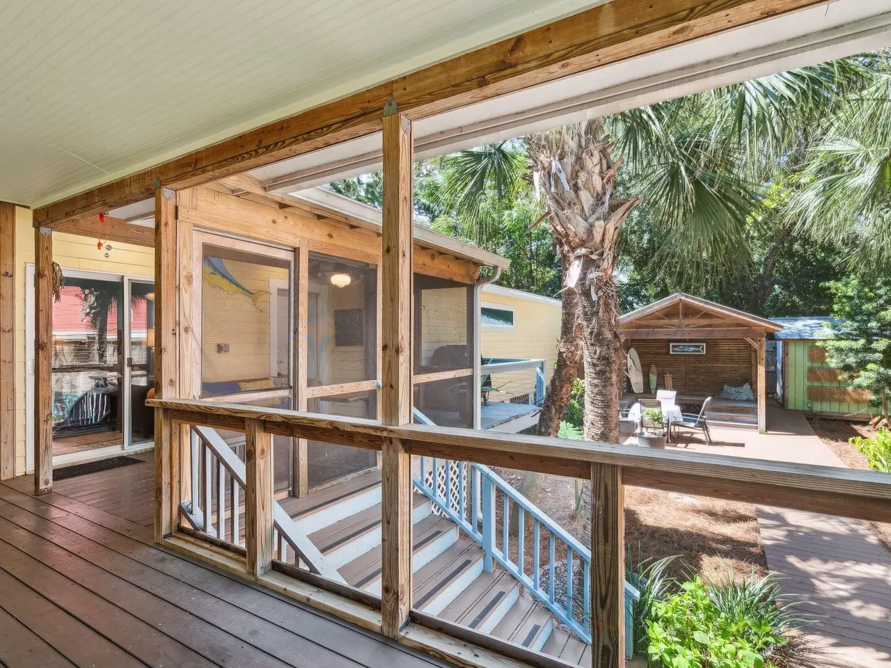 Step into timeless coastal charm with this fully restored vintage surf cottage in the heart of Folly Beach, ideally located in the X flood zone for added peace of mind. Nestled on a desirable street-to-street lot, this enchanting property combines classic beach appeal with modern upgrades, offering private, spacious outdoor areas perfect for both relaxation and entertainment.Inside, the main home features three generous bedrooms and two stylishly updated bathrooms, along with an open-concept kitchen, living, and dining area--ideal for gatherings with friends and family. The kitchen boasts an extra-large pantry that's a chef's dream, while dual walk-in closets provide ample storage.Enjoy the coastal breeze on either of the two expansive screened-in porches, or unwind in your private outdoor space, pre-wired for a hot tub to add a touch of luxury to your beachside retreat. In addition, a charming connected mother-in-law suite offers a private bedroom, bathroom, and open living area, complete with its own screened-in porch and outdoor shower. This suite is ideal for guests, extended family, or as a peaceful, personal retreat within the property. The spacious backyard is an entertainer's paradise, offering endless possibilities for activities, from bocce and cornhole to barbecues and even a mini putt-putt course. After a day in the sun, rinse off in the outdoor shower, and store your essentials in the two large outdoor sheds. Meticulously renovated in 2020, this cottage has been updated with new electrical, plumbing, and impact glass windows, along with a fully reconfigured kitchen that features Charleston-inspired tile, a raised ceiling in the coffee nook, and hardwood flooring throughout. Additional updates include a tankless water heater, a new HVAC system, and a 10-foot privacy fence with custom gates surrounding the entire yard, enhancing both security and seclusion. Don't miss your chance to own a piece of Folly Beach historythis one-of-a-kind cottage with a connected mother-in-law suite is ready for you!
