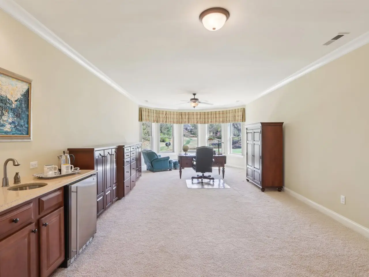 Von diesem makellos gepflegten Haus bietet sich ein atemberaubender Blick auf das charakteristische Loch Nr. 15. Zu den edlen Details zählen schwere Stuckarbeiten, hohe Gewölbe-, Kassetten- und Tablettdecken, 2,44 m hohe Türen, maßgefertigte Fensterläden, ein hydraulischer Aufzug, zwei Kamine, Einbauschränke und Surround-Sound. Hauptschlafzimmer im Erdgeschoss mit Sitzecke, zwei begehbaren Bädern und glamourösem Bad. Zweites Hauptschlafzimmer im Erdgeschoss. Wohnzimmer mit Kassettendecke, Einbauschränken und Gaskamin. Großes Zimmer mit Gewölbedecke, Einbauschränken, Gaskamin und offener Küche. Kochset mit riesiger Kochinsel, Quarz und maßgefertigter Küchenzeile. 2. Stock mit Medien-/Kinoraum mit Einbauschränken, Freizeitraum mit Bar, geräumige Nebenschlafzimmer mit eigenem Bad. BSMT mit 3,35 m hohen Decken und 2,45 m hohen Türen, Fitnessraum, Billardraum, Spielzimmer mit Schränken, Arcade-Bereich, zweiter Küche, Vollbad, Kartenspielraum und zwei unfertigen Lagerräumen (einer davon eignet sich perfekt für ein weiteres Schlafzimmer mit Außenzugang, ideal für Mehrgenerationenwohnen). Zu den Modernisierungen gehören Dach, drei Heizungs-, Lüftungs- und Klimasysteme, Warmwasserbereiter, Hebeanlage, Bewässerung, Anstrich und Laubrinnen. WOW!