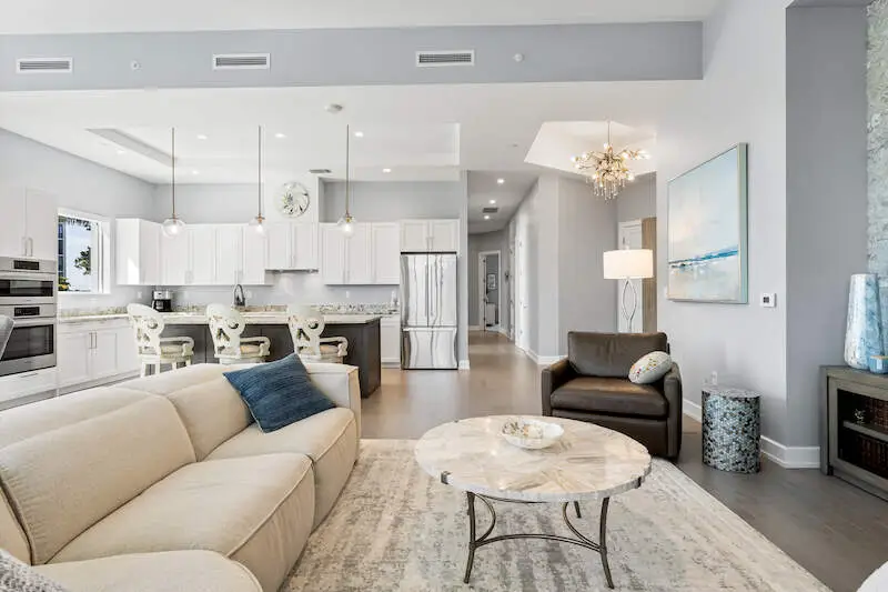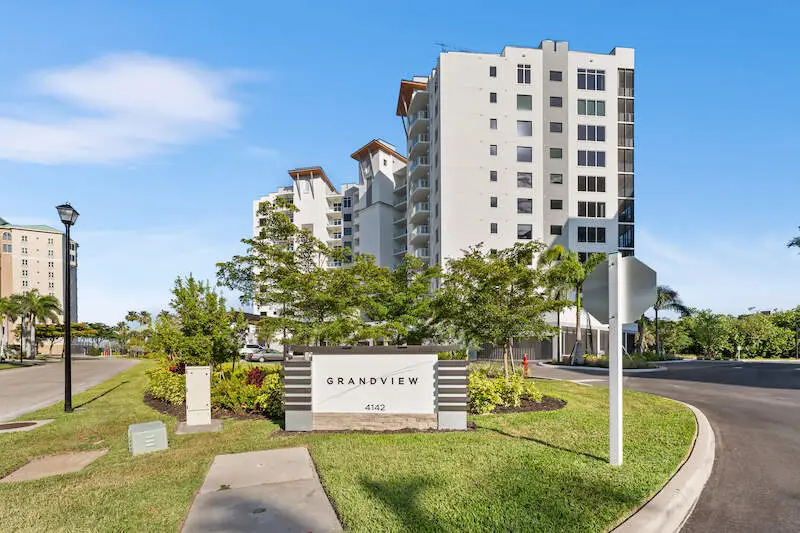 This is ONE-OF-A-KIND! This is the ONLY condo in the sought-after development of Grandview at Bay Beach with the wraparound lanai with 1,694 square feet of outdoor space! This lanai is so large it has its own zip code! The possibilities are endless with this space!!! This rare three bedroom plus den, 3.5 bath is being sold TURNKEY! There are only 58 condos in this exclusive high rise on Ft. Myers Beach. Boasting 2923 square feet of living area totaling 4,617 square feet with all of your outdoor space! There is no other condo like this one! 12-foot soaring ceilings! So much natural light spills in from every window! Newly installed electric sunshades throughout and of course, hurricane impact windows and sliders for piece of mind! Your culinary kitchen is outfitted with Bosch appliances, full island with granite countertops, two toned cabinetry, soft close doors and drawers, 42-inch custom cabinetry. Your living area has a stacked stone feature wall and awe inspiring custom lighting. All bedrooms have en suite full baths. Your open concept is perfect for entertaining large groups or intimate gatherings. Your master wing has an en suite bath with auto cabinet underlighting, walk-in shower with floor to ceiling tile, extended dual vanities with quartz countertops. Private water closet. Your two additional enjoyably sized bedrooms have full access to your outdoor lanai. 2nd bedroom has shower/tub combination while your 3rd bedroom has a walk-in shower with seamless glass enclosure. You office/den/reading/relaxing room has access to the enormous lanai as well. Carpet in all bedrooms. There are two guest suites that owners can secure for additional family or friends if needed. No need to find a hotel room on the island! First class luxury accommodations flow seamlessly in these fine guest suites. Be a part of Grandview at Bay Beach, on the Southern tip of Estero Island next to Lover's Key. Many amenities that are included are a community pool, hot tub, two BBQ grills, two firepits, yoga room, TRX, full athletic facility, Pickle Ball, Tennis, Bocce Ball, Deeded beach access, beach parking. There are future plans for a putting green in the park. There is a 60-foot boat slip in Waterside for a separate purchase. MLS #224034904. Walking distance to Santini Plaza and a quick drive off the south bridge to Lovers Key State Park, RSW international airport and Bonita/Naples for the best in shopping and dining that southwest Florida has to offer. Amazing video to watch!
