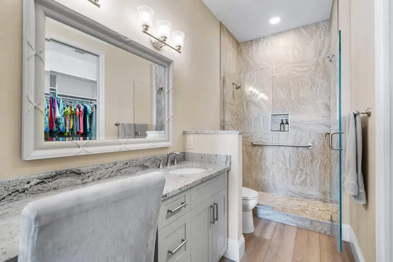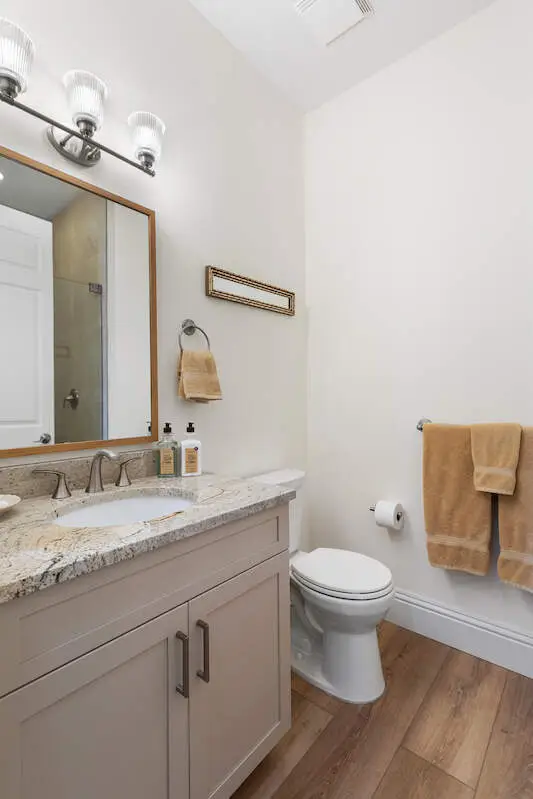• Freestanding tub and granite countertops in ensuite bathroom