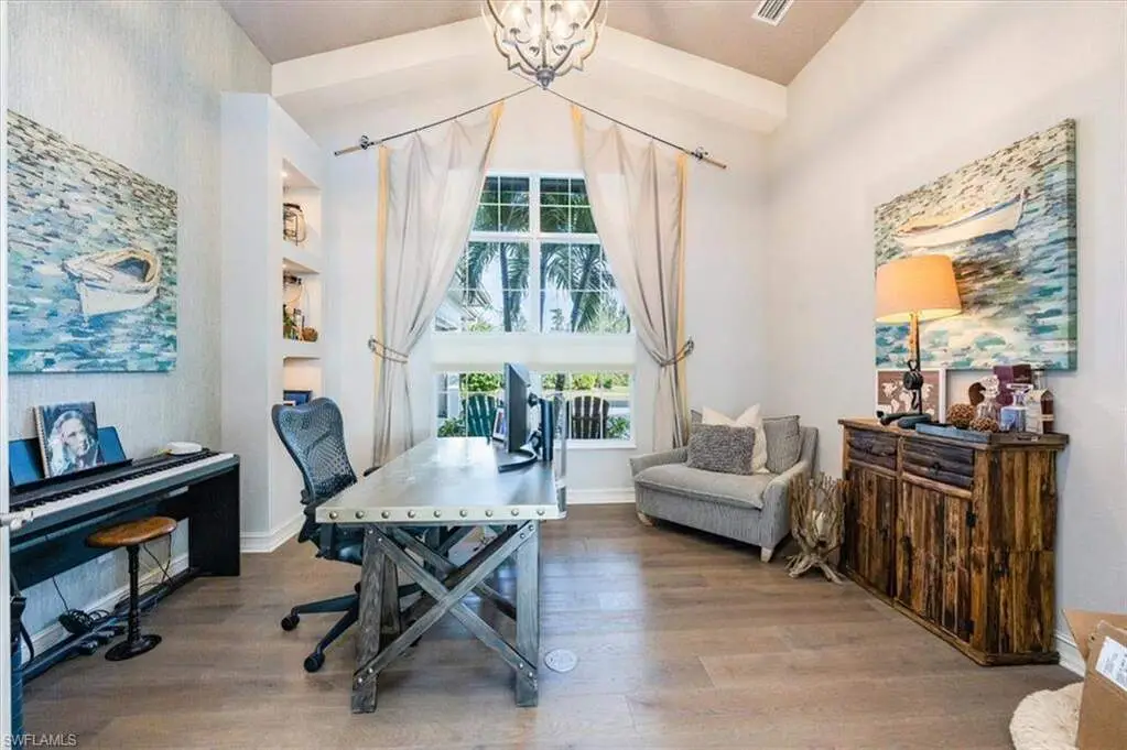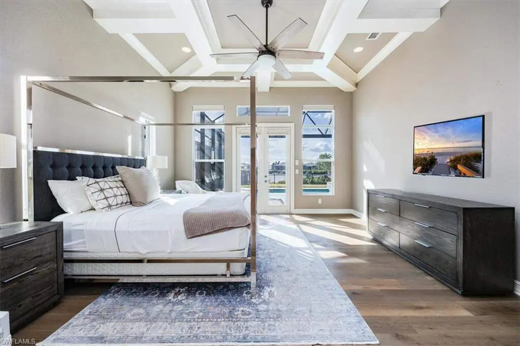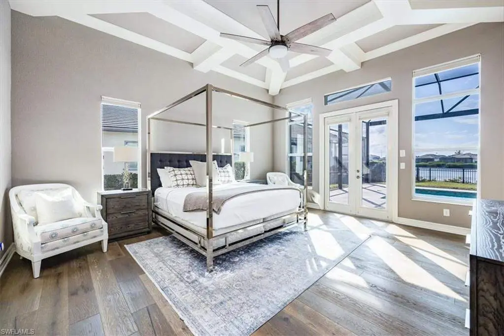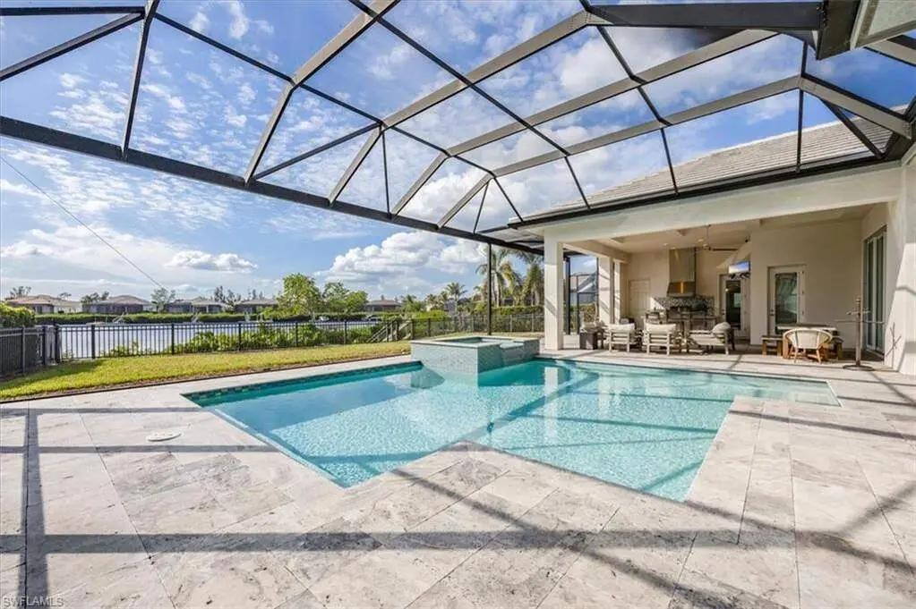 Exquisite Stock built Custom Home offers luxury and a delightful boaters paradise! With over 3650 square feet under air in this 4 bedroom plus den/flex, including a recent expansion of the owner's closet and bathroom adding over 500 square feet. Private boat dock included with direct access to the Gulf of Mexico in this unique SWFL community of only 76 homes. Graciously appointed, this remarkable home offers peace of mind with a whole home generator, hurricane impact windows and doors and a fenced backyard. Step through the double door entry to the welcoming and stunning foyer with beamed ceiling and wainscoting to set the ambiance of the home. With an amazing split floorplan, you and your guests/family will appreciate the privacy offered. The serene primary suite boasts 2 walk-in closets, and a beautifully coffered ceiling and leads into a tranquil primary bath complete with dual vanities, a make-up vanity, huge shower with multiple shower heads and a welcoming soaking tub. Create culinary masterpieces in this inspiring kitchen with natural gas and anchored by a huge island. The beverage center is super convenient, and the space opens to the generous Great Room with western exposure views over the lake. The outdoor living is spectacular, with plenty of ceilinged area for entertaining, a wet bar, outdoor kitchen and relaxing seating space overlooking the gorgeous custom pool with integrated spa. Hidden Harbor is one of the last new home communities South of Tampa Bay with Gulf access. There are not any boat size restrictions for vessels moored at Hidden Harbor's private boat slips and homeowners with boat docs have access to the Gulf of Mexico via the Ten Mile Canal and Estero Bay. The private harbor grants access to the Great Calusa Blueway Paddling Trail which meanders through the coastal waters for canoe and kayaking.