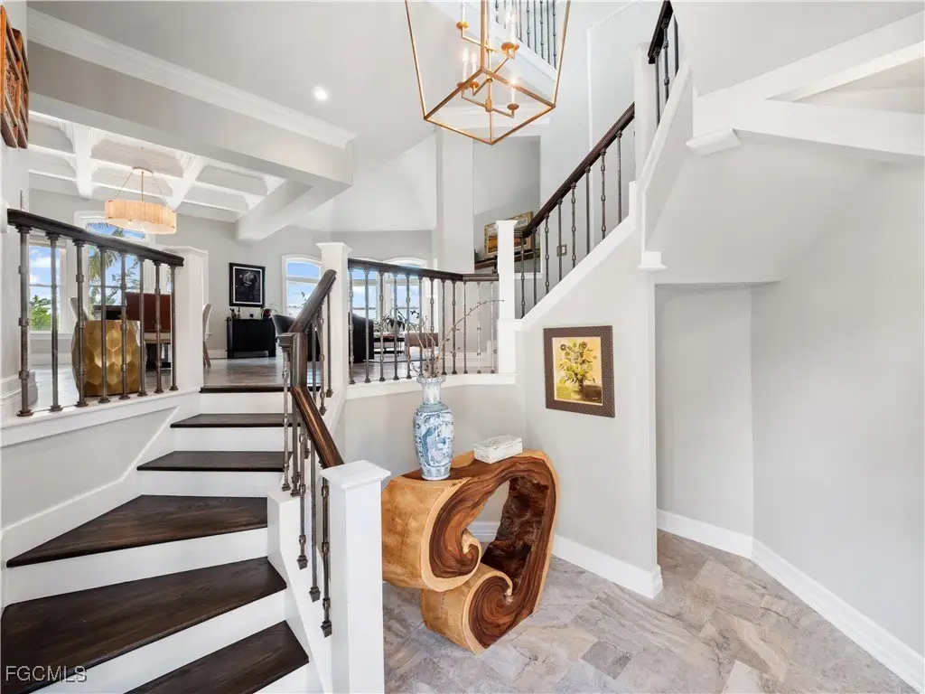 Welcome to St. Charles Harbour, one of Southwest Florida's most esteemed and prestigious gated yachting communities. This is more than a home; it's a signature Bud Lawrence Designed Home, known for authentic traditional and classical architecture. Perfectly positioned on an oversized corner lot, this stunning elevated residence ensures a high and dry sense of comfort along with a grand design that is truly inviting. Step inside to a breathtaking foyer with a sweeping staircase that sets the tone for the home's elegance. The main living area is warm and welcoming, filled with natural light and showcasing beautiful updates throughout. A chef's kitchen with high-end appliances makes entertaining effortless, while multiple living and dining spaces create the perfect setting for gatherings. Upstairs, the private owner's suite offers a peaceful retreat with serene views and a spacious layout. Guest suites are equally well-appointed, each with their own sense of comfort and style. This home easily converts into a 4 bedroom to accommodate more guests if needed. Enjoy the huge bonus space and recreation area downstairs on the lower level along with a 3 car garage. The outdoor living is nothing short of resort-worthy. A sparkling pool, expansive deck with a full outdoor kitchen and a sunken firepit lounge all overlook the pristine canal and preserve. Boating enthusiasts will appreciate the boating amenities with your own private dock with boat lift and covered canopy, dual floating jet ski docks with quick water access out to the bay and gulf waters. Additional highlights include impact windows and doors, new AC's, and a spacious multi-stall garage. St Charles Yacht Club offers a deep water full service marina to accommodate your larger boating needs, a club house with dining, community pool, tennis, bocce, shuffleboard and more. If you like to also play golf, St Charles Yacht Club enjoys an exclusive access to the adjacent Shell Point private Golf Course. Outside and just minutes away from St Charles Yacht Club you will enjoy the world renowned beaches of Sanibel & Captiva Island, fantastic dining and shopping amenities along with near by Hospital and schools. This home and community offers an exceptional value and experience for living the dream in SWFL.