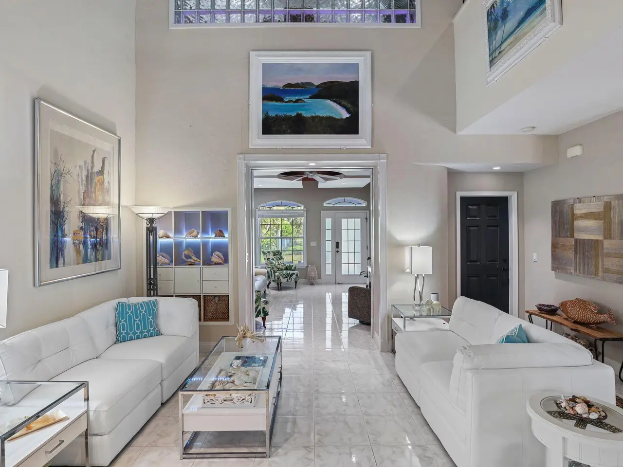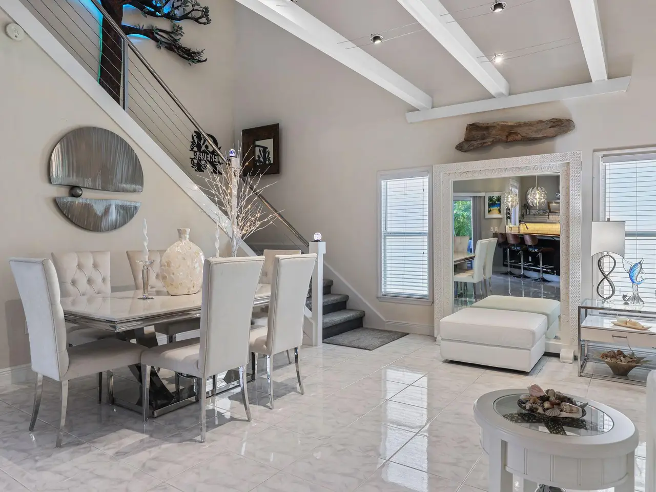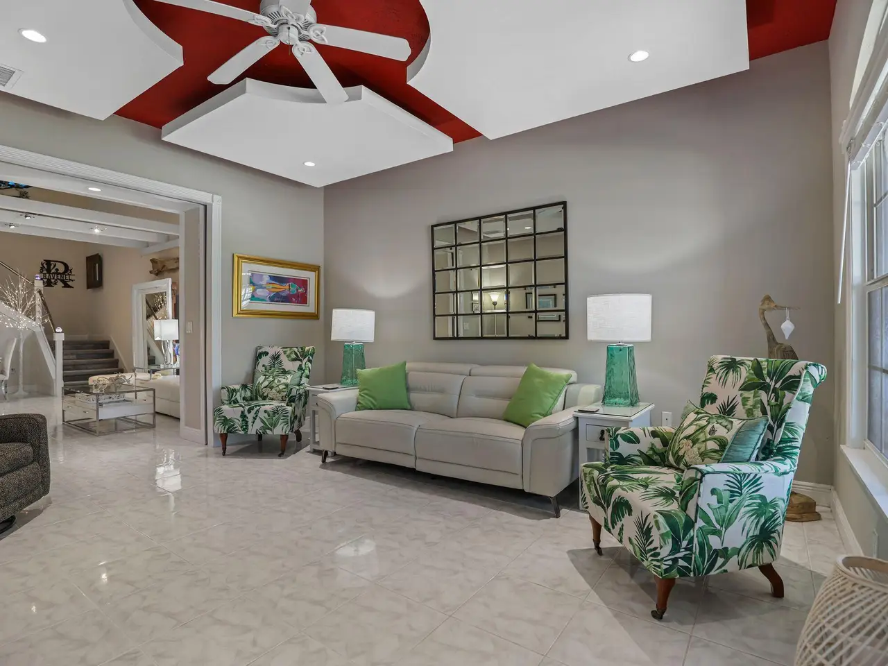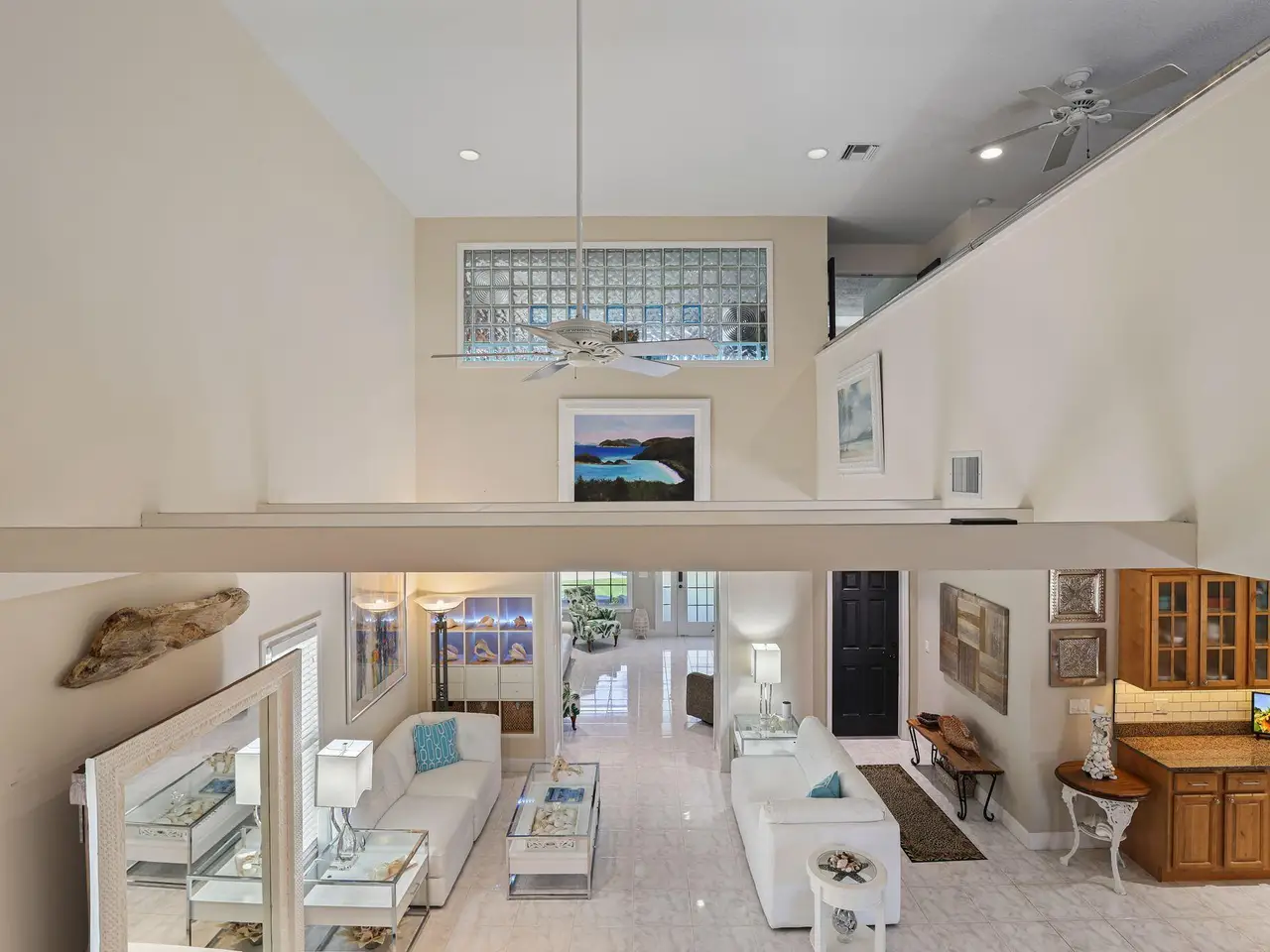 Great PRICE IMPROVEMENT. Best location just steps from the beach, restaurants, bars and the famous Fort Pierce Inlet. Unique Key West style home with 3 covered balconies, island views and custom smart features. Enter into a separate living area which opens into a large great room with soaring 20 ft ceilings. Two primary bedrooms, one downstairs with its own private en suite and a walk out to the tropical garden; one upstairs with its own separate living area, a private balcony that faces the ocean, huge walk-in closet and private en suite. Also upstairs, a guest bedroom w/ separate bath, and another large balcony that views the tropical backyard. Entertain friends in the open great room, kitchen and dining area. A chefs kitchen with oversized butlers pantry. All a block from the ocean!