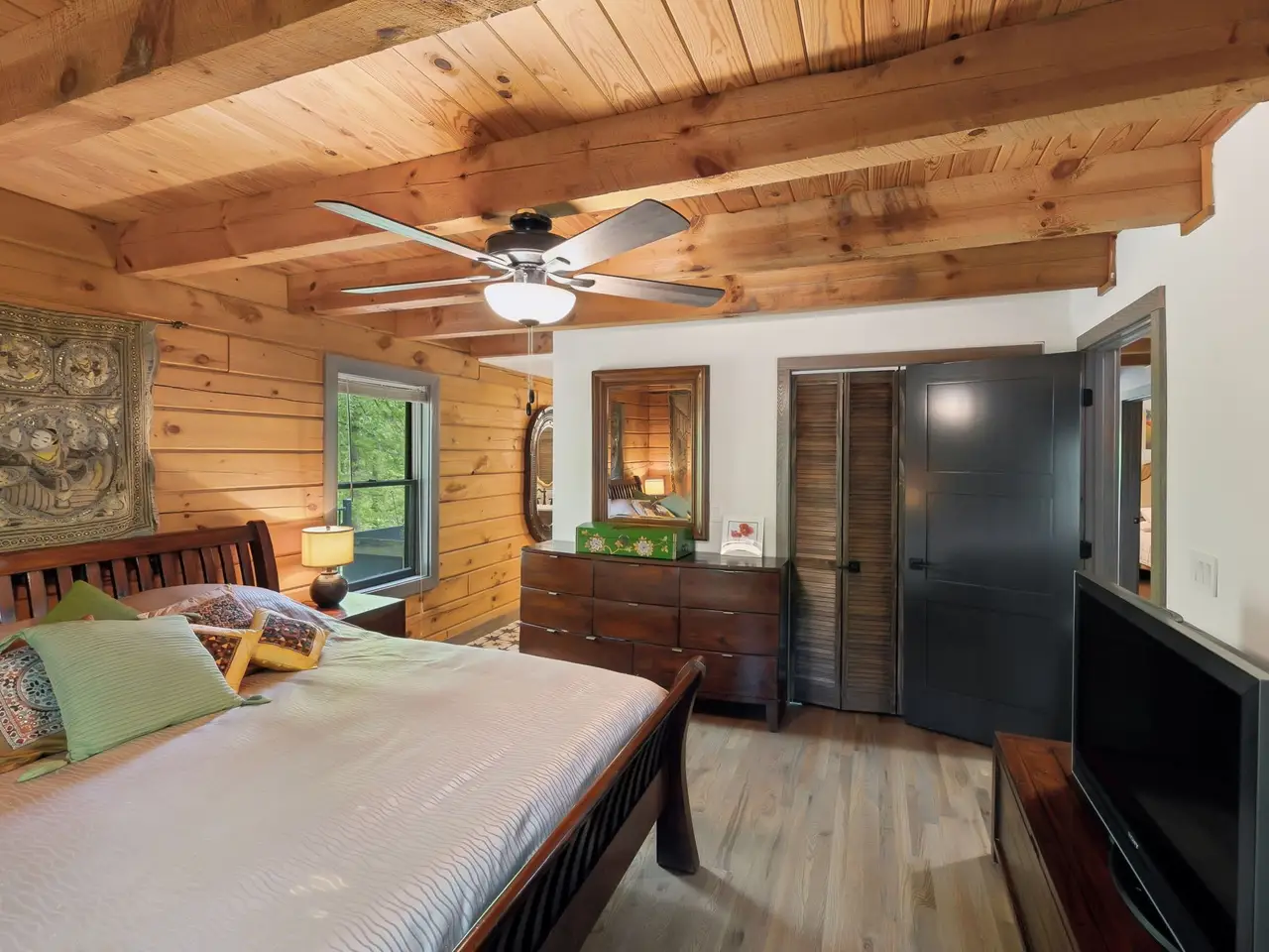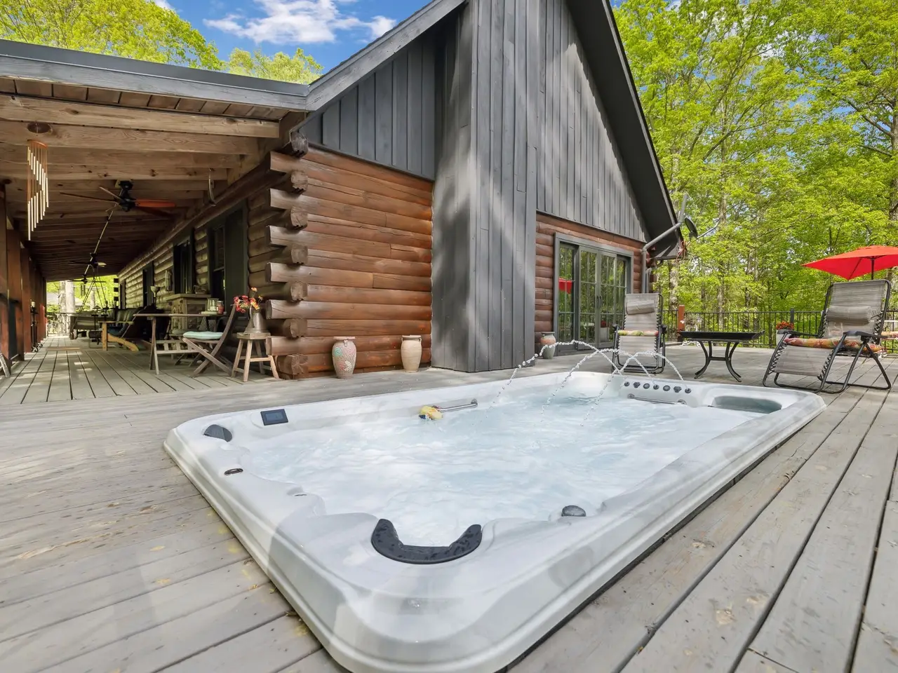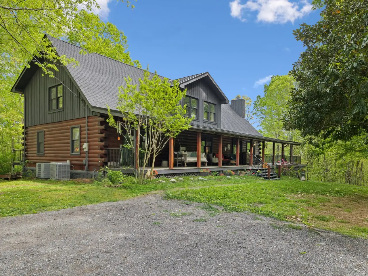 Incredible lake views!! Countryside serenity meets luxury living in this immaculately restored and fully renovated Leiper's Fork log home. Tucked into a coveted rural location in Middle Tennessee that rarely sees homes like this one hit the market, enjoy curated details and modern amenities built into a flowing masterpiece design that retains classic aesthetics and hand-selected vintage accents like salvaged barn wood and farmhouse fixtures. The main level features an open floor plan for shared moments with guests, plus bedrooms and full baths. Also enjoy a luxury chef's kitchen with all-new Dacor appliances, custom maple and oak cabinetry, quartz countertops, a cozy fireplace, oversized windows, and full-lite sliding doors that wash the home's interior in warm natural light. The upper level has inviting private accommodations with a work-from-home office & open flex space. The lower level boasts a fully finished suite with private entry, a full kitchen and bath, and a game room, perfect for weekend guest stays or separate living quarters. With primary suites and en suite baths on both the main and upper levels, options abound for the owners to choose their private sanctuary. Septic permitted for 3 bedrooms -- home includes additional flexible spaces that could be used as an office, bonus, or guest room. Outdoors, the almost 6-acre parcel at the end of a private drive on a shaded knoll features peaceful, wooded terrain and views of a 3-acre aquamarine lake, all of which can be enjoyed from the home's outdoor living amenities like the welcoming fire pit, 60ft of covered porch space, sun-kissed backyard deck, and relaxing spa pool. At 5 minutes to Leiper's Fork, 25 minutes to downtown Franklin, 45 minutes to downtown Nashville, and 50 minutes to BNA, your perfect country life awaits.