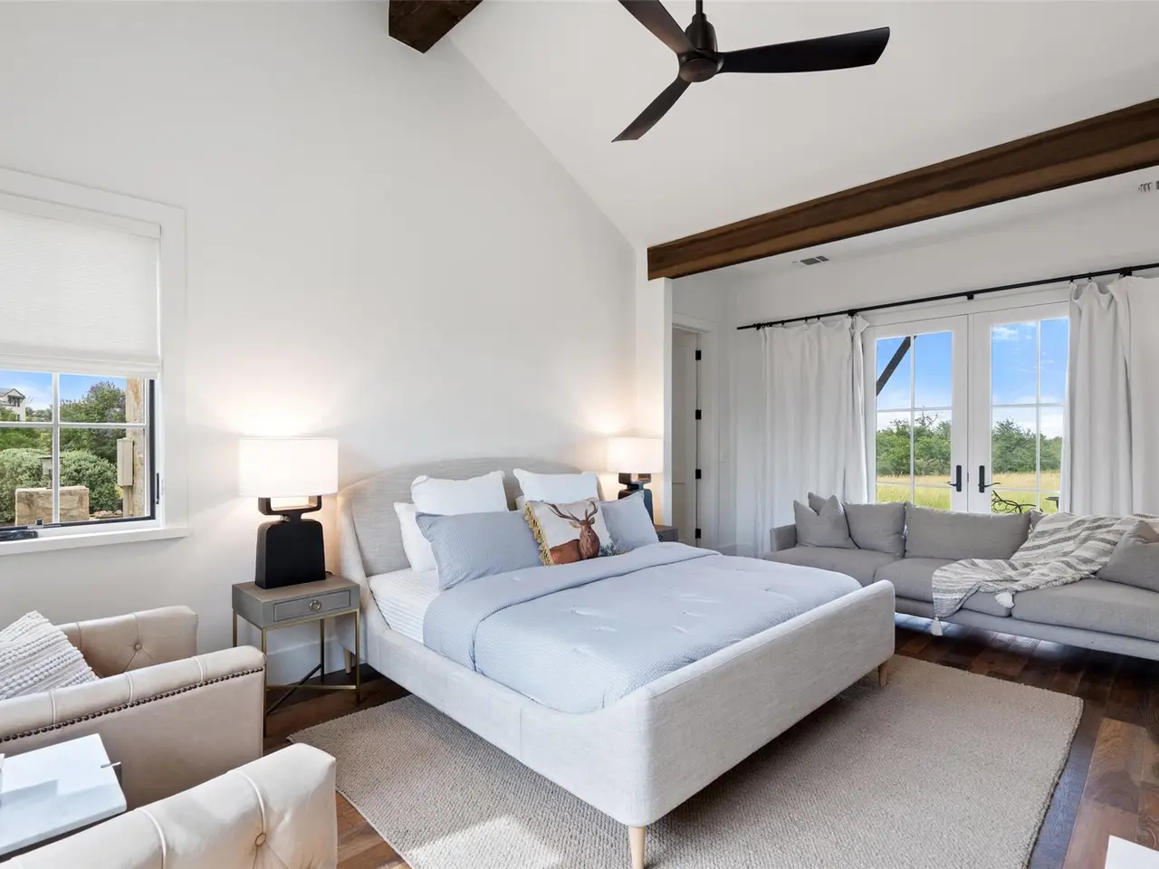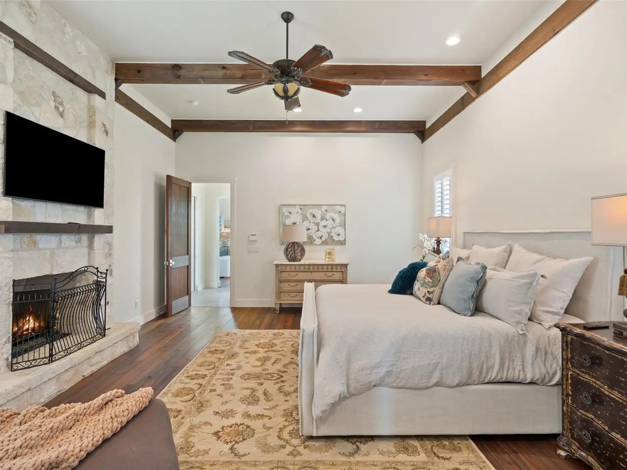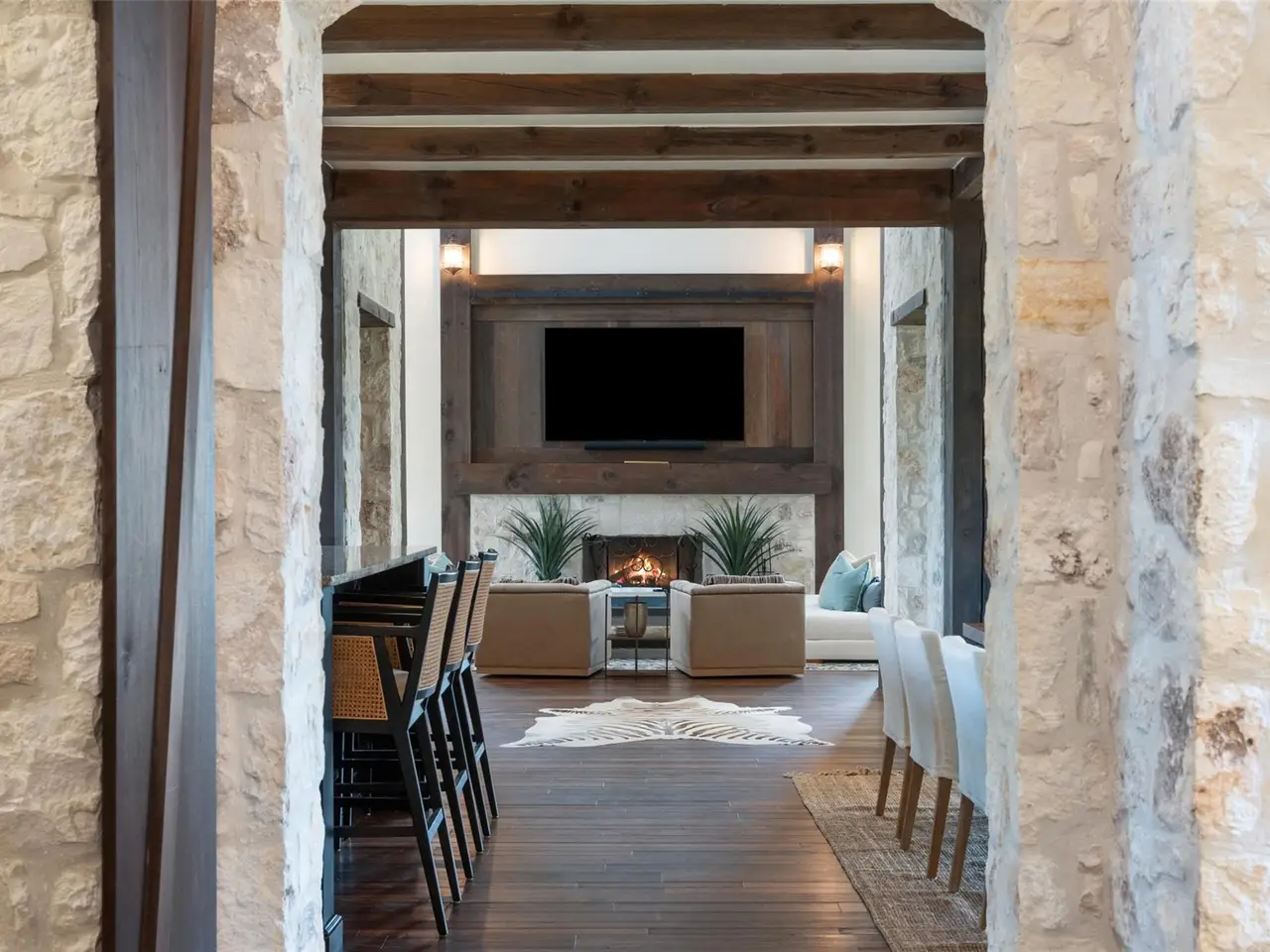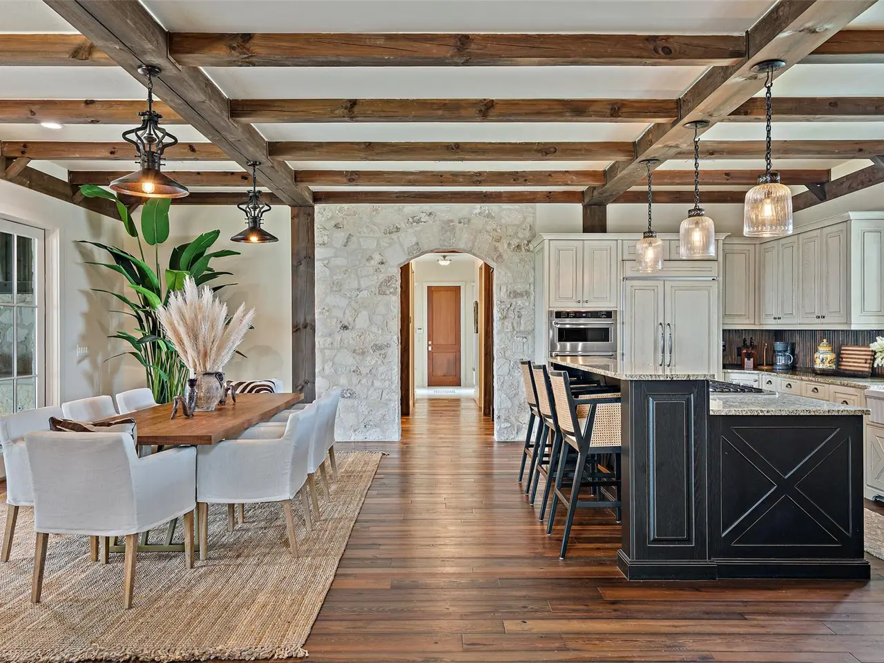 OPEN HOUSE ATTENDEES MUST REGISTER WITH AGENT! Discover the perfect blend of rustic charm and refined living in this expansive custom-built 6-bedroom, 6.5-bath, 5,637-square foot ranch-style retreat--featuring 3 private casitas, ideal for multigenerational living or hosting guests in style. Nestled in the heart of the Hill Country on 2.54 acres, this serene property offers comfort, flair, and Texas hospitality. Inside, you'll find a beautifully crafted interior that brings the outdoors in, with rich wood beams, interior limestone walls, custom cabinetry, and hand-selected moldings throughout. The great room impresses with soaring ceilings, abundant natural light from large windows, and one of the home's five wood-burning fireplaces. The kitchen is a chef's dream, featuring granite countertops, a 6-burner stove, and a wet bar perfect for entertaining. Bar top seating along with a formal dining area, a walk in pantry and generously sized laundry room complete the space. The property's two spacious indoor living areas offer plenty of room to relax or host, while plantation shutters and hardwood floors from a distillery add timeless charm and privacy. The owner's retreat is a true sanctuary, featuring its own fireplace and thoughtful upgrades throughout. Whether you're looking for a private getaway, or a place to host family and friends, this home offers it all--luxury, warmth, and tranquility. Step outside to expansive outdoor living spaces, where multiple patios invite dining, lounging, and entertaining under the Texas sky. Enjoy peaceful views from the covered patio or gather around one of the fireplaces for a cozy evening under the stars. Boot Ranch is a private, gated community spanning 2,080 acres, featuring a top-tier golf club, three heated pools, a pavilion with a bar and grill, tennis courts, pickleball, basketball, a fitness center, Longhorn Lake, a shooting range, bike trails, and a market center--all just 4 miles from the nearest grocery store.
