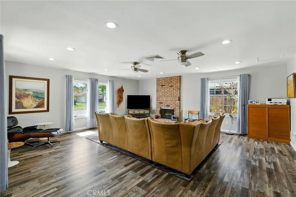 Welcome to this picture-perfect, fully remodeled single-family home nestled in a desirable Fullerton neighborhood. From the moment you arrive, you'll be charmed by the inviting curb appeal, featuring new exterior paint. Step inside and be wowed by the seamless flow of new luxury vinyl plank (LVP) flooring throughout the open-concept living space. The beautifully updated kitchen boasts modern amenities, including stainless steel appliances, quartz countertops, and a striking backsplash. The large Living Room boasts lots of windows allowing in an abundance of natural light and a brick fireplace, The family room is off the back of the house and has backyard access to your private patio area. It is currently being used as a fourth bedroom. Both bathrooms have been thoughtfully upgraded with contemporary finishes that match the home's cohesive design. Additional highlights include an indoor laundry room with cabinet space, two wood-burning fireplaces, built-in closet organizers in every bedroom, a new electrical panel, ceiling fans, new doors, and fresh interior paint throughout. This home is move-in ready and waiting for you! At this price it won't last long in the current market place.