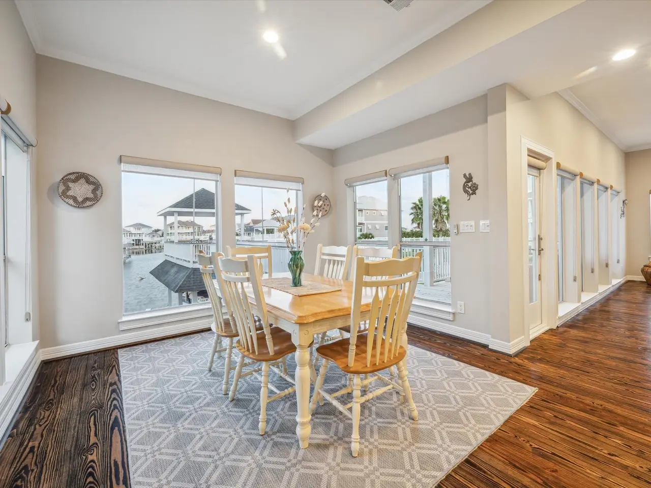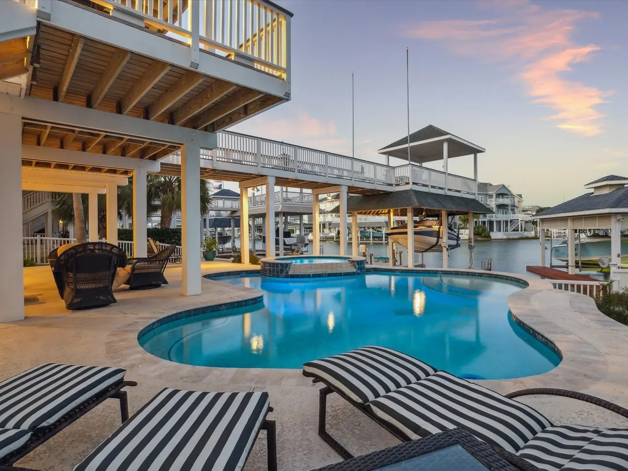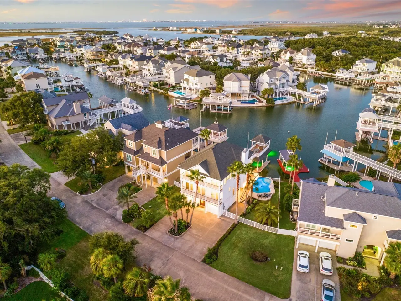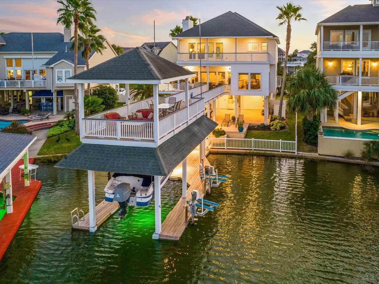 Welcome to your dream retreat in prestigious Laffites Cove, Galveston, where luxury meets coastal living. This beautifully updated home on a wide oxbow offers breathtaking views & southerly breezes, w/glimpses of Galveston Bay. Inside, 1” solid hardwood floors flow throughout spacious open plan, featuring 4 generous bedrooms, each w/its own ensuite bath, ensuring comfort & privacy. The gourmet kitchen is perfect for culinary enthusiasts, while the outdoor oasis including pool & spa invites relaxation & entertaining amidst beautifully landscaped grounds. Elevator capable to all 3 floors. This prime location is at the highest elevation in Laffites “The Ridge”. Located near the Galveston Country Club w/all its amenities & a golf cart ride to Pirates popular beaches, this exquisite property is the perfect blend of elegance & coastal charm. Social membership to Galveston Country Club transfers w/property. Don’t miss your chance to call this luxurious home your own! All info per Seller.