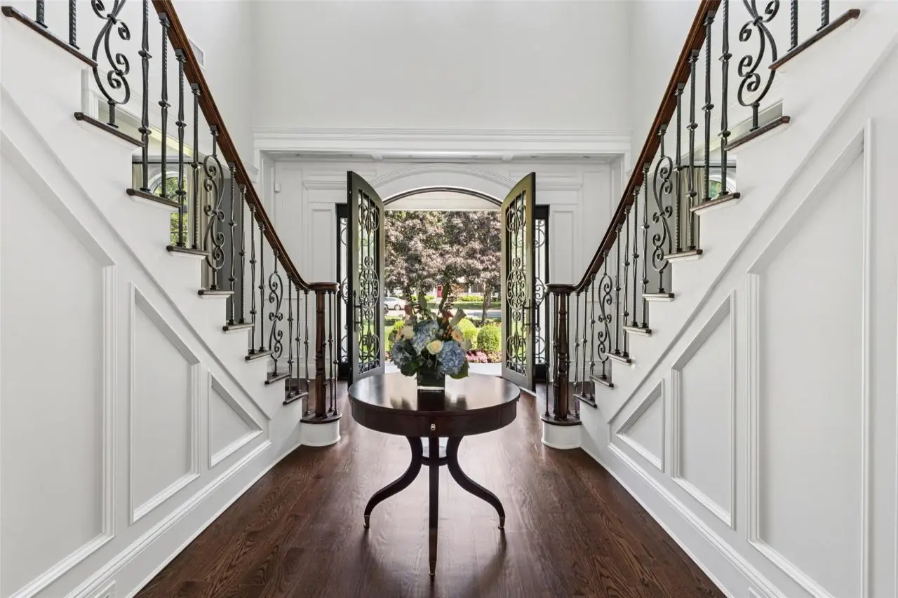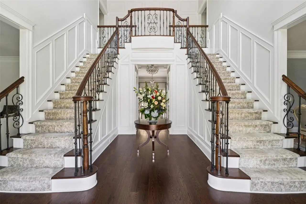Two-story foyer with double staircase