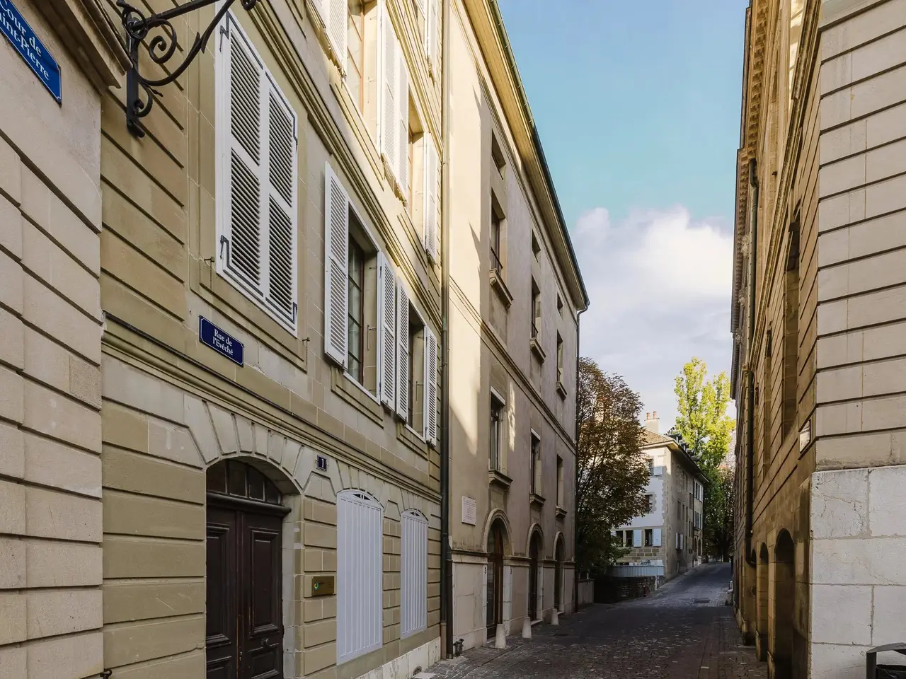 In the heart of Geneva's Old Town, just a stone's throw from the majestic Cathédrale Saint-Pierre, nestles a duplex apartment of singular charm. More than just a place to live, it embodies a fragment of Geneva's history, as the building once housed the Cour Saint-Pierre theater between 1825 and 1973. Now perfectly maintained, it combines heritage with contemporary comfort. Renovated in 2019 with selected materials and elegant finishes, this rare property offers 143 m² of living space over two levels. From the moment you enter, the apartment captivates with its generous volumes, high ceilings and luminosity, amplified by numerous openings in the roof. The first level is organized around a vast living room, with views over the rooftops of the Old Town, Lake Geneva and the spires of the Cathedral. The adjoining dining room, warm and inviting, flows into a modern, fully-equipped kitchen, designed to combine aesthetics and functionality. A bedroom and shower room with laundry area elegantly complete this level. The upper floor reveals two light-filled bedrooms and a shower room, offering intimate, comfortable spaces. Each room exudes a peaceful atmosphere, enhanced by the subtle marriage of historic cachet and recent renovation. In addition, two combined cellars provide ample storage space, while the building boasts two elevators, a garbage room and a shared laundry room, for everyday convenience. With its breathtaking views of the Cathedral and the lake, its prestigious past and its cozy atmosphere in the heart of a neighborhood steeped in history, this unique duplex is the perfect embodiment of Geneva's art of living, combining timeless elegance with discreet modernity.