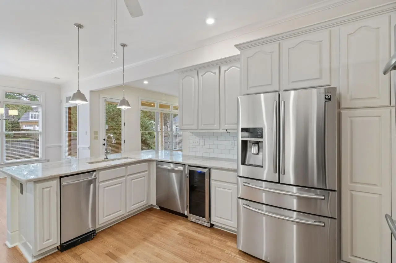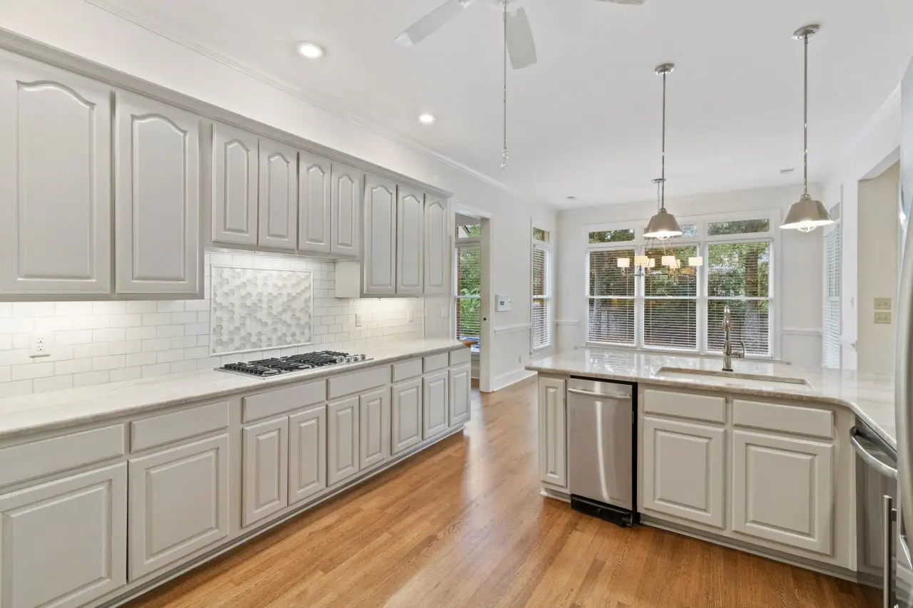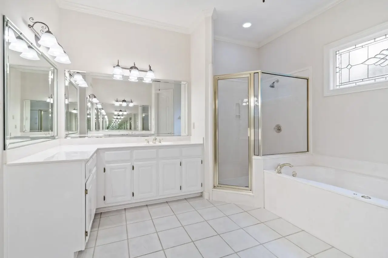 Stunning 5BR home in sought after Bedford Plantation that perfectly blends classic elegance with modern comfort. Primary suites both up and down. A gorgeous main-level office w/custom built-in bookshelves, a formal LR and a separate spacious hearth room, each featuring its own cozy fireplace. The formal DR is ideal for entertaining, while the light-filled breakfast room offers the perfect spot for morning coffee. Plus a large bonus room with closets that can serve as a playroom or media room. Thoughtful details: Smooth 10' ceilings down and 9 up. 3rd garage bay is heated and cooled, front and rear stairs, lg computer nook landing up, covered back patio, circular drive, fresh paint, new carpet, quartzite countertops, stainless appliances, beautiful backsplash, 5 burner cooktop/dbl oven, wood floors and spacious attic.