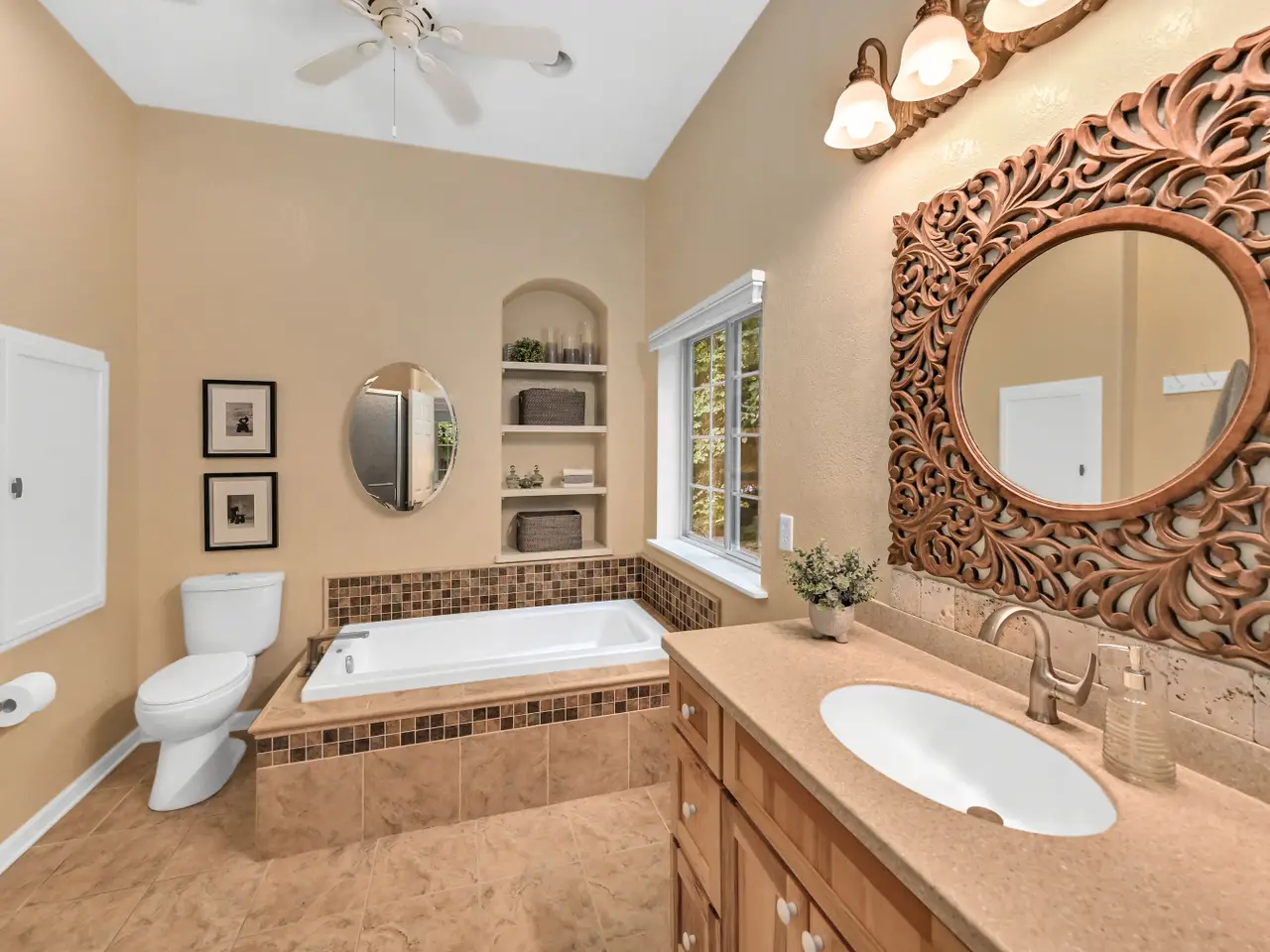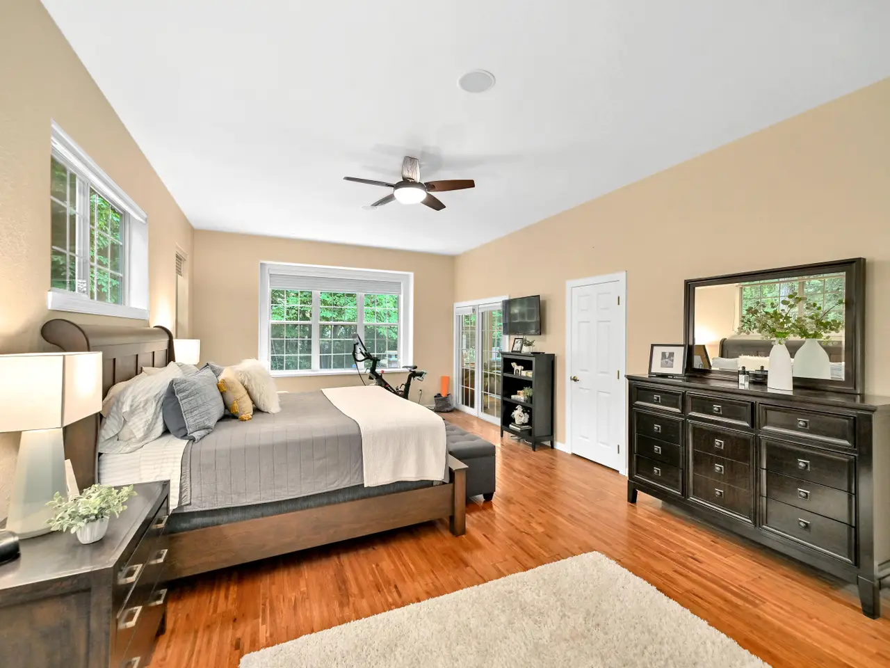 Welcome to Tree Tops! This impressive home will have you at hello. Step inside to soaring ceilings and an open layout that seamlessly connects the great room, dining area, and kitchen, perfect for everyday living or entertaining a crowd. Walls of windows fill the home with natural light and frame views of the private, wooded lot. Retreat to the expansive patio for outdoor dining, fireside chats, or simply soaking in the serene setting. Luxurious primary suite, plus two more spacious bedrooms and split entry second bath on main level. Half bath and large laundry room also on main. Fourth bedroom and third bath found in finished lower level, along with a large family room with bar, wine room, library with secret room, plus plenty of storage space. Enjoy the subdivision park and the convenient location, close to shopping and restaurants. Long list of updates too. Truly an exceptional opportunity.