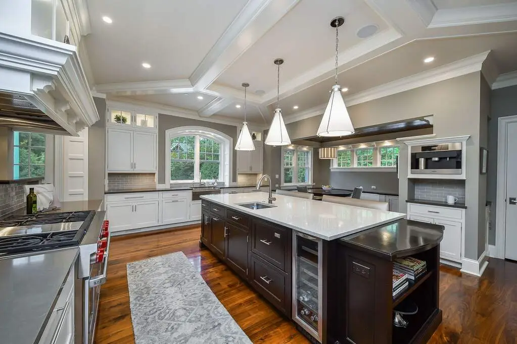 Introducing one of Glen Ellyn's most beautiful homes by the renowned Gits Home Builders, this above-grade Hamptons-style residence offers approximately 7,112 square feet of living space on over a third of an acre, where exquisite architectural details and timeless millwork set the tone for refined luxury. Designed for beauty, privacy, and practicality, this custom-built home blends state-of-the-art design with an inviting warmth that makes it truly extraordinary. The heart of the home is the oversized chef's kitchen featuring premium appliances including Wolf and Sub-Zero, custom cabinetry, and a large quartz island, seamlessly flowing into the grand family room-perfect for lively gatherings or quiet evenings. A charming dining room, complete with French doors opening to the side patio and a sparkling chandelier, sets the stage for elegant entertaining, while the stylish formal living room opens to a third patio with space for hosting guests outdoors. Upstairs, the primary suite is a private sanctuary with soaring ceilings, a spa-like en-suite bath featuring a standing tub, steam shower, and dual vanities, a custom oversized walk-in closet, and balcony. Three additional spacious bedrooms, all with radiant heated bedroom floors and luxurious baths, ensure comfort for family and guests alike. The beautifully finished third floor offers a spacious living area, wet bar with Sub-Zero beverage fridge, full bath, and custom office. The finished deep-pour basement is designed for entertaining with a full wet bar, wine cellar, media space, game areas, workout room, private guest suite, and ceiling height ideal for adding a golf simulator. Outdoor living is equally enchanting, with a secluded patio perfect for morning coffee, a hot tub for evening relaxation, and generous space for gatherings. There are 3 patios to choose from. Completing this masterpiece is a large three-car garage with room for storage, leading to a thoughtful mudroom and laundry combination. This rare opportunity in Glen Ellyn offers effortless living in a coveted location.