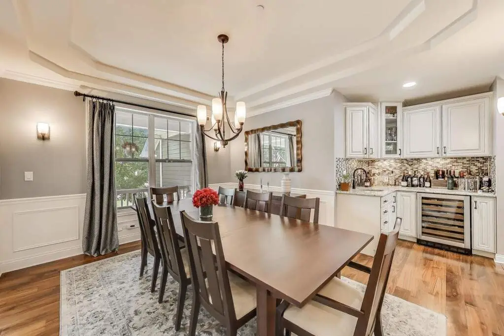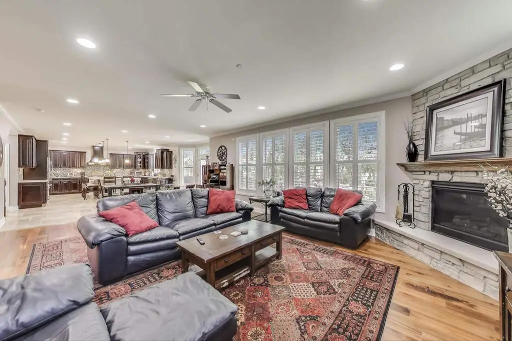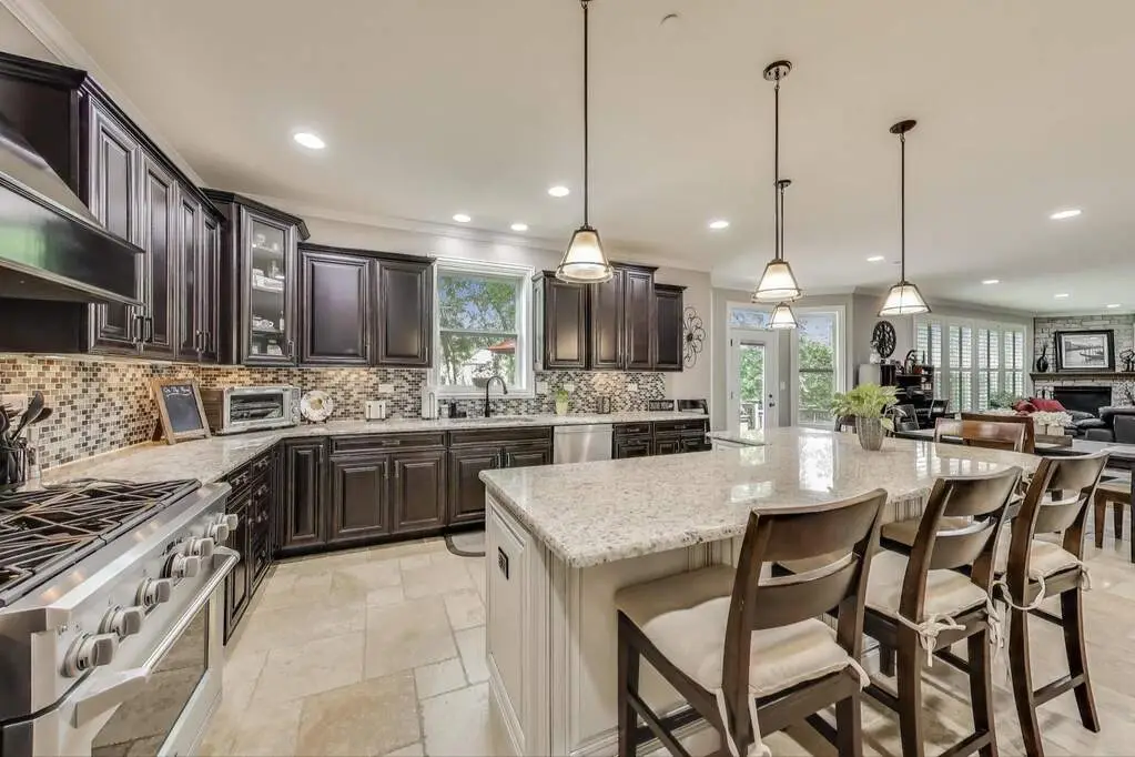 East Coast elegance meets Midwestern charm in this beautifully crafted shingle-style residence, ideally located just blocks from vibrant downtown amenities-including restaurants, boutique shops, the train, and top-rated schools. This one owner home, built in 2014, 5,700 sq.ft approx. was thoughtfully designed for modern living, featuring an open-concept main floor and a spacious backyard ideal for entertaining. From the inviting front porch to the moment you step through the front door, you'll be struck by the attention to architectural detail throughout. The heart of the home is a stunning family room anchored by a stone fireplace, seamlessly flowing into the kitchen and dining area. Expansive windows throughout flood the interior with natural light, creating a warm and welcoming atmosphere. Upstairs, the second level offers generously sized bedrooms, each with excellent closet space and access to multiple bathrooms and a well appointed laundry room. The luxurious primary suite is tucked away in its own private wing and features two walk-in closets, and a spa-inspired bathroom. The fully finished lower level is equally impressive, offering a custom wet bar, stylish ambient lighting, a fifth bedroom, and abundant storage. Step outside to a beautifully landscaped backyard complete with a deck and slate patio-perfect for outdoor gatherings. Additional highlights include an attached three-car garage with a fourth tandem space, offering ample room for vehicles and storage. This exceptional home combines timeless style, modern comforts, and a highly desirable location. A must-see property for discerning buyers.