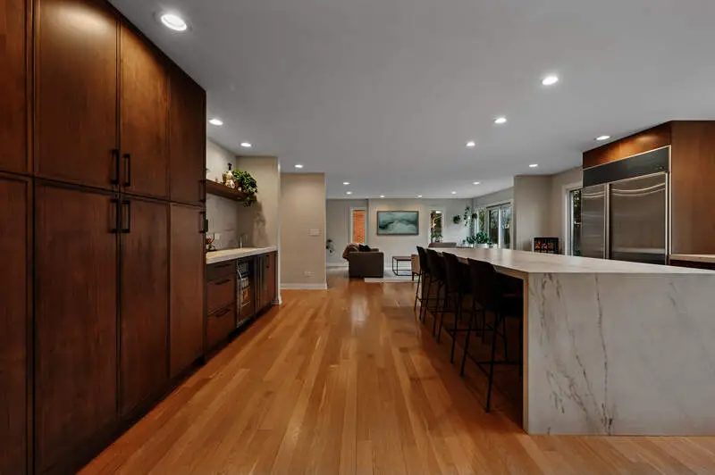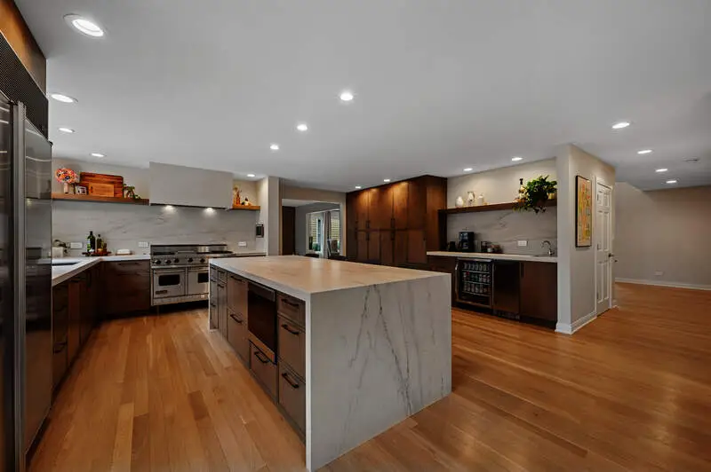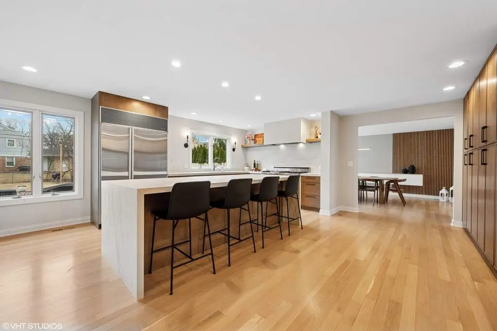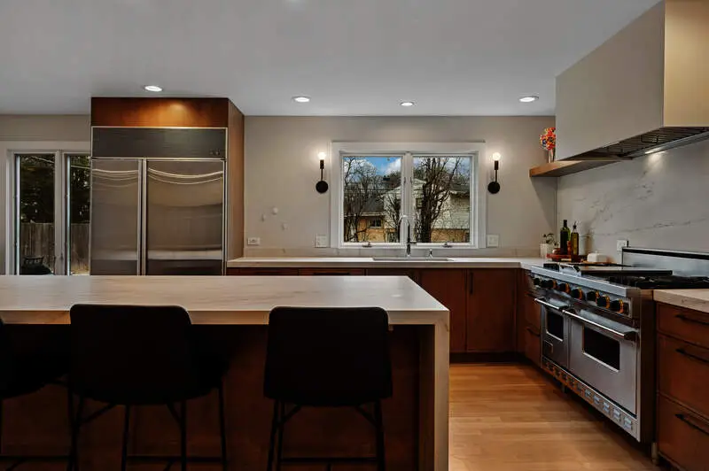 Walk your kids to school and the beautiful Avoca Park playground next door! The interior of this home is infused with gorgeous natural light and a masterfully crafted flow. A spectacular custom kitchen to accommodate any chef, with a large waterfall island, Viking stove, Sub-Zero refrigerator and wet bar. Oversized dining room made for special gatherings and holidays. The picturesque living room is surrounded by vaulted ceilings and a cozy wood burning fireplace. The second floor features four bedrooms and three full bathrooms, a custom laundry room with two washer and dryers that makes laundry a breeze in half the time. Also a large bonus room with skylights that can be used as a playroom, gym, or guest room. Open the double doors to a large primary bedroom on a separate wing of the upper level, with two walk-in closets, spa-like bathroom with dual sinks, stand up shower and jacuzzi tub. The finished basement is almost 2,300 square feet with access to the backyard and an additional fireplace to unwind. Plenty of storage areas including a walk-in cedar closet as well as a shelved area spanning the length of the lower level. Get creative in a current music studio that can easily be used as another office or bedroom. The large, fenced-in yard is professionally landscaped with blooming perennials that highlight the beauty of this outdoor space. Gather your loved ones and friends as you venture out on the brick patio, with plenty of space for entertaining or enjoying a quiet evening in the backyard of this tranquil East Glenview neighborhood home. Take a stroll or bike to the Harms Woods Forest trail just minutes away. With easy access to the highway, Old Orchard mall, Wilmette Recreation Center and more, don't miss an opportunity to own this one-of-a-kind home in the New Trier School district, contact your agent and schedule a showing today!