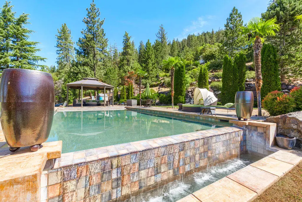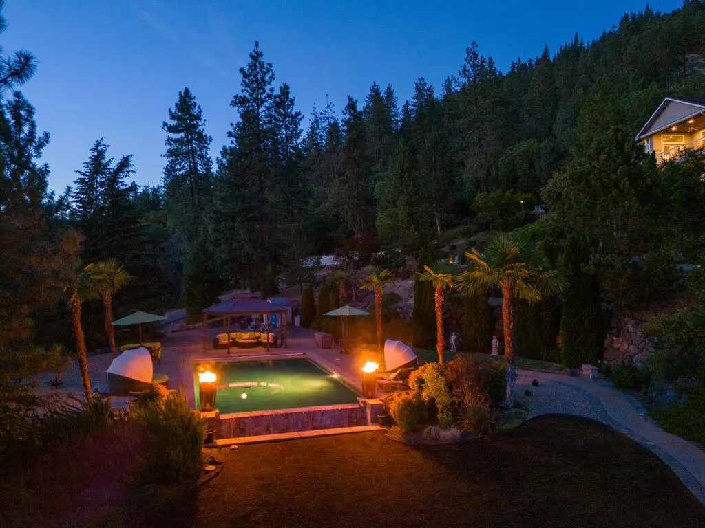 Welcome to Granite Hills Estate. Truly exceptional property. 20 Acres back to BLM & County land, Paved driveway w/gated entry, water feature & year-round spring fed pond w/a dock & Bass fishing. Gorgeous landscaping w/ lighted pathways. 4 Bdrm, 4 bath, Office/Library w/built-ins, 6400 SQ Ft, 3 Car Garage w/Portico. Grand entry, lg vaulted ceilings, floor to ceiling windows to take in the stunning views of Mts & City lights. Lg kitchen w/island, main floor primary suite w/spa like bath, door to private deck w/hot tub w/skylight & views. Good size bdrms, lg pantry. Downstairs w/10' ceilings, French Doors to covered patios, lg family rm w/fireplace, lg bar & entertaining area w/mini kitchen, Guest quarters w/kitchenette, bedroom, living rm & door to patio. Infinity Pebble Tec heated pool, lg pavers patio w/Gazebo & fire torches. 5600 SQ FT detached Shop w/RV storage w/dump, water & electricity, office space, 1/2 bath, 4 Car carport. Country living close to town!