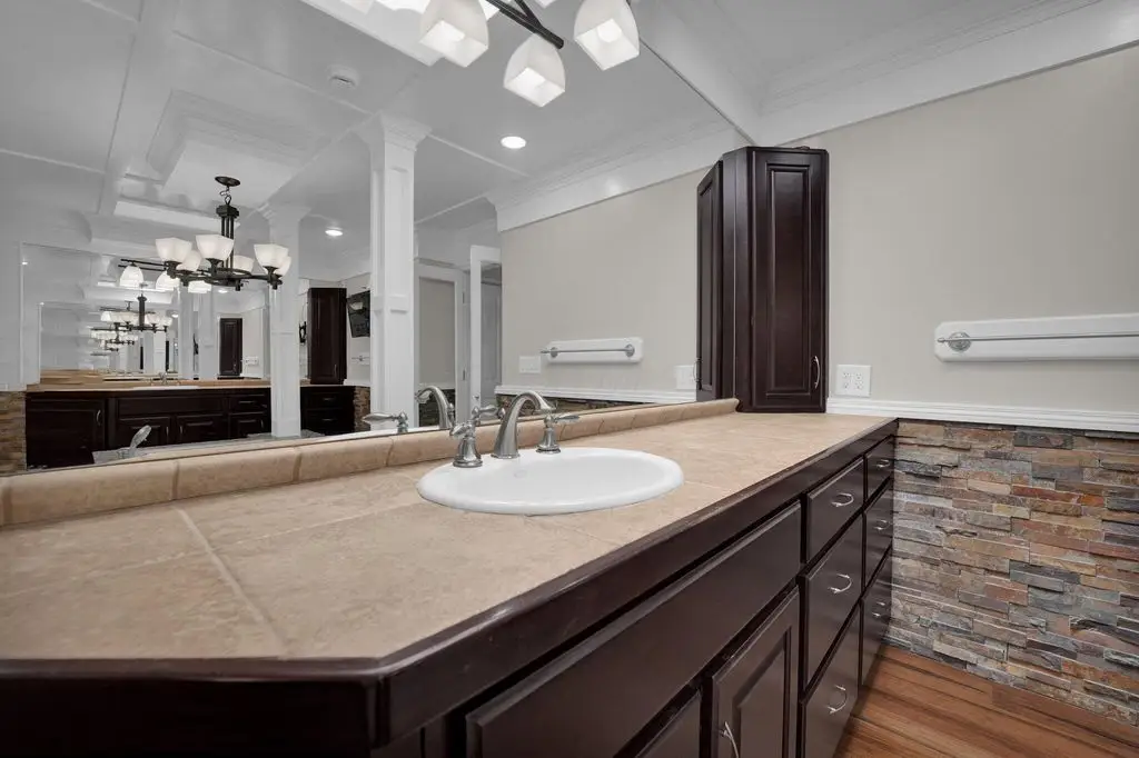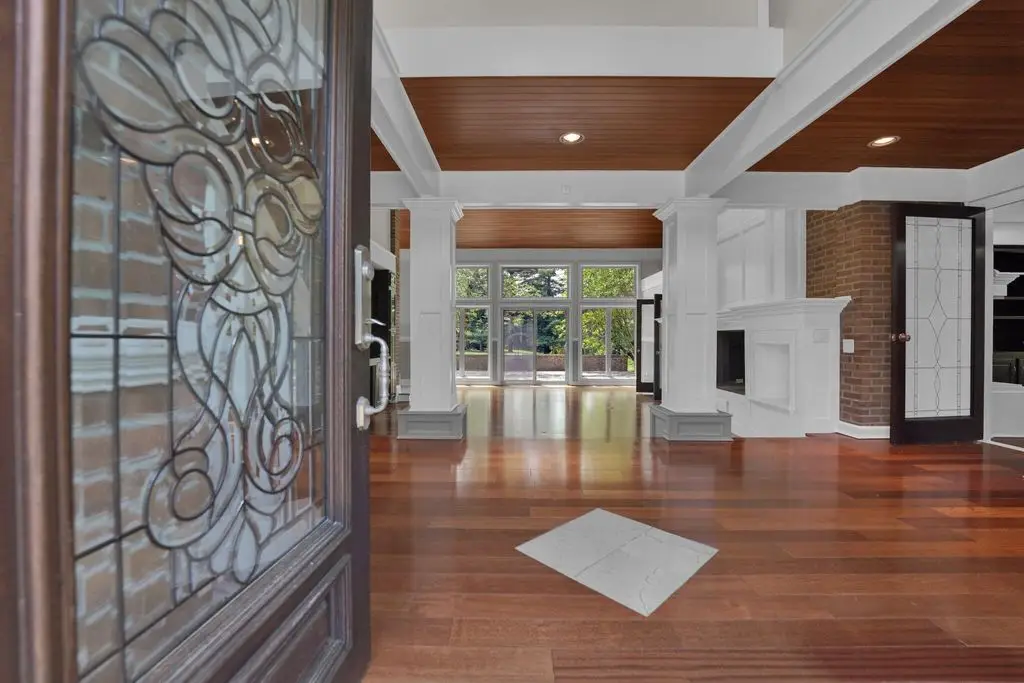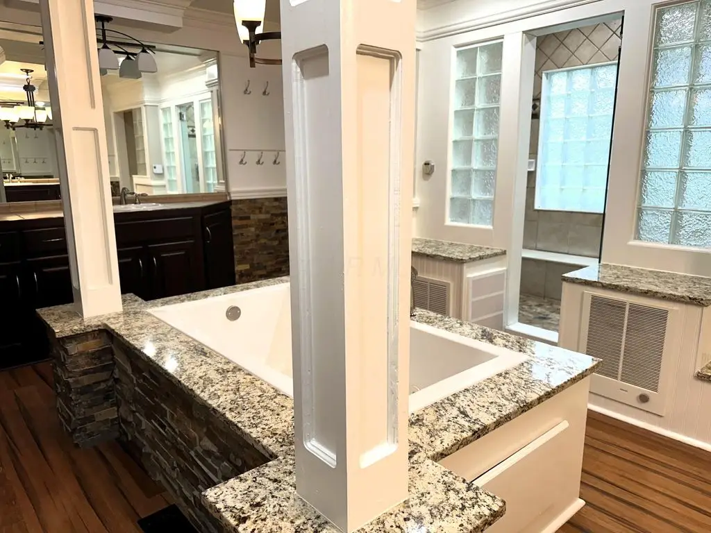 Situated on 2 picturesque acres on a cul-de-sac within the sought-after Highlands of Erinwood neighborhood, this stunning custom-built home offers a perfect blend of luxury, privacy, and timeless design. A circular driveway leads to the elegant beveled-glass mahogany entry door and into a welcoming 2-story foyer with beautiful 6' Brazilian Cherry hardwood floors and light-filled living areas, with abundant windows and skylights throughout. The heart of the home is the impressive great room, highlighted by a dramatic tongue-and-groove wood ceiling, a striking fireplace, and custom built-ins. The chef's kitchen combines form and function with granite countertops, a generous island, upscale appliances, and extensive cabinetry - seamlessly flowing into the dining and great rooms for easy entertaining. A main-level den features a fireplace, custom built-ins, and classic wainscoting, while the cozy family room with a new 110' TV offers the perfect retreat. The large mudroom/laundry area provides exceptional workspace and organization. The outstanding primary bedroom that is highlighted by an electric fireplace, is a true retreat, showcasing a beautifully renovated bath with dual granite vanities & dual commodes, a spa-like shower with steam & auxiliary heat, and a jetted tub with a granite deck & ledge. Two spacious bedrooms share a Jack- and-Jill bath, while a fourth bedroom enjoys an en-suite bath. Outdoor living includes two patios - ideal for relaxing or hosting guests. Additional highlights include freshly painted rooms, new carpet, deep 3-car garage, commercial grade tankless hot water heater with a recirculating line, water filtration system, gorgeous trim and woodwork, abundant closet space, and a partially finished lower level offering flexible living and storage options. Located in the Granville School District, this exceptional home is a rare opportunity offering quality, comfort, and space at every turn.