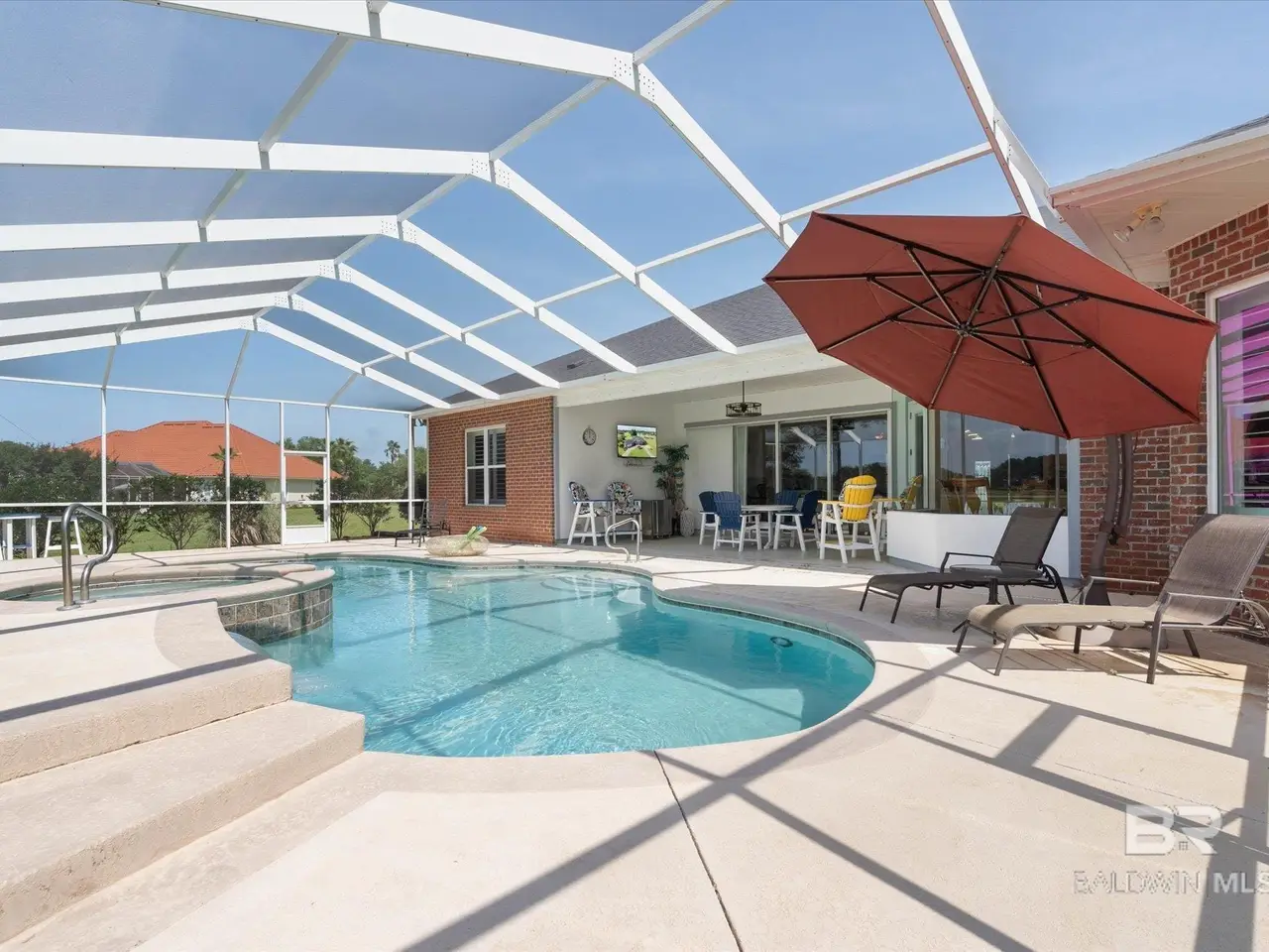 Understated elegance with a hint of modern accents is reflected in this home in the verdant golf community of Craft Farms in Gulf Shores, AL. Located in Cypress Bend Village off the 10th hole, the home showcases high ceilings, plantation shutters throughout, tile flooring, a separate formal dining room, and a large living room with a gas-burning fireplace. The kitchen offers newer quartz countertops and stainless-steel appliances that will make cooking and entertaining a dream. The primary bedroom and bath in the east wing of the house are both spacious and will easily accommodate all your needs; and the walk-in closets offer plenty of storage solutions. If work is what you require then retreat to the den/office through the beautiful French doors that also allow an easy view of the open living area. The additional bedrooms situated in the west wing of the home, will also provide additional space for you and your family. This home also includes a fully screened-in lanai, salt water pool and jacuzzi, and a water view that will please your senses. If you are an avid golfer then the garage was built with you in mind. Enjoy easy access to the top-rated golf courses with a separate golf cart entrance at the rear of the garage. The roof that was updated in 2020, and the AC's installed in 2019. The home is sold unfurnished and the mini fridge and ice maker will not convey. All measurements and dimensions are an approximation. Information deemed important to be verified by Buyer and Buyers Agentduring due diligence. Buyer to verify all information during due diligence Buyer to verify all information during due diligence.