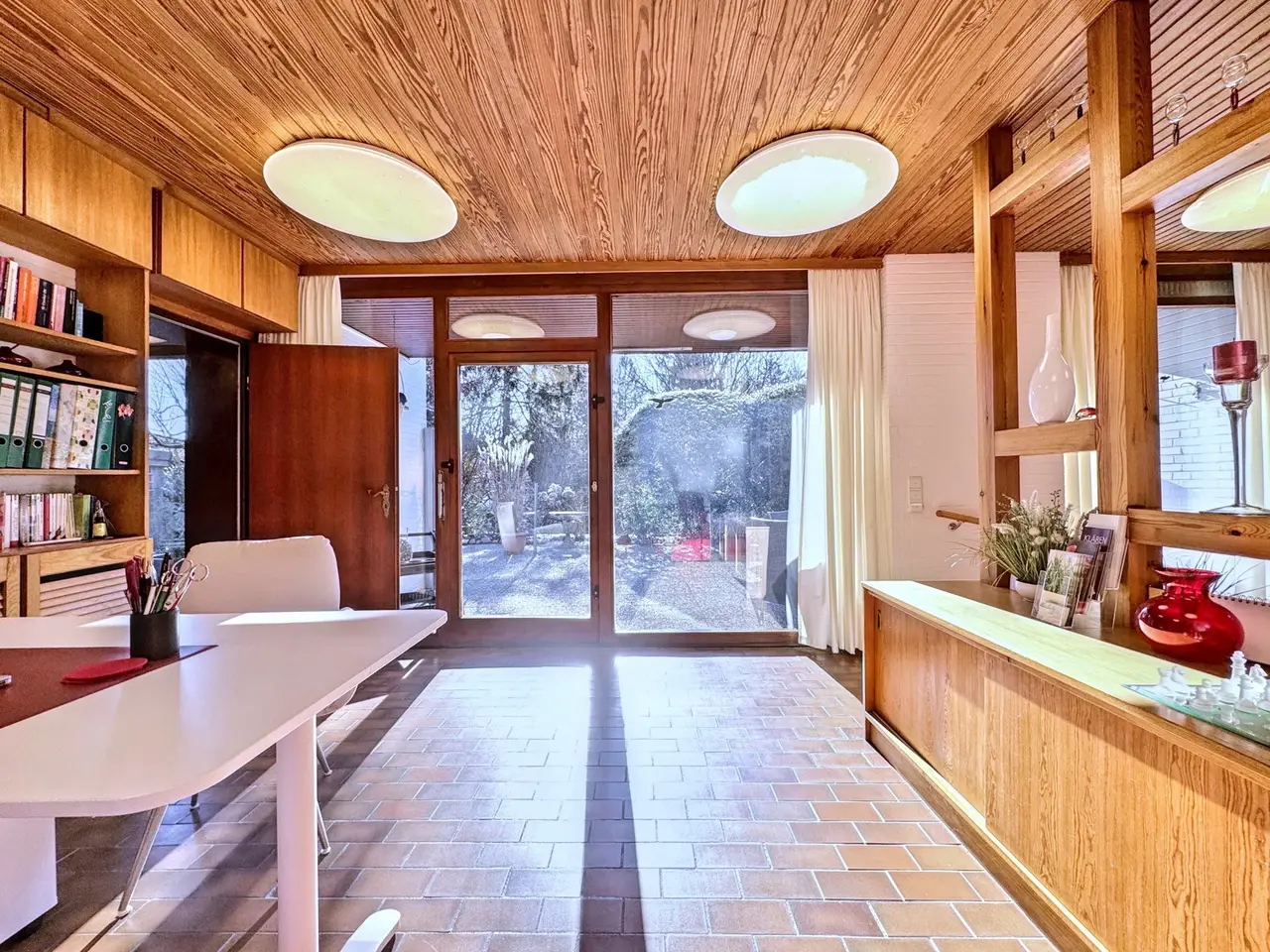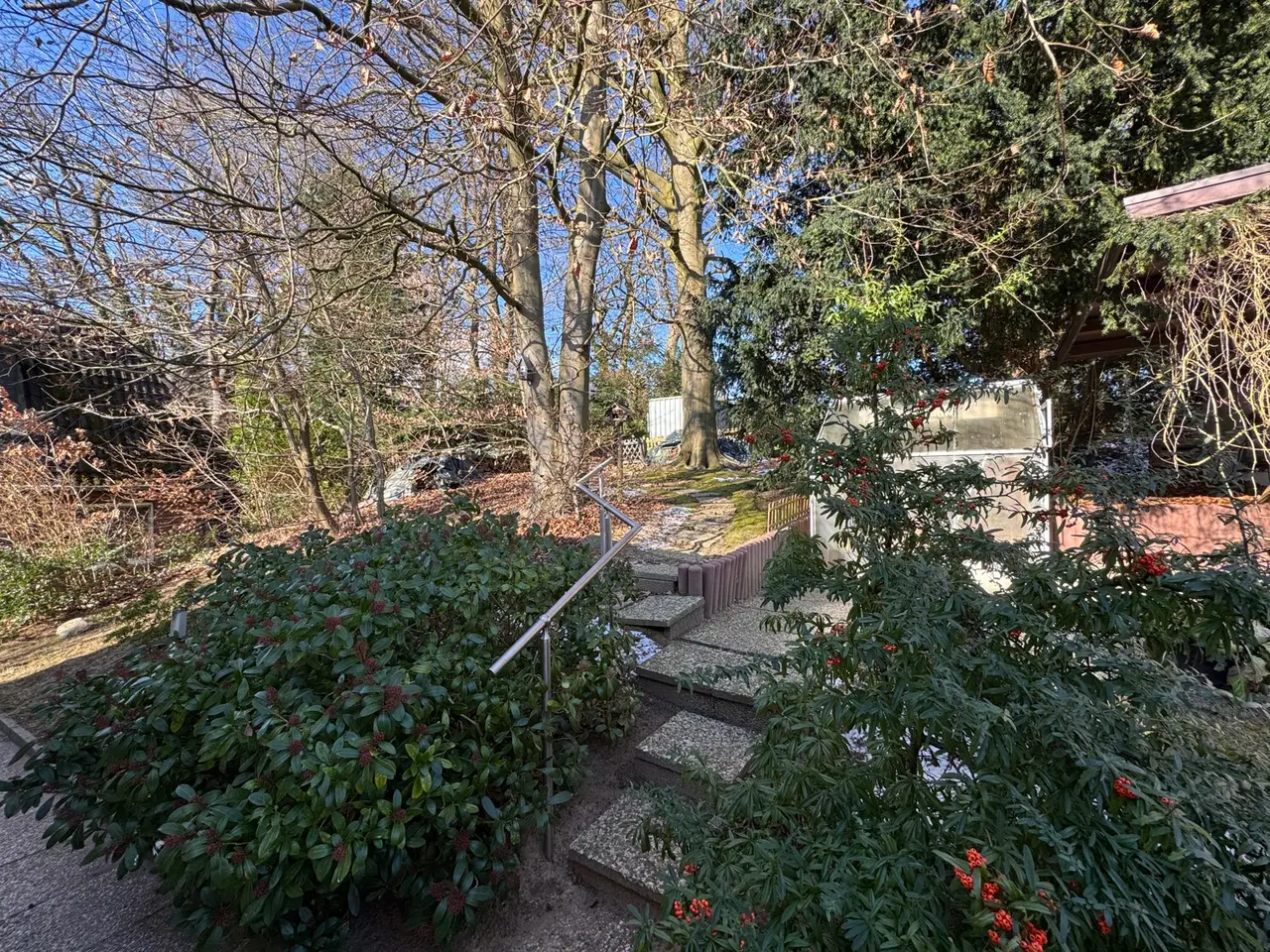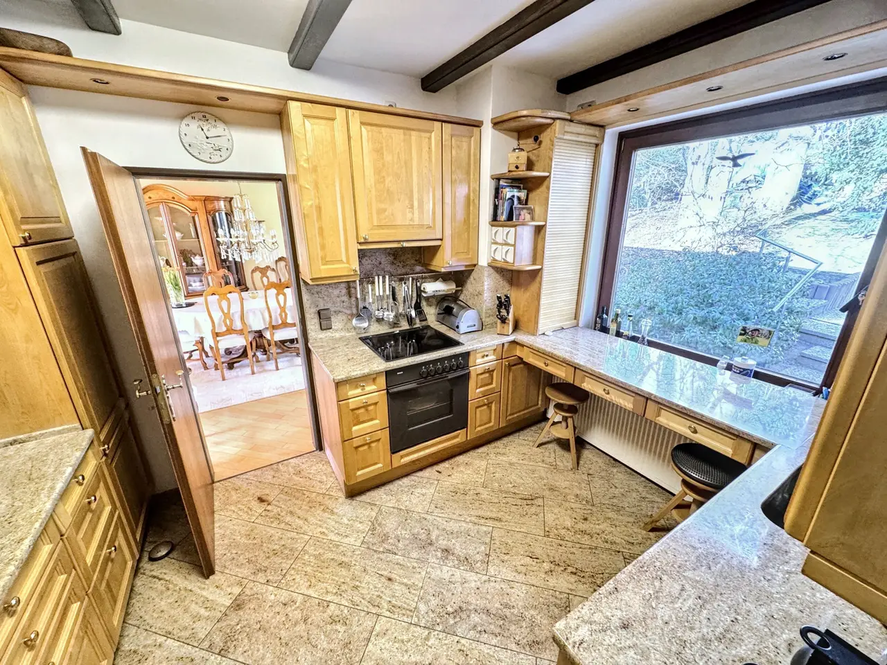This charming detached house from 1972 with a living space of approx. 190 m², spread over two levels, is situated on a spacious plot at the top of the slope in a quiet location. The house offers a wide range of possible uses. The entrance area is located in the basement of the house, from which a spacious room leads off to the left. This room, which is currently used as an office, offers direct access to a spacious, partially covered terrace - ideal for relaxing outdoors. There are also two further bedrooms, a separate WC and a shower on this floor. The remaining rooms are used as storage and cellar rooms and offer plenty of storage space. On the upper floor, a spacious living room of 54 m² awaits you with a fantastic view of the natural surroundings. Adjacent to the living room is the kitchen. There is also a bedroom with its own en suite bathroom and a spacious loggia where you can enjoy quiet hours. The property also offers a massive outbuilding at the rear, which can be used as storage space or is inviting for parties and social gatherings in summer. In the lower part of the plot there is the possibility of building another detached house or a semi-detached house. There is no limit to the number of residential units and the GRZ is 0.2. This property combines a lot of charm with a lot of potential. The existing house offers generous living space, while the building plot is ideally suited for a further residential project. Ideal for families, multi-generational living or as an investment property - a rare opportunity in a sought-after location.