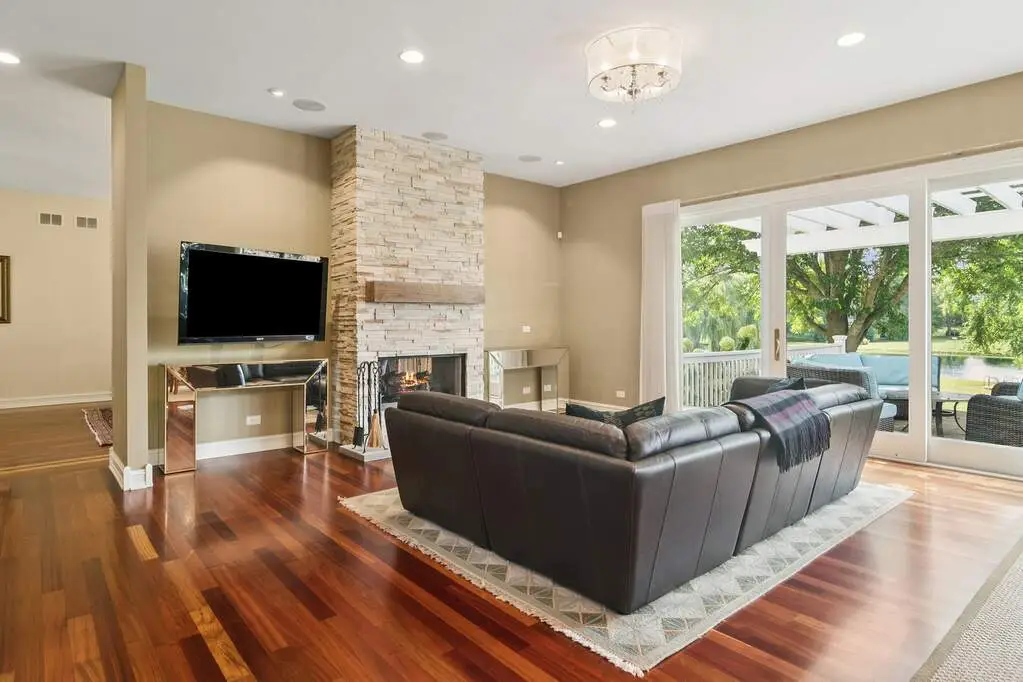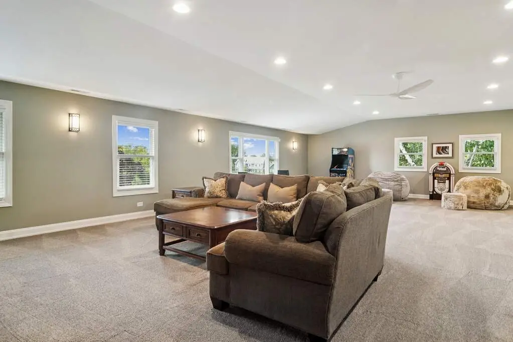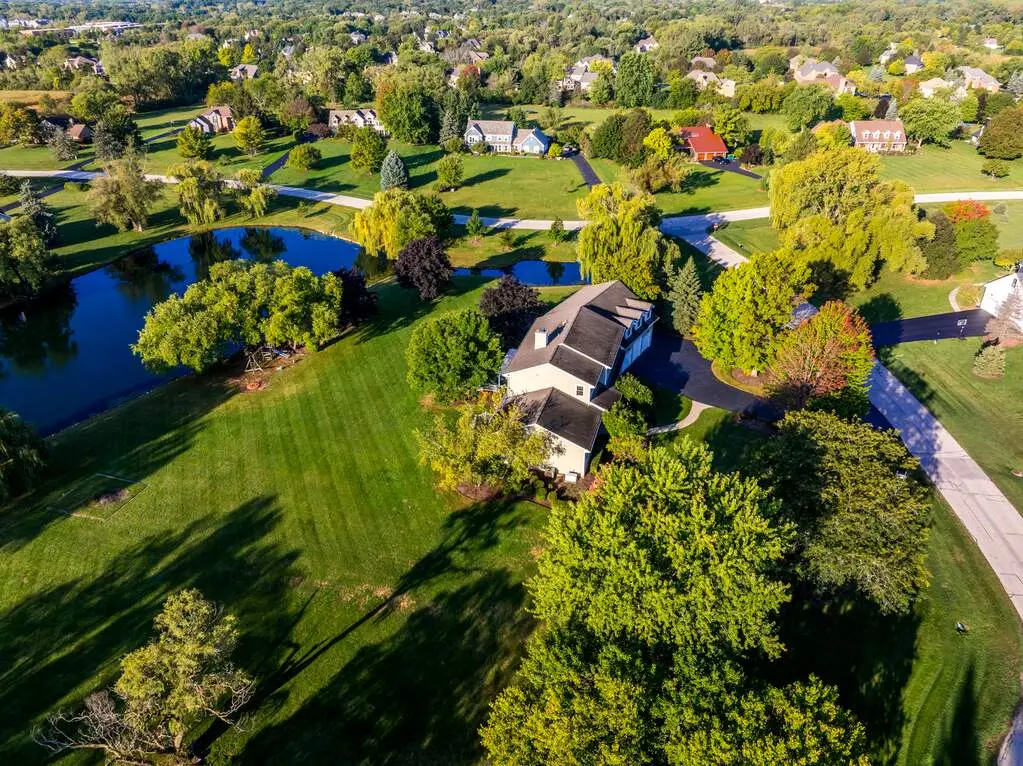 Set on nearly 3 acres in the prestigious Lochanora community, this Hawthorn Woods estate offers timeless elegance, modern convenience, and award-winning Lake Zurich schools. The main level showcases soaring 10-foot ceilings, sun-filled living spaces, oversized decks with sliders and a dramatic dining room that flows seamlessly into the living area and chef's kitchen. Designed for entertaining, the kitchen features a massive island, walk-in pantry, Sub-Zero and Thermador appliances, dual sinks, and a beverage refrigerator. A first-floor guest suite with sitting room provides a private retreat for multigenerational living & guests, while the second level has 4 additional bedrooms and a versatile oversized bonus room perfect for movie nights, a playroom, or a home studio. Thoughtfully remodeled and upgraded in 2013, the home also offers 1st and 2nd floor laundry rooms, a whole-house generator, and a boiler heated garage with polyaspartic floors, attached shed, and direct basement access. The English-style lower-level spans 2,600 square feet of bright, flexible space ready to be finished to your needs. 5 bedrooms, 4.5 baths, and tranquil private pond views, this property delivers unmatched privacy, function, and sophistication-just minutes from shopping, dining, schools and commuter routes.