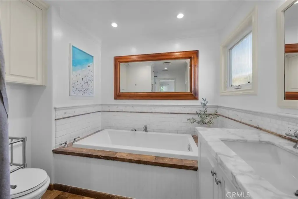 Welcome to a true Hollyglen gem! This 4-bedroom, 2.5-bath home offers 2,949 square feet of character, comfort, and modern functionality, all infused with timeless charm. From the moment you arrive, the wrap-around front porch sets the tone for the warmth and Southern-style appeal that makes this home stand out in the neighborhood. The main level features a sunlit primary suite with a walk-in closet and a spa-like en-suite bathroom complete with dual sinks, a soaking tub, and a separate shower. The open-concept floor plan connects the kitchen, dining, and living spaces seamlessly. The kitchen boasts a large island with bar seating and convenient side shelving, stainless steel appliances, and direct flow into the vaulted-ceiling living room anchored by a cozy wood-burning fireplace. Between the kitchen, dining, and living areas is a custom bar nook with a wine fridge, countertop display, and cabinet storage, perfect for entertaining. From this open gathering space, a Dutch door leads to the side of the wrap-around porch, adding both charm and functionality. French doors at the back open to a retreat-like yard with a spacious deck and above-ground spa, ideal for indoor-outdoor living. The first floor further includes a versatile laundry room that can double as a creative or flex space, with its own French doors opening to the yard, along with a convenient half bath for guests. Upstairs, three sizable bedrooms with vaulted ceilings share a full bathroom with dual sinks. A generous landing area provides the perfect spot for a home office, reading nook, or play area, offering flexibility for today’s lifestyle needs. Additional highlights include a detached two-car garage, location within the highly desirable Wiseburn School District, and close proximity to neighborhood parks, schools, and community amenities. This home is more than just a place to live, it’s a lifestyle. With its blend of character, space, and thoughtful design, it’s a rare opportunity in the heart of Hollyglen.