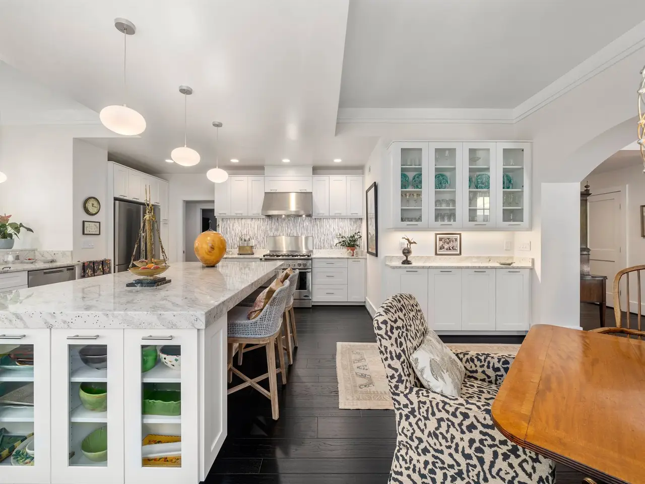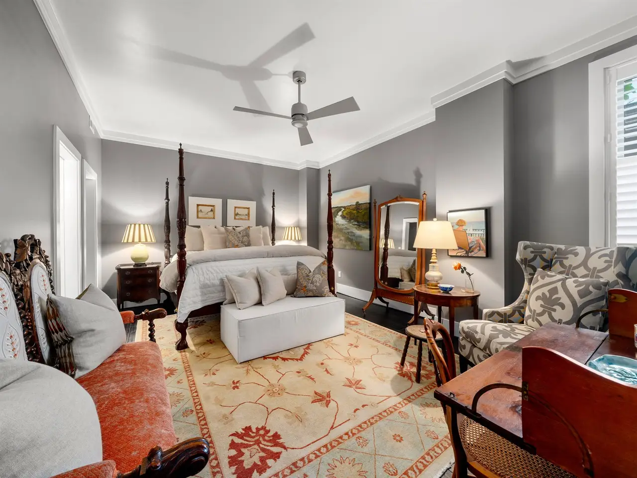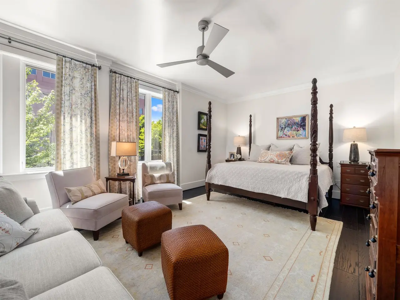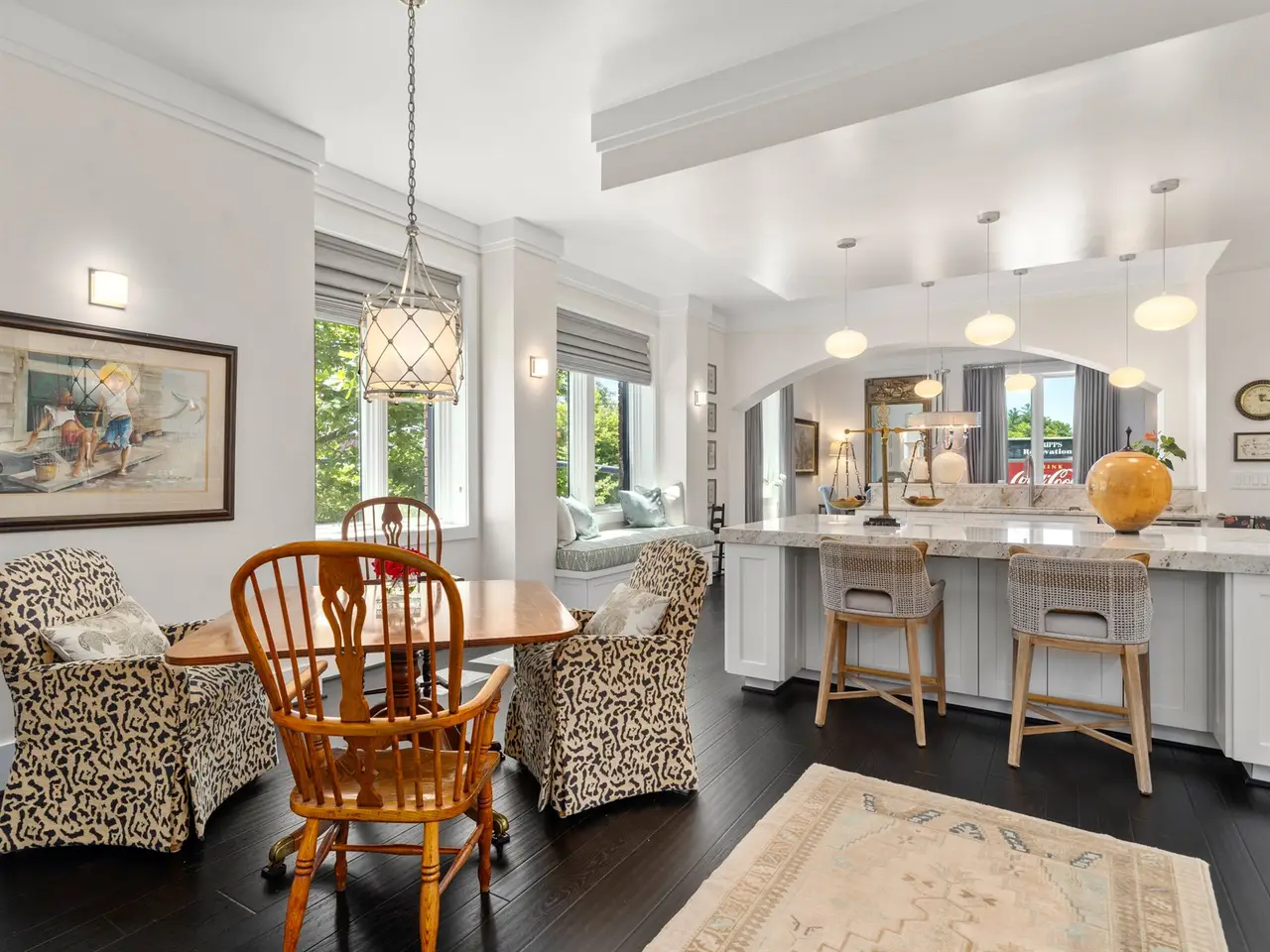 A unique opportunity to own a historic unit in vibrant Downtown Hendersonville once occupied by F. Scott Fitzgerald. Beautifully updated for today's living, the highlight of this home is the sprawling terrace overlooking downtown. Perfect for al fresco dining, entertaining guests, or simply relaxing and taking in the views. The terrace is a true extension of the elegant indoor living space which includes an open living room with fireplace and built-ins, a gracefully renovated kitchen and separate catering kitchen, media room, guest bedrooms and a fabulous primary suite with an impressive primary closet/dressing room. This charming, one-of-a-kind 4,880 SF residence includes two reserved parking spaces and a bonus 198 square foot laundry/utility/storage room steps from the unit. The prime location allows you to enjoy an abundance of restaurants, shops, and activities only available in the mountain town of Hendersonville.