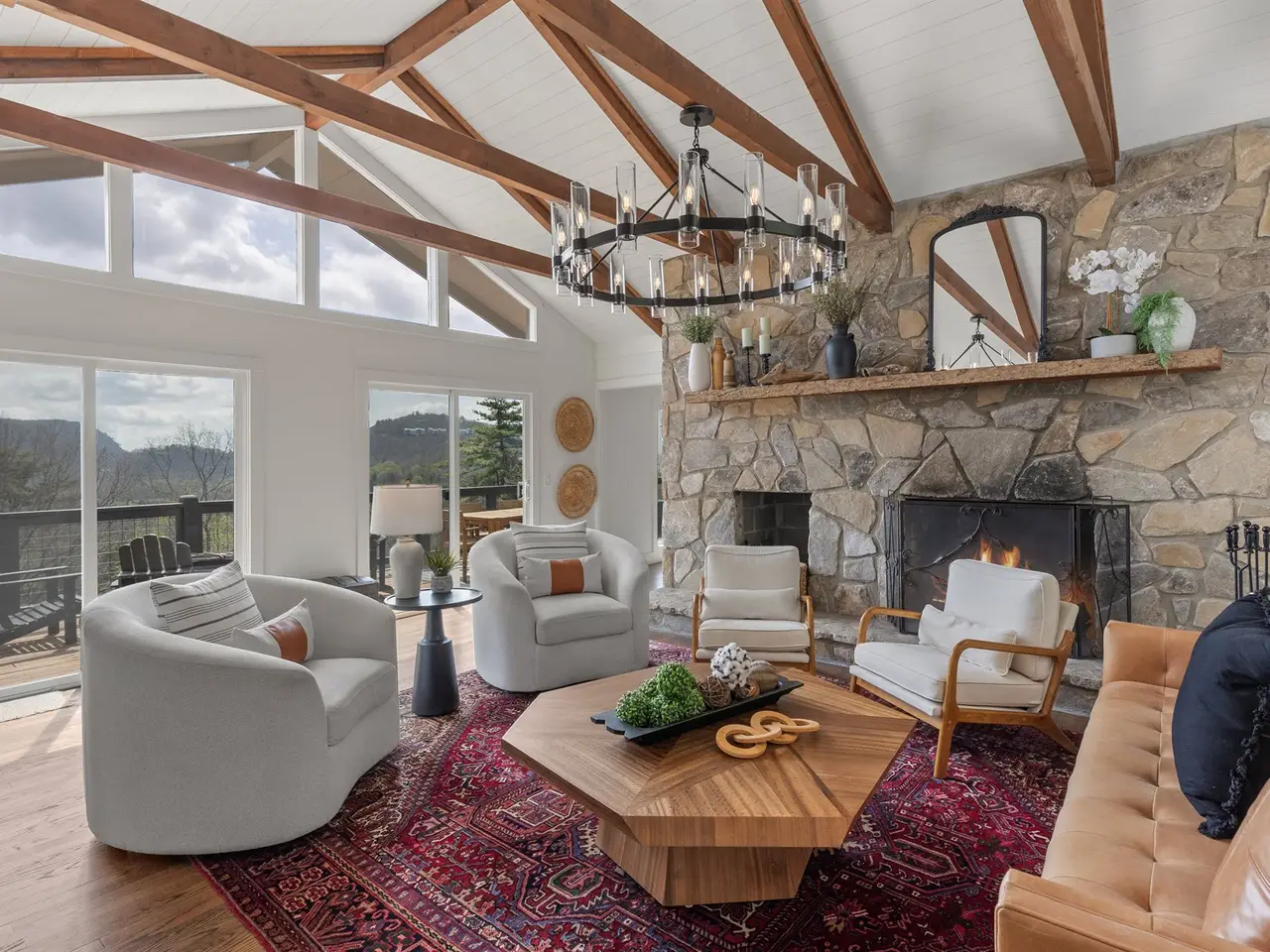 Welcome to your Highlands hideaway - a stunning 4-bedroom, 4.5-bathroom mountain residence just minutes from the heart of charming downtown Highlands! Perched at a high elevation, you'll enjoy cool summer breezes and panoramic sweeping mountain views that will make every day feel like a vacation. Blending modern sophistication with timeless mountain character, this renovated and designer-furnished home is assured to become your sanctuary. Step inside to discover two expansive great rooms, each featuring its own massive stone fireplace, ideal for cozy evenings or lively gatherings. The modern kitchen and updated baths blend style and comfort, offering elegant finishes and thoughtful functionality. A spacious bunk room wing provides versatile accommodations for guests or family, while generous outdoor living spaces - including multiple decks and a scenic viewing porch?invite you to savor sunrise coffee or sunset cocktails with views that soothe the soul. Thoughtfully and beautifully furnished and move-in ready, this home is the perfect summer escape - or year-round haven. Don't miss the opportunity to own this beautifully appointed mountain gem in one of Highlands' most coveted locations!