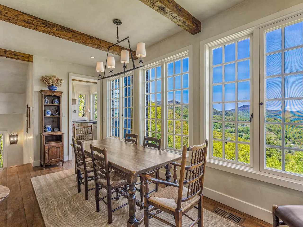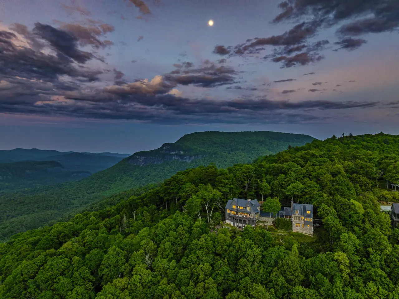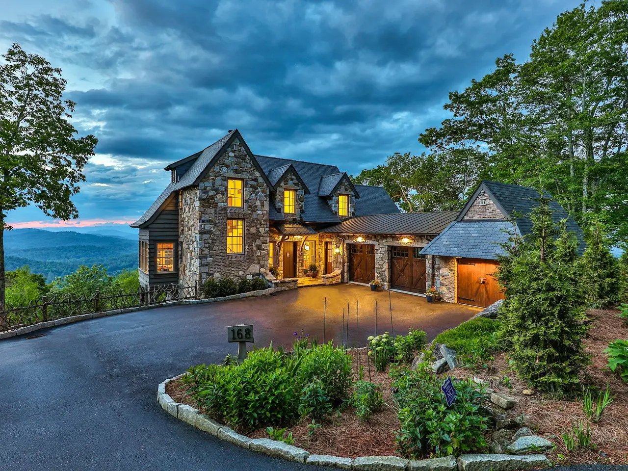 Welcome to an extraordinary European-style estate in the heart of Highlands - where timeless charm meets refined mountain living. This remarkable and majestic property includes a beautifully designed main residence and an enchanting stone guest cottage, both showcasing sweeping panoramic views of the Blue Ridge Mountains, Old Edwards Golf Course, and a serene lake. Crafted by award-winning Mountainworks Custom Home Design, the main house features an elegant slate roof and was honored with the Designer's Choice Award by the American Institute of Building Design, as well as Best of Show. The interior is a masterclass in sophistication, offering a sun-drenched kitchen equipped with top-of-the-line Miele appliances, a built-in coffee station, and an oversized island perfect for gathering. The adjoining sunroom invites peaceful mornings and golden-hour sunsets, while the spacious deck serves as your front-row seat to the plateau's natural, incredible views and cool breezes at an elevation above 4200 ft. The main level includes a tranquil bedroom with an ensuite bath and views of a curated cutting garden. Upstairs, a light-filled office/library provides inspiration with every glance out the window. The luxurious primary suite boasts postcard-perfect views from every angle and a luxurious bath with a serene soaking tub overlooking the clouds as they float by over the mountains. Just steps away, the guest cottage is a storybook escape with two private bedrooms - each with ensuite baths. Enter through a charming Dutch door into a warm and inviting interior that evokes the coziness of an English Cotswold cottage. A elegant yet stately stone-and-stucco fireplace anchors the living area, while a covered porch with a second fireplace offers the perfect perch for enjoying cool mountain breezes and stargazing in the evenings. The sale includes buildable main house basement plans for future expansion and the home and guest cottage are being offered fully furnished - including elegant bespoke custom furniture, designer linens, draperies, select artwork, and curated decor that enhances its distinctive character, with a small list of exceptions. A one-of-a-kind retreat, impeccably maintained and thoughtfully designed - this is luxury mountain living at its finest. The mesmerizing views change with the four seasons whether watching the clouds below changing shapes to glorious reds and golds of fall to snowflakes that glisten past - it's magical in every way.